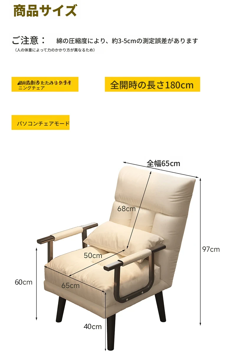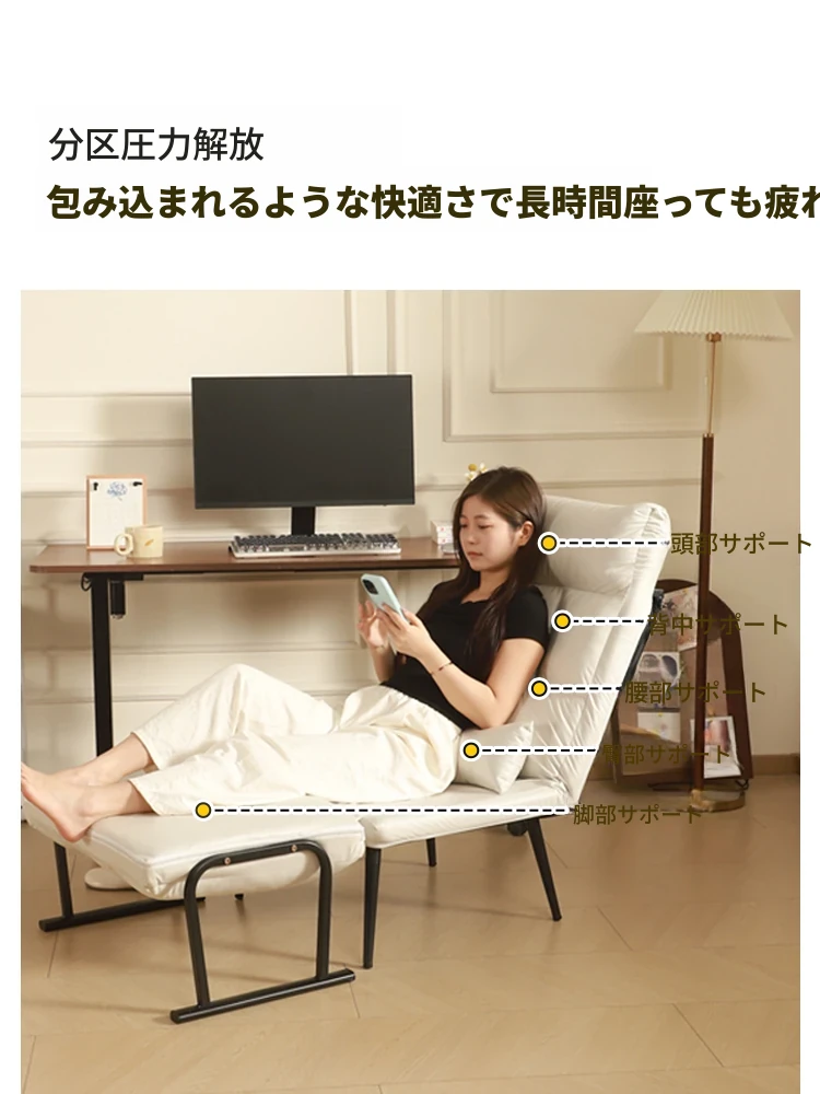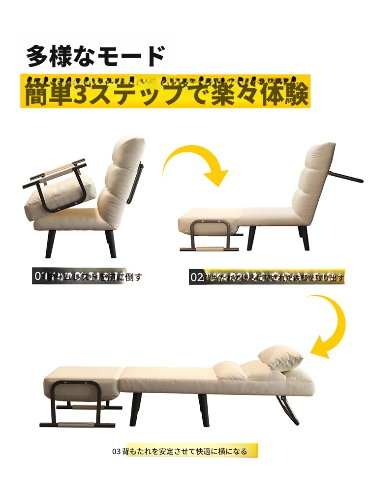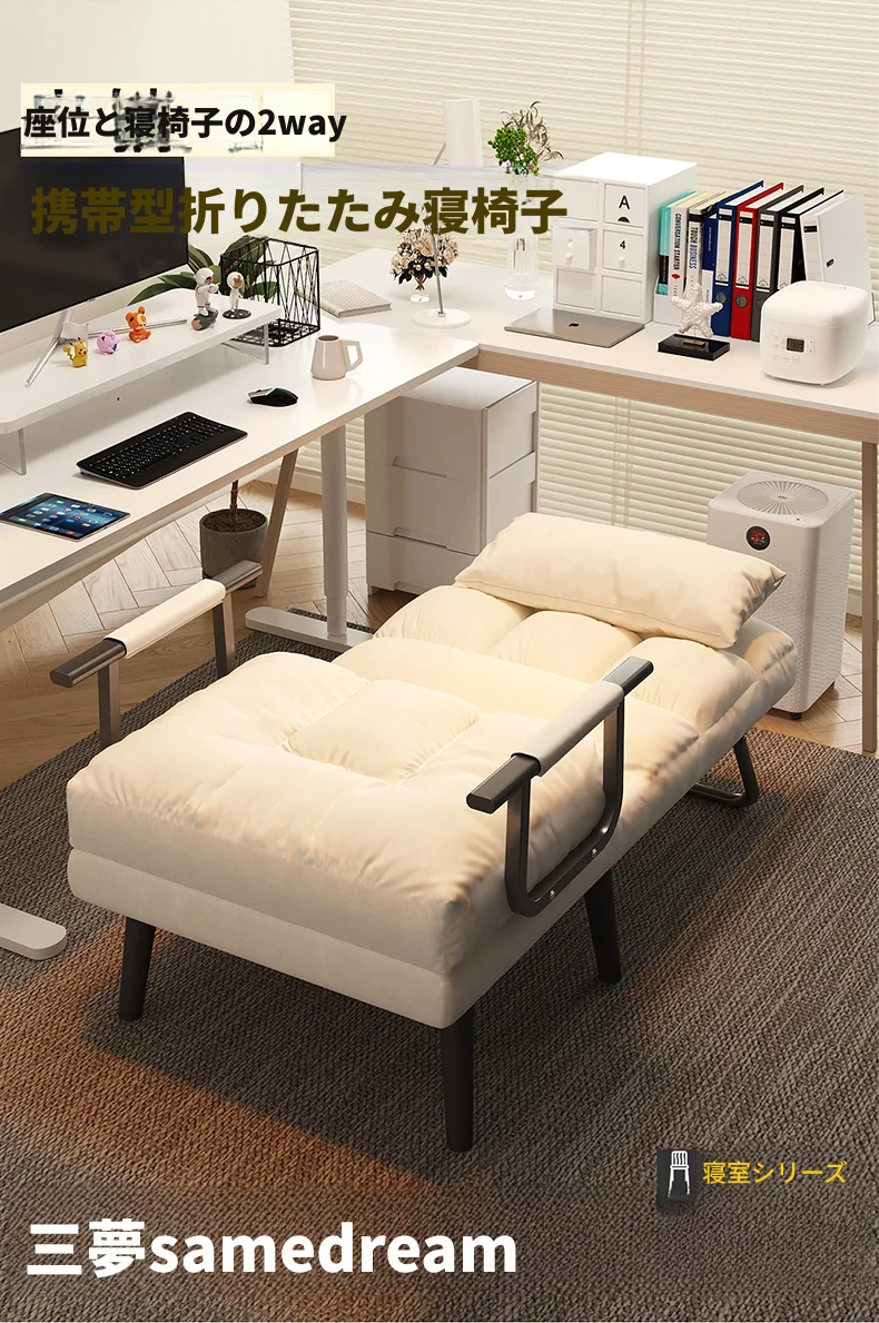 三夢折りたたみリクライニングチェア - オフィスでの昼寝や自宅でのリラックスタイムに最適!座り心地抜群で、寝転がりもできる多機能ソファチェア。快適な休息を提供します。