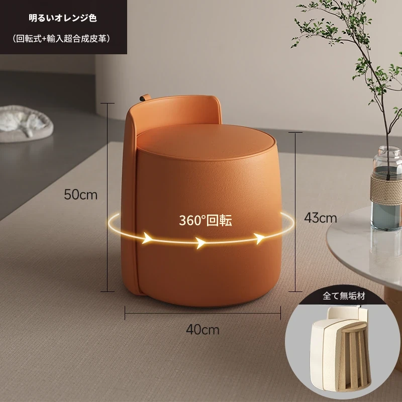 明るいオレンジ【輸入超合成皮革-ゴムの木フレーム】回転タイプ