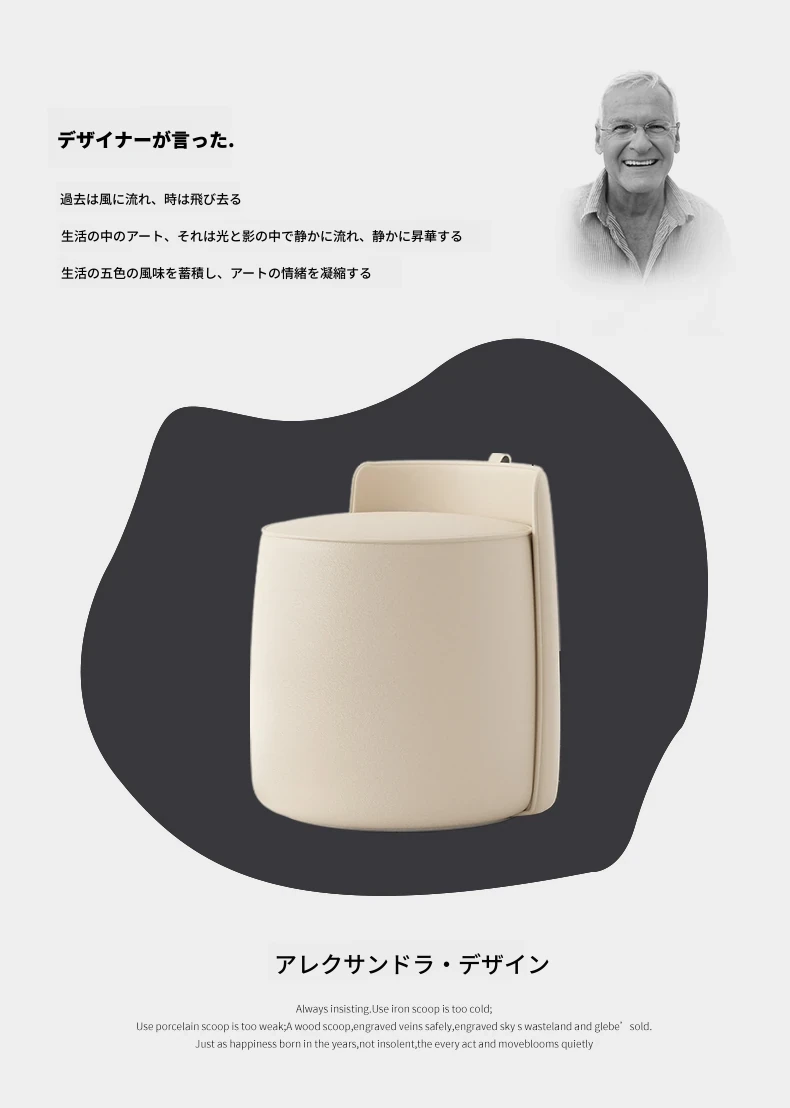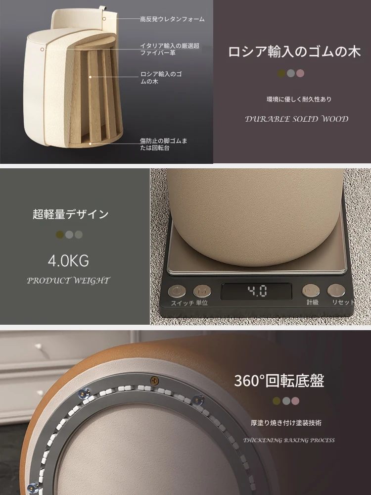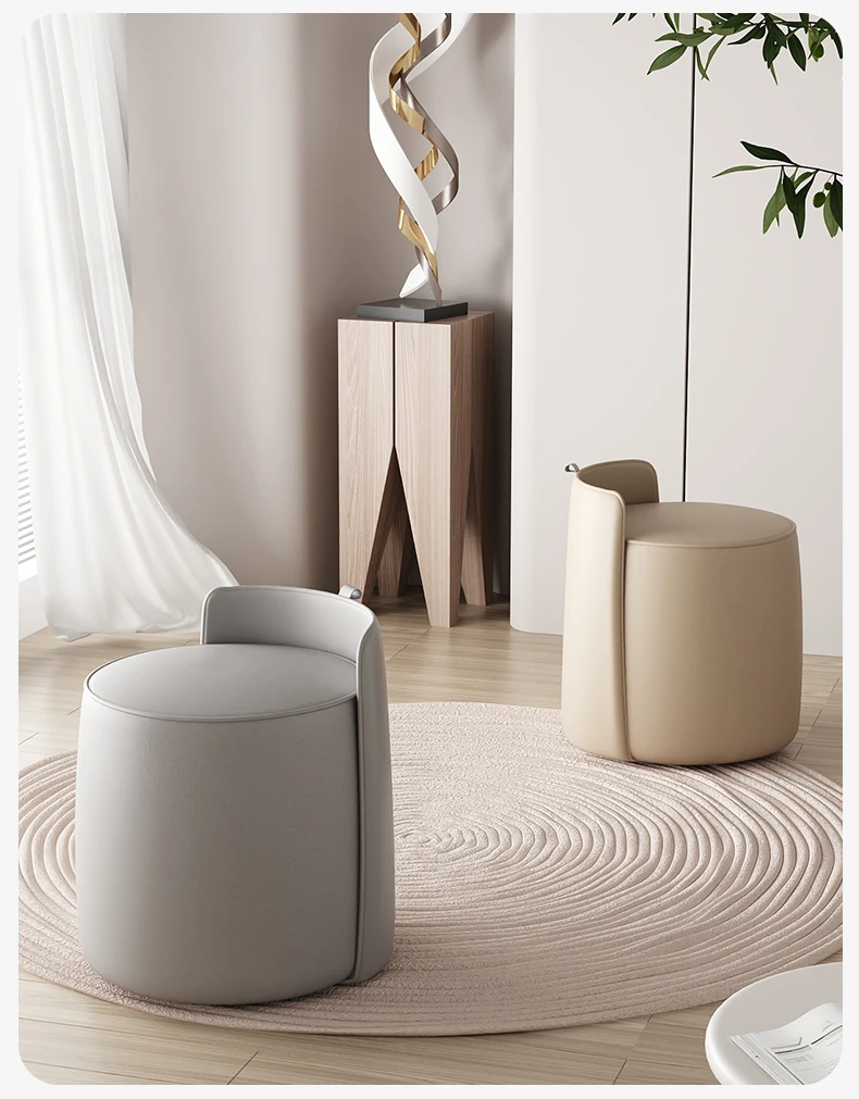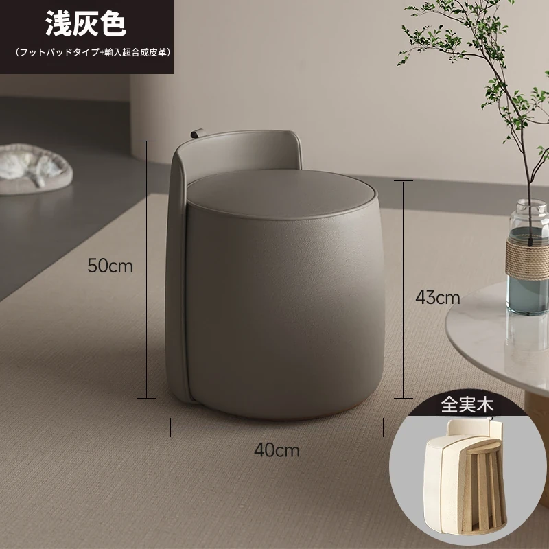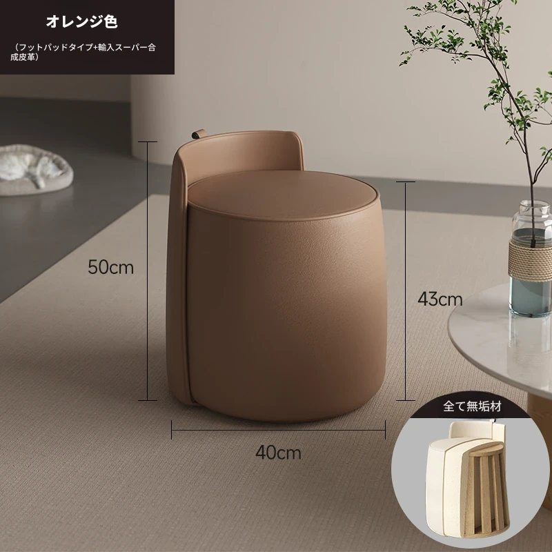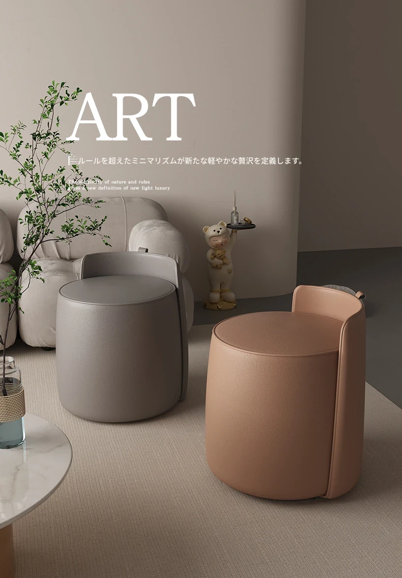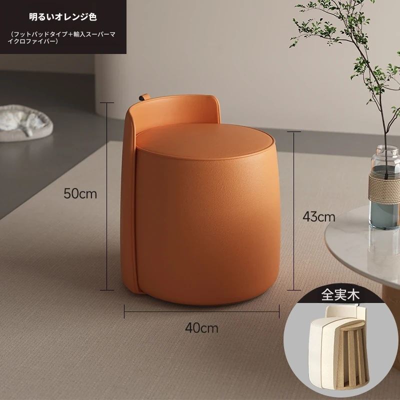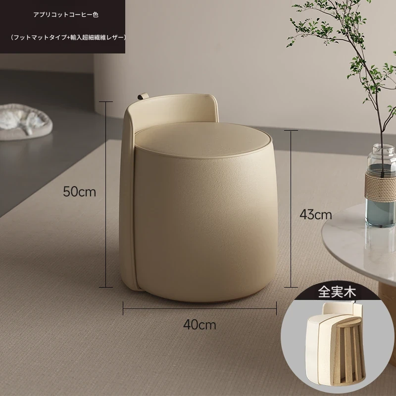 三夢デザインの木製スツール - リビングや化粧台にぴったり!おしゃれで軽やかな低めの椅子、創造的な円形デザインで靴を履く際にも便利。あなたの空間に洗練された雰囲気をプラスします!