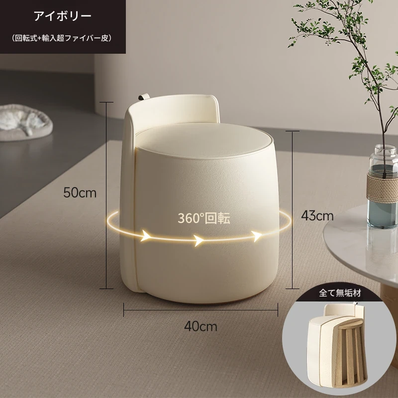 アイボリー【輸入超合成皮革-ゴムの木フレーム】回転タイプ