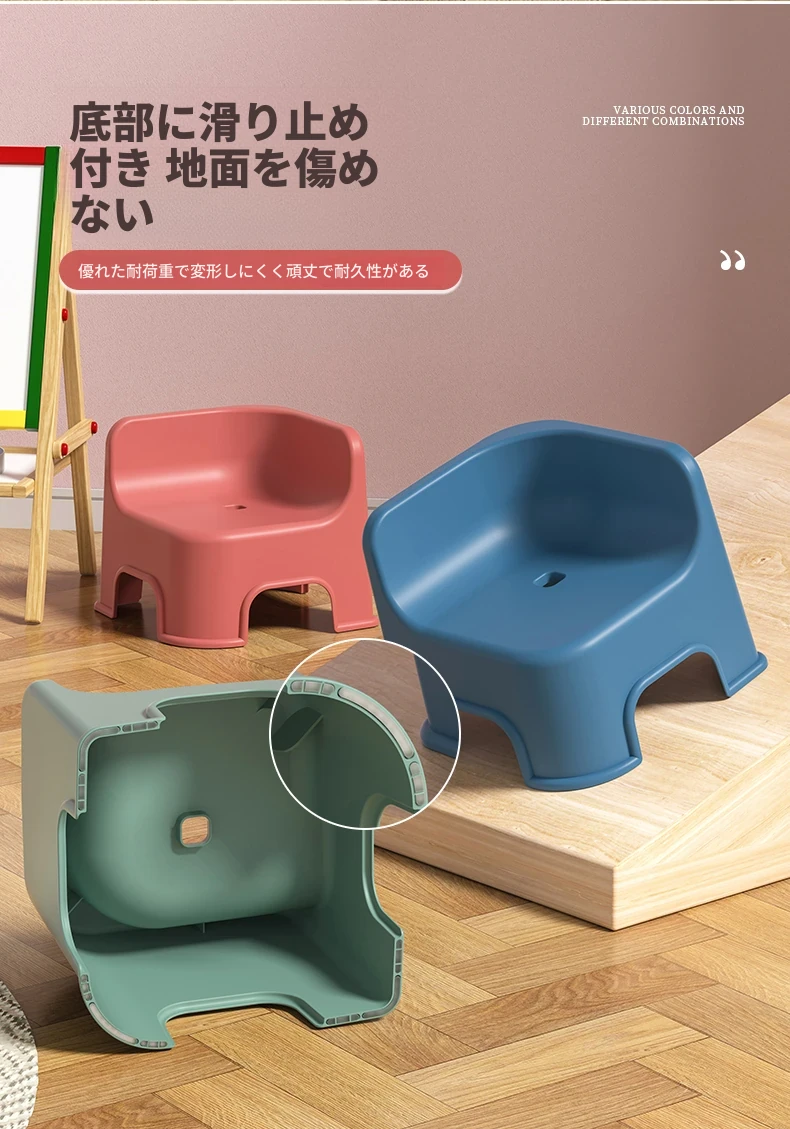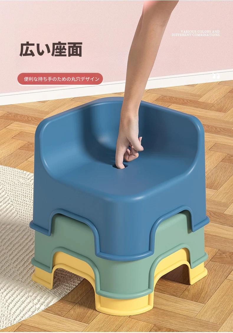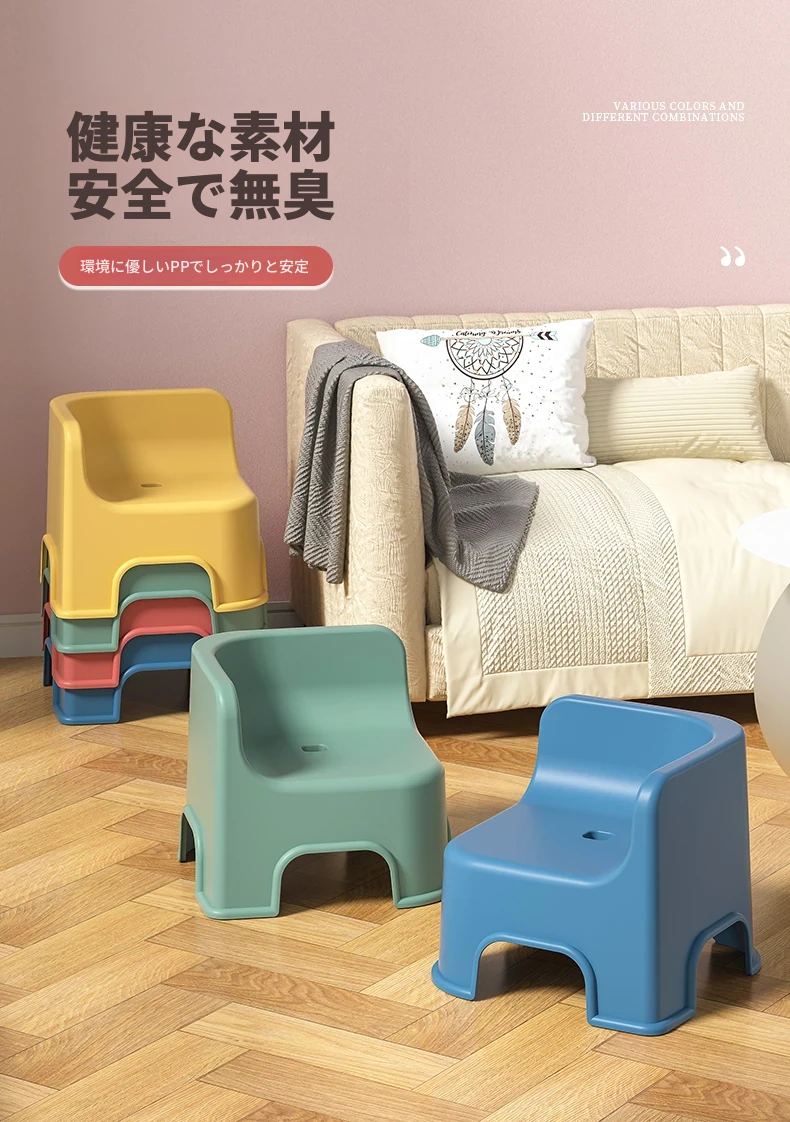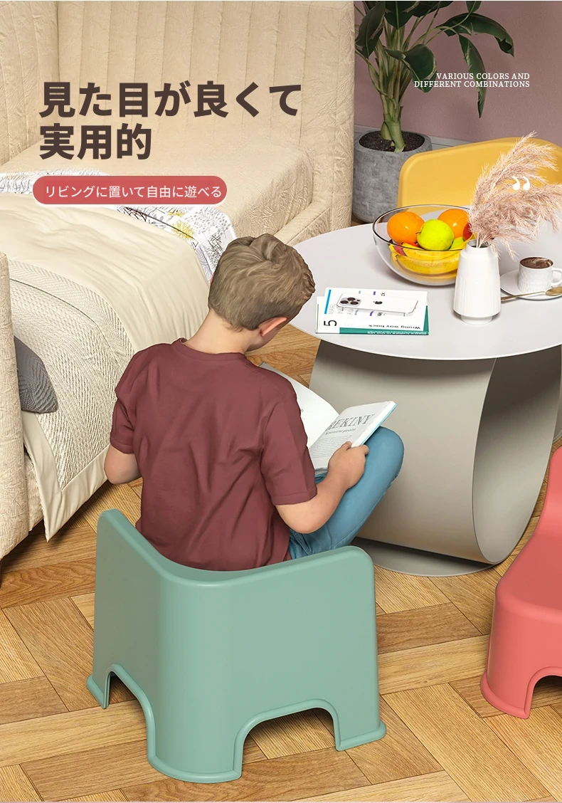 三夢キッズチェア|赤ちゃん用プラスチック製スツール|家庭用・重ねられる・リビングやソファに最適な靴替えスツール|快適で便利なデザイン!
