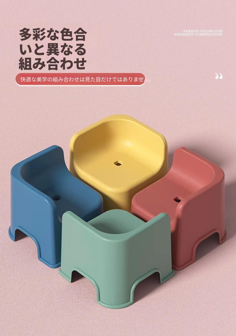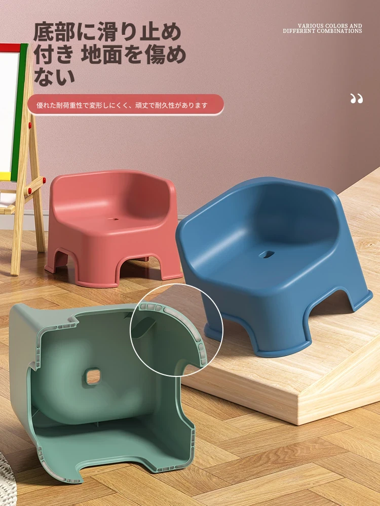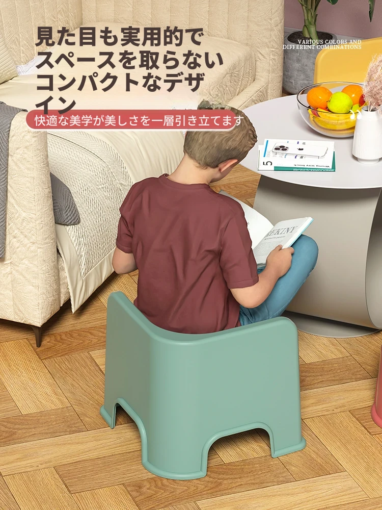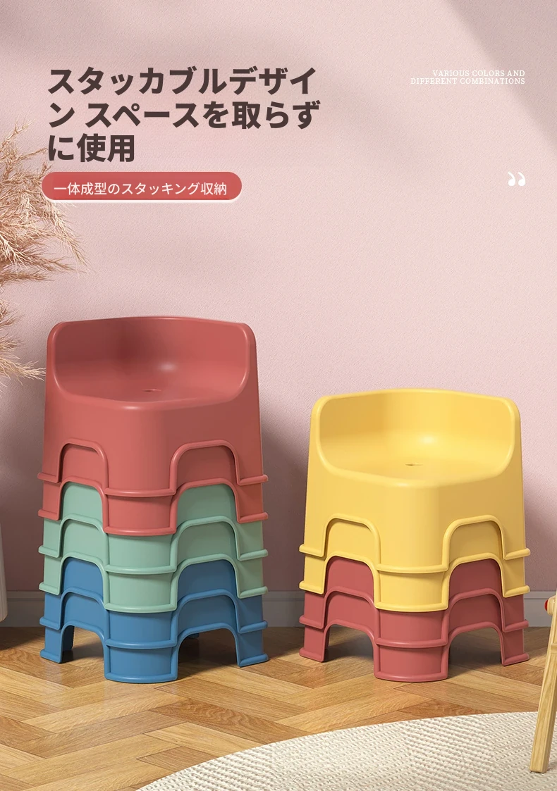 三夢キッズチェア|赤ちゃん用プラスチック製スツール|家庭用・重ねられる・リビングやソファに最適な靴替えスツール|快適で便利なデザイン!