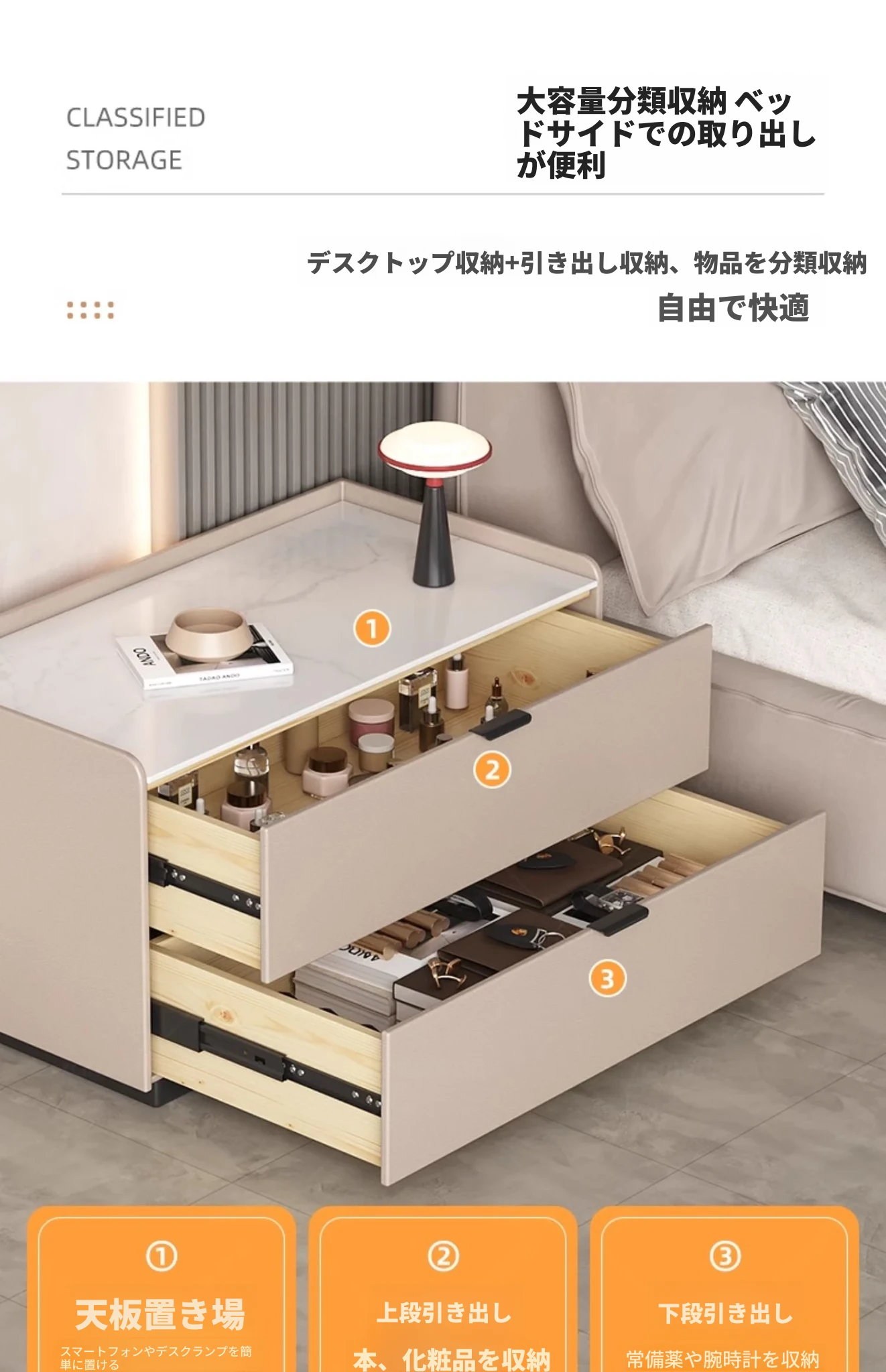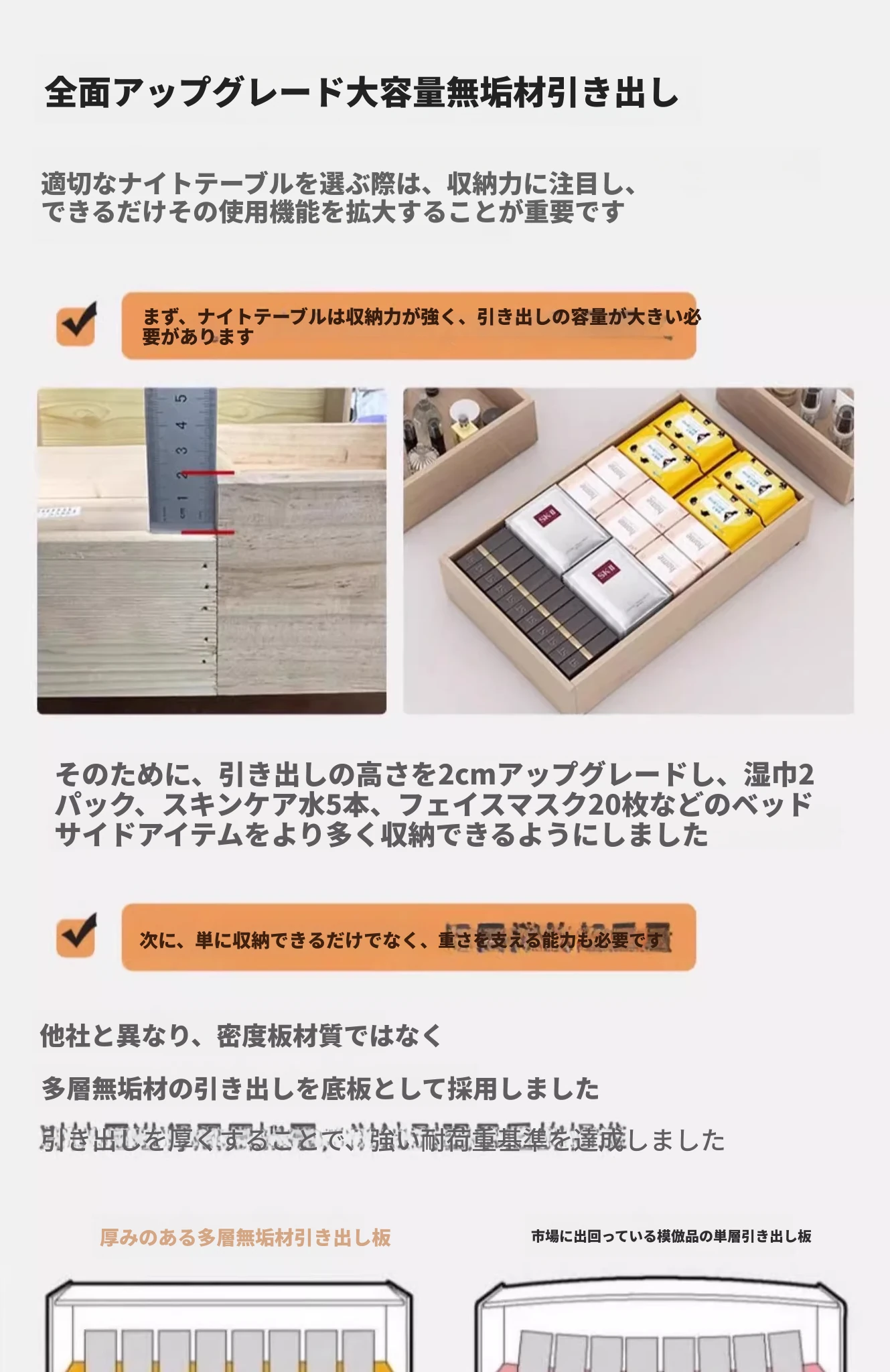 2024年新作!大サイズの三夢リアルウッドベッドサイドテーブル - シンプルでモダンなデザイン、贅沢感あふれる収納キャビネット。おしゃれな寝室にぴったりのアイテムです!
