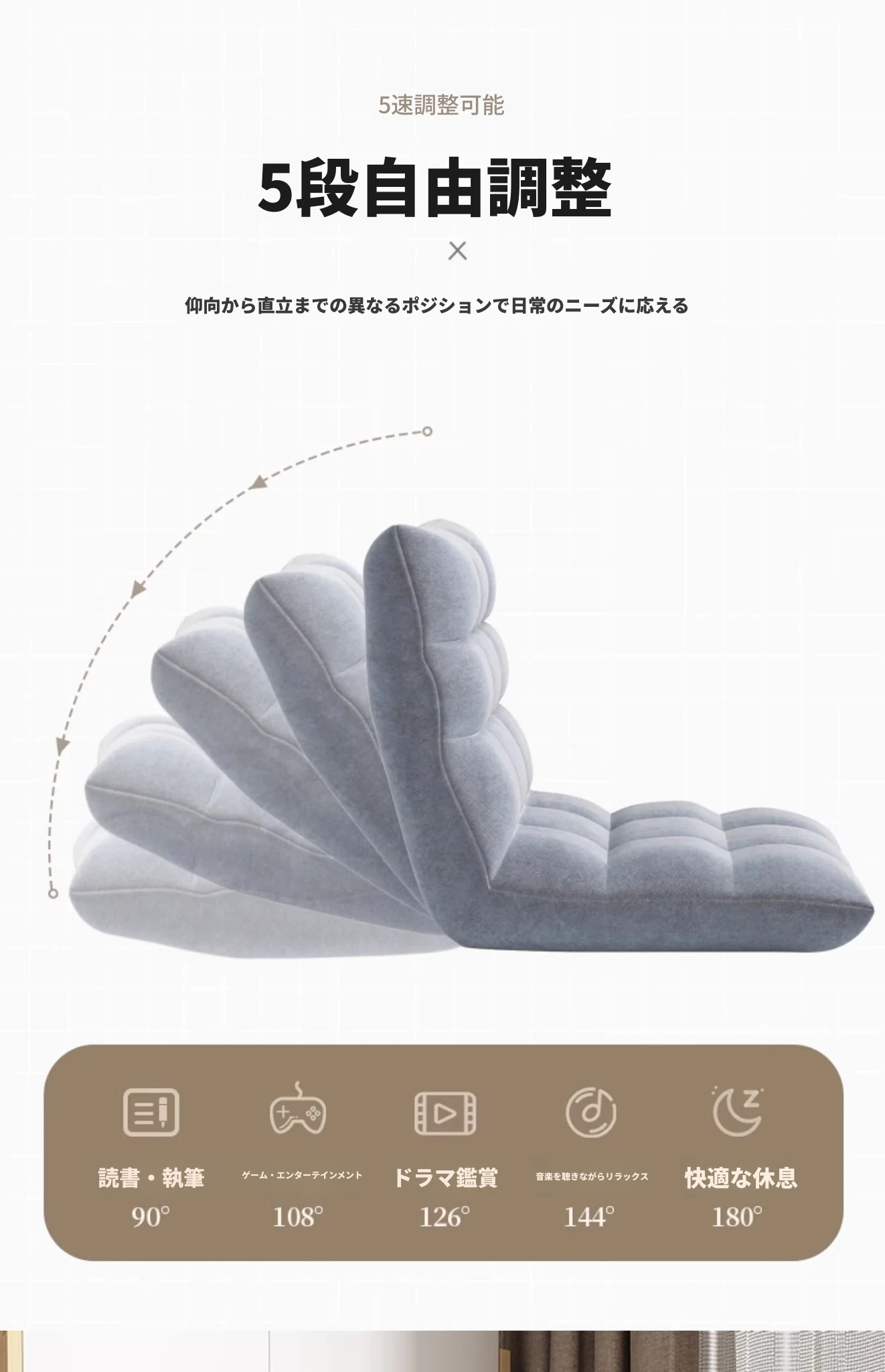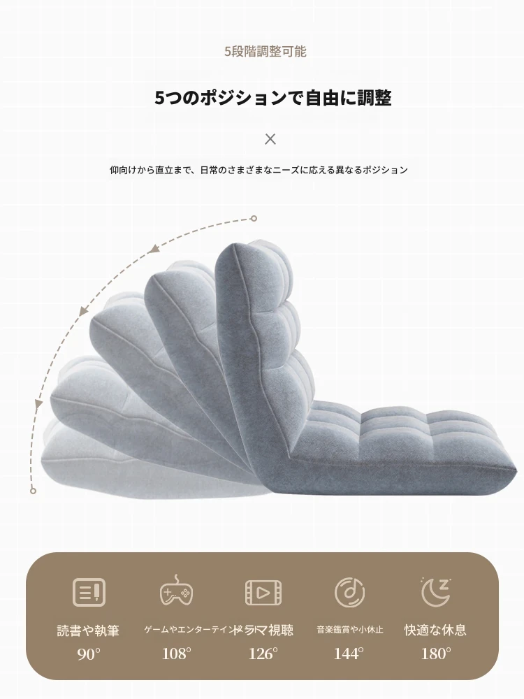 三夢リラックスソファ - 秋冬の快適さを追求した、寝転んでも眠れる!ベッドルーム、バルコニー、窓際でも大活躍のスタイリッシュなデザイン。畳にもぴったりのリラックスチェアです。