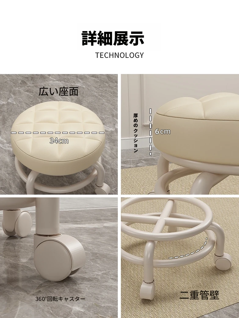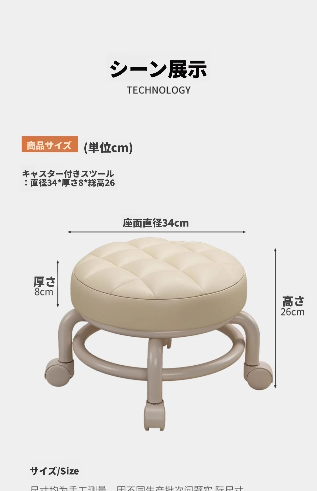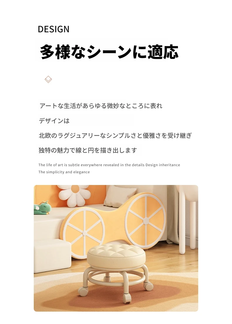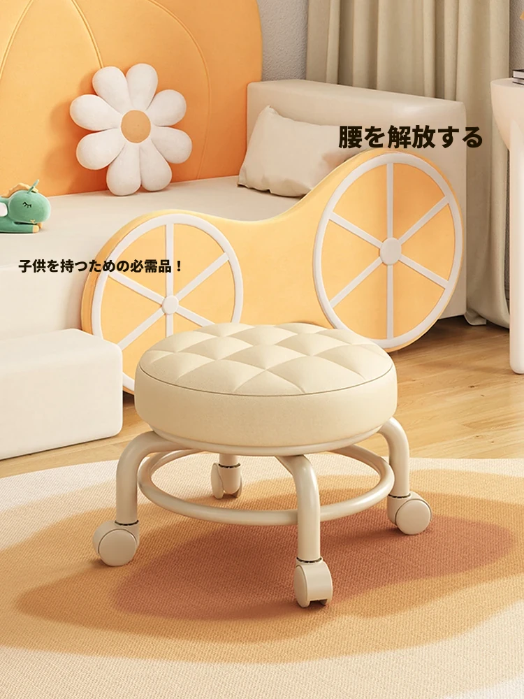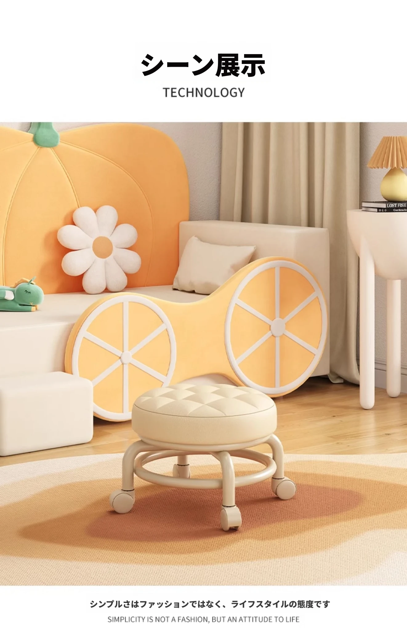 三夢ローラースツール - 子供のための便利な移動式スツール!無段階高さ調整可能で、楽しい滑り心地を実現。お子様と一緒に遊びながら、さまざまな用途に役立つマルチファンクションデザインの美しい円形スツールです。