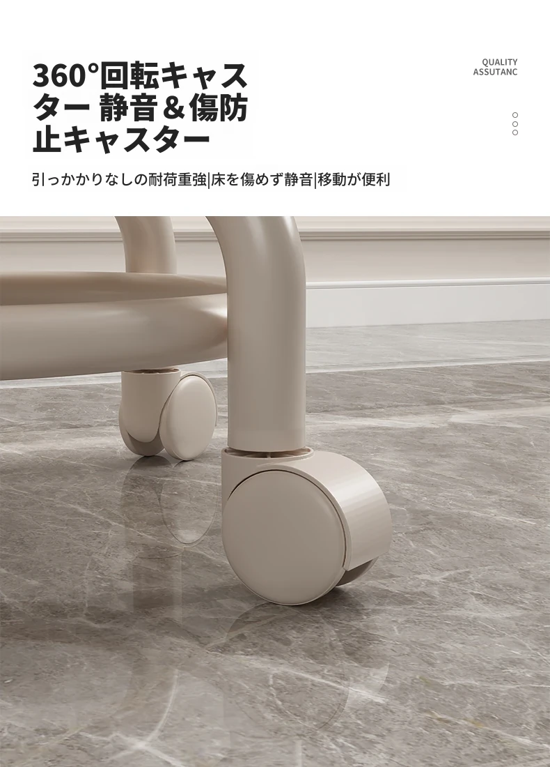 【ダブルレイヤーアイボリーラック-厚手クッション】アイボリー9格-全方向スリップ防止キャスター