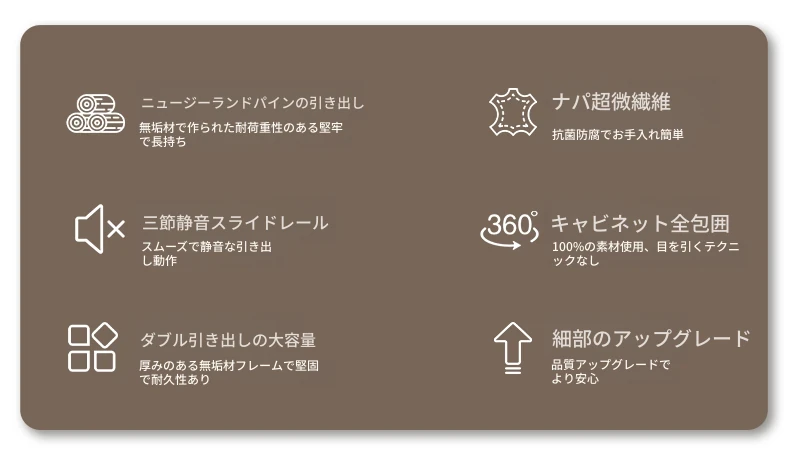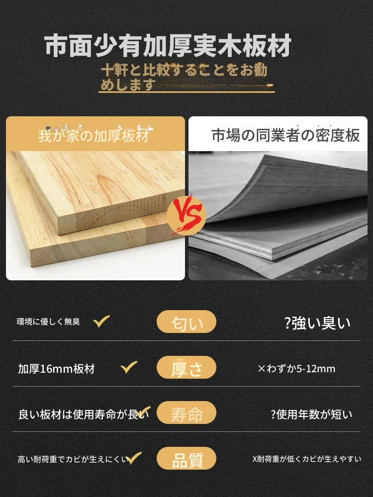 カーキ - 組み立て不要【国産高密度フレーム + 厚手の無垢材引き出し】