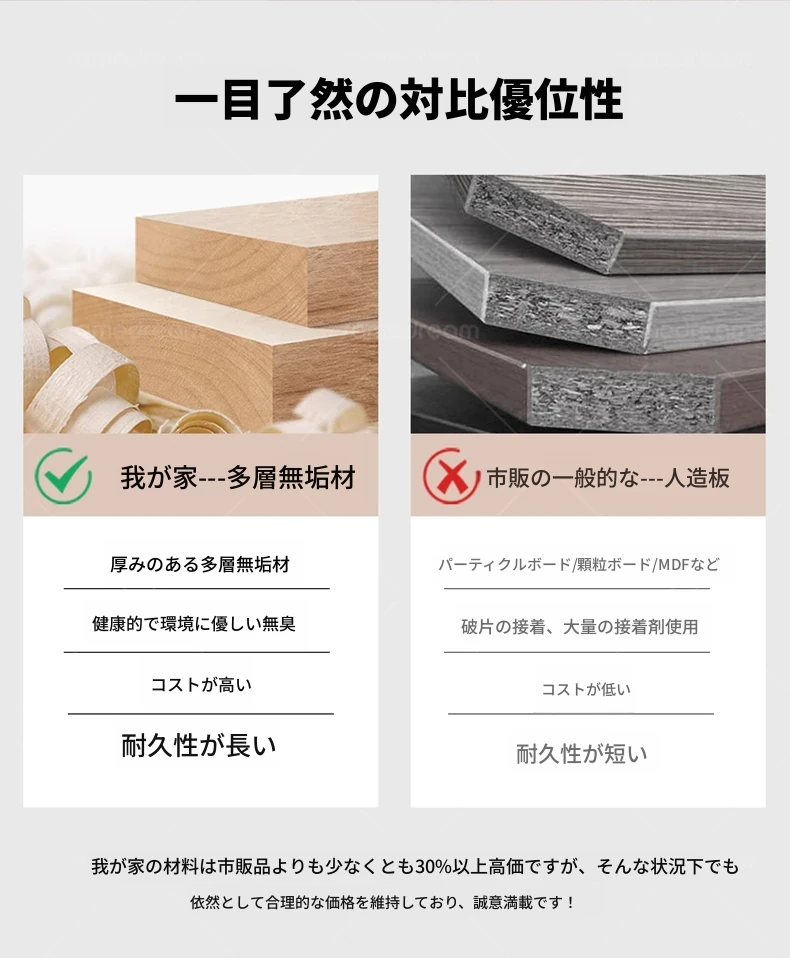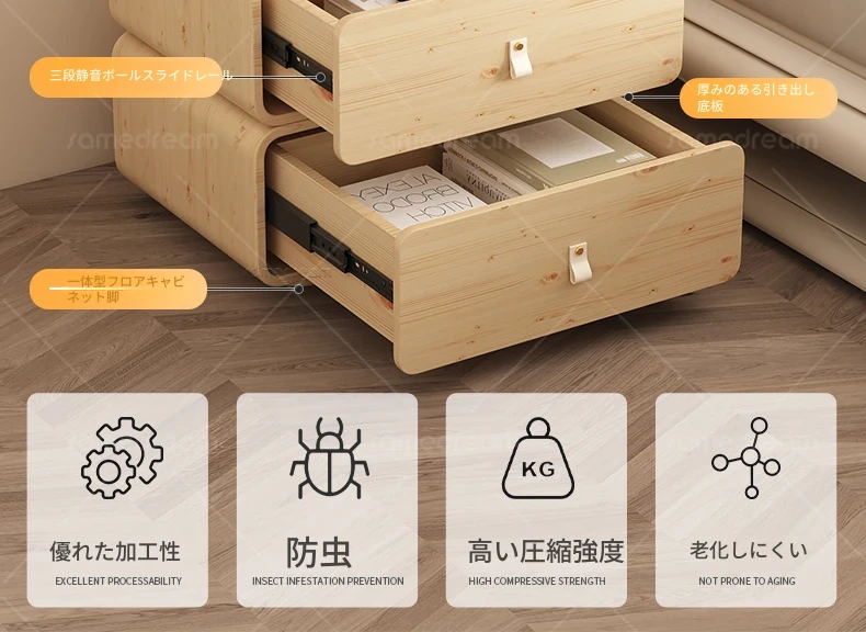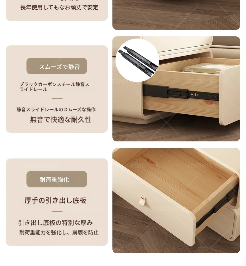 アイボリー - 組み立て不要【国産高密度フレーム + 厚手の無垢材引き出し】
