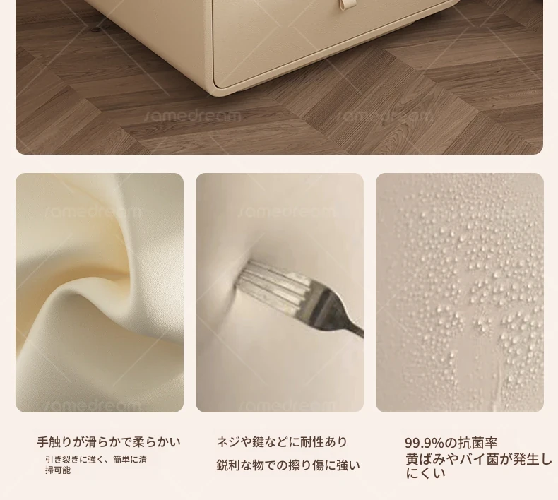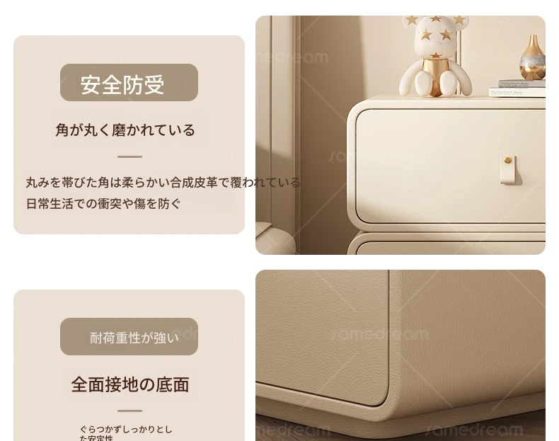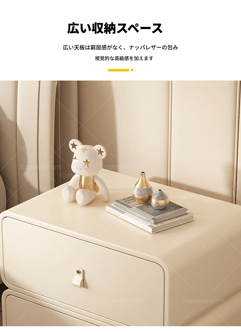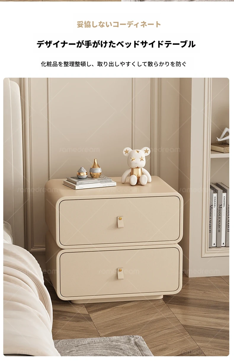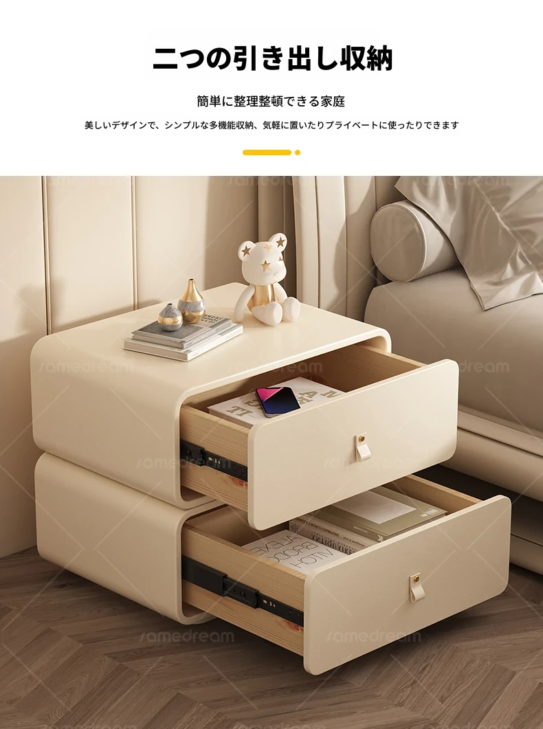 2024年新作!三梦実木ベッドサイドキャビネット - ミニマリストデザインのクリーミーな高級感、コンパクトでスタイリッシュなサイドテーブル。あなたの寝室に洗練された雰囲気をプラス!