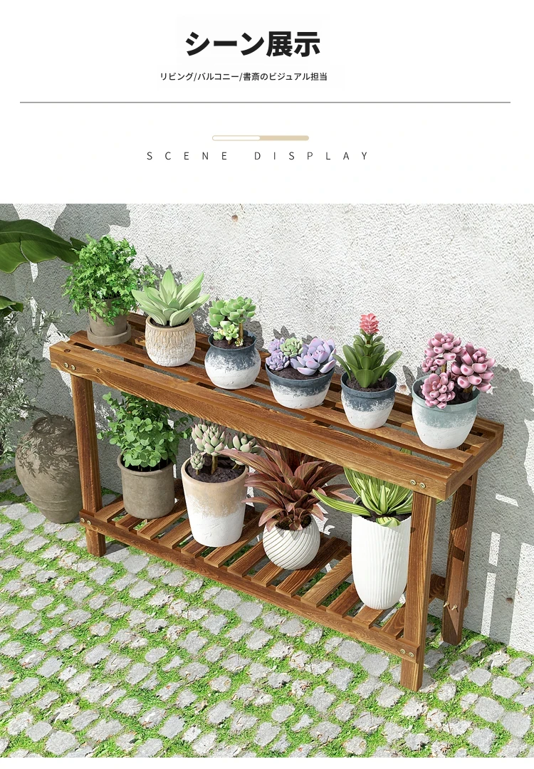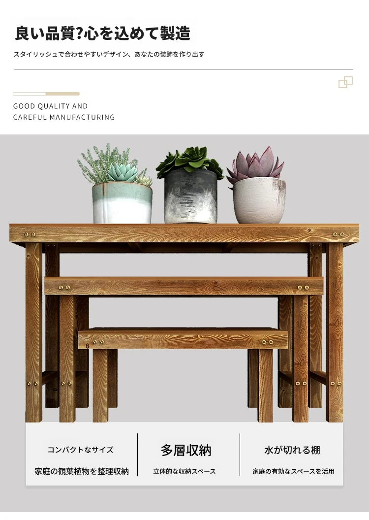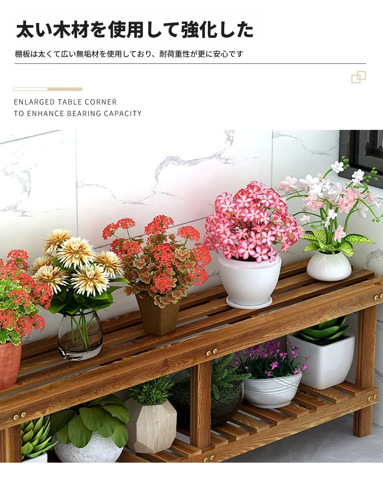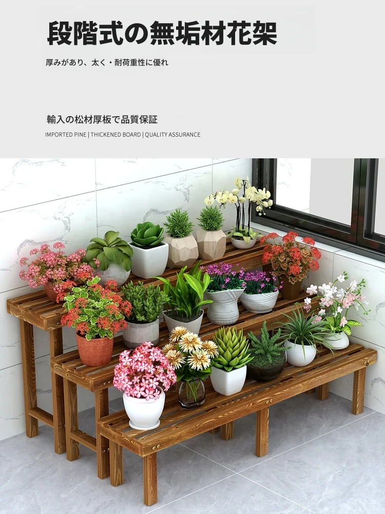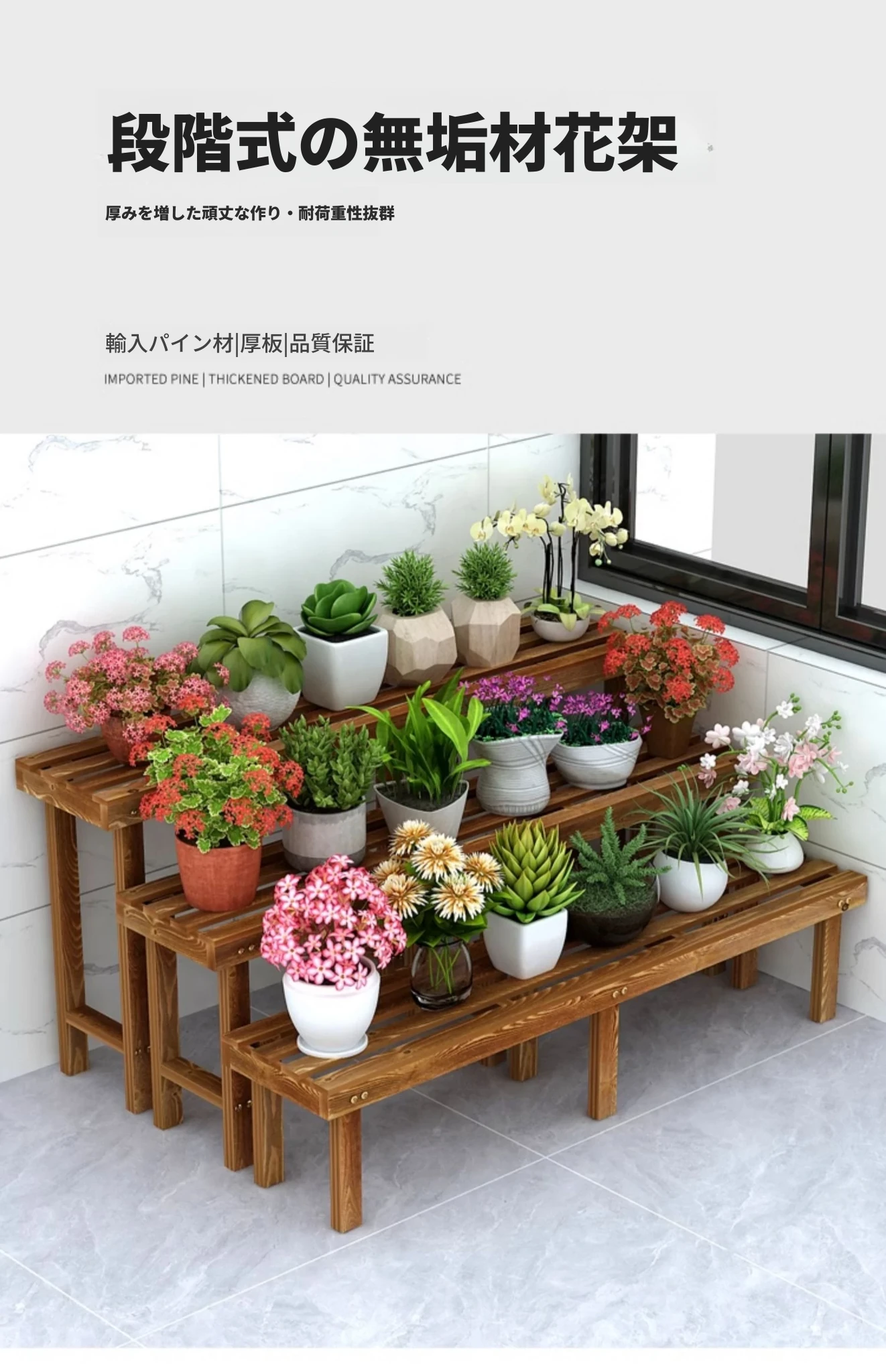 三夢の花架け - バルコニーにぴったりの階段型天然木製フラワースタンド!リビングに彩りを添える落地式プランツラックで、素敵なお花や観葉植物をおしゃれにディスプレイ!