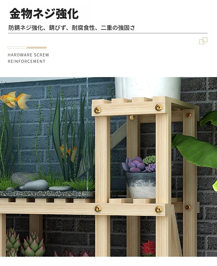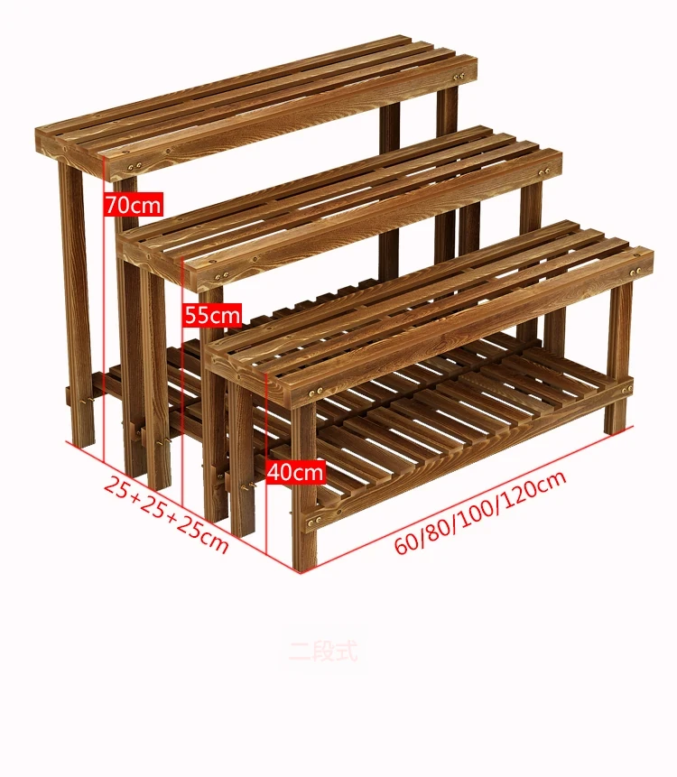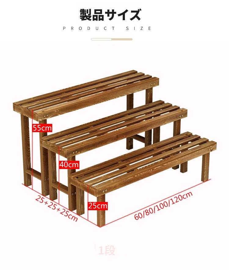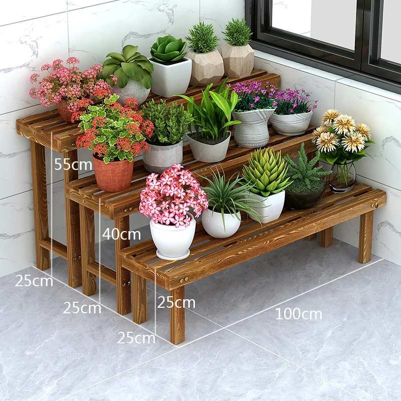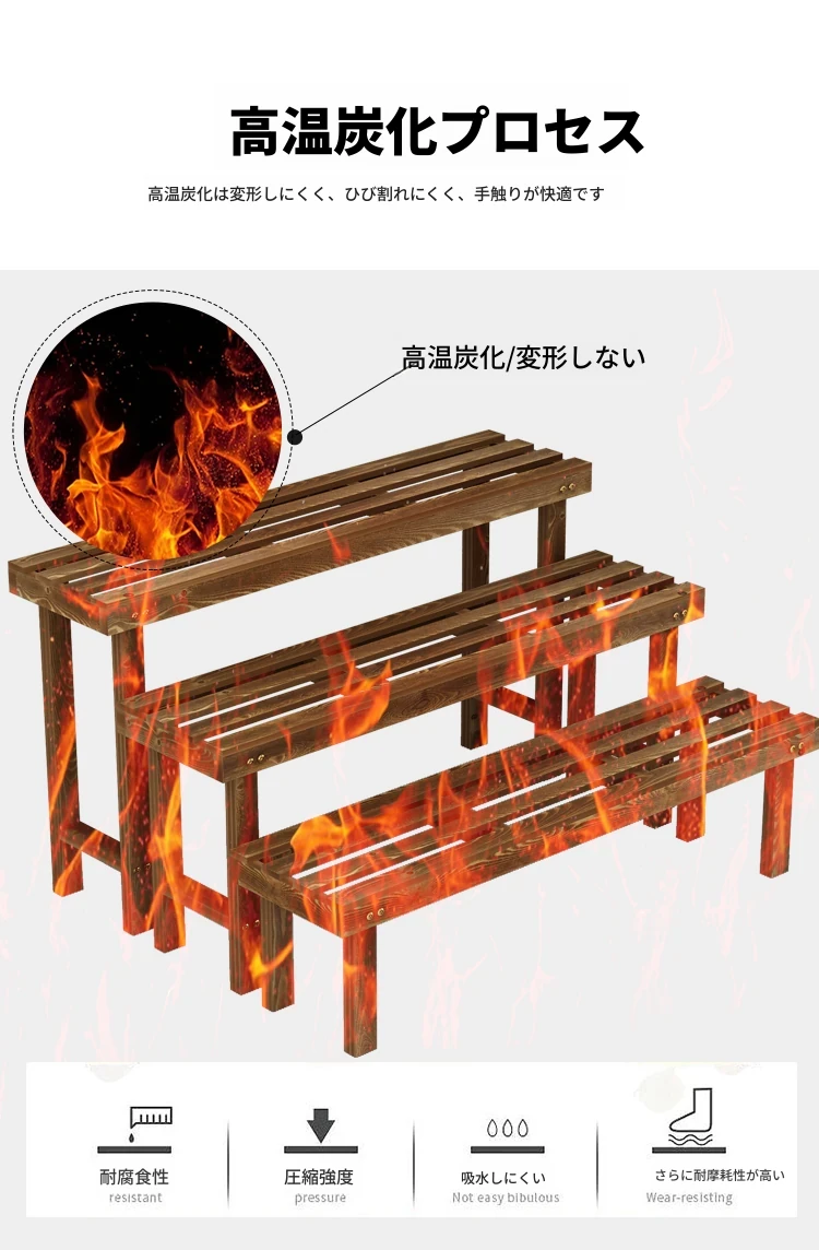 三夢の花架け - バルコニーにぴったりの階段型天然木製フラワースタンド!リビングに彩りを添える落地式プランツラックで、素敵なお花や観葉植物をおしゃれにディスプレイ!