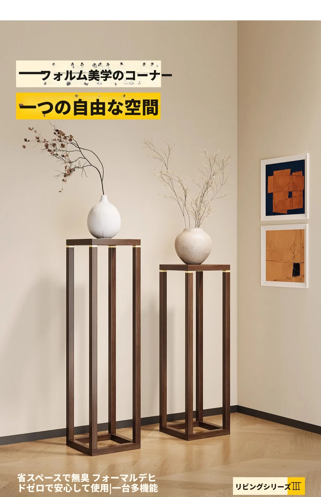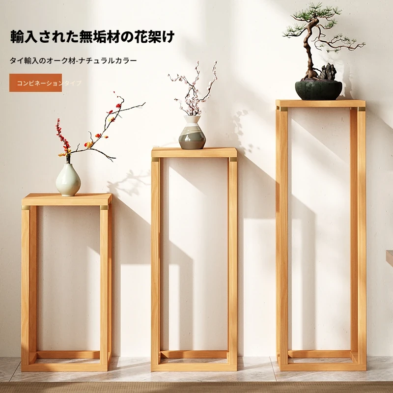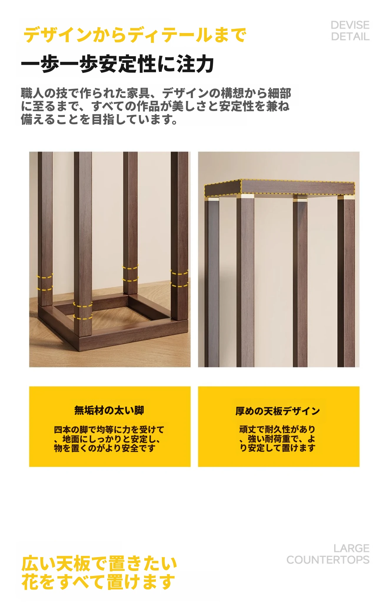 2025年新作!三夢高級感の無垢材フラワースタンド - リビングルームにぴったりなスタイリッシュな室内植物置き場。おしゃれで機能的なデザインが、あなたの空間を一層魅力的に演出します!