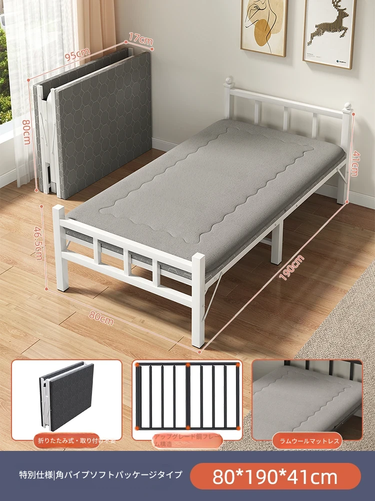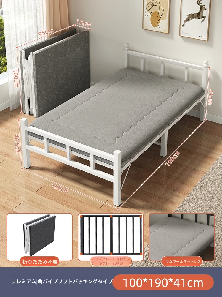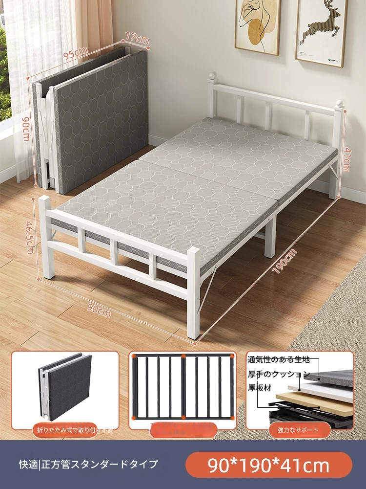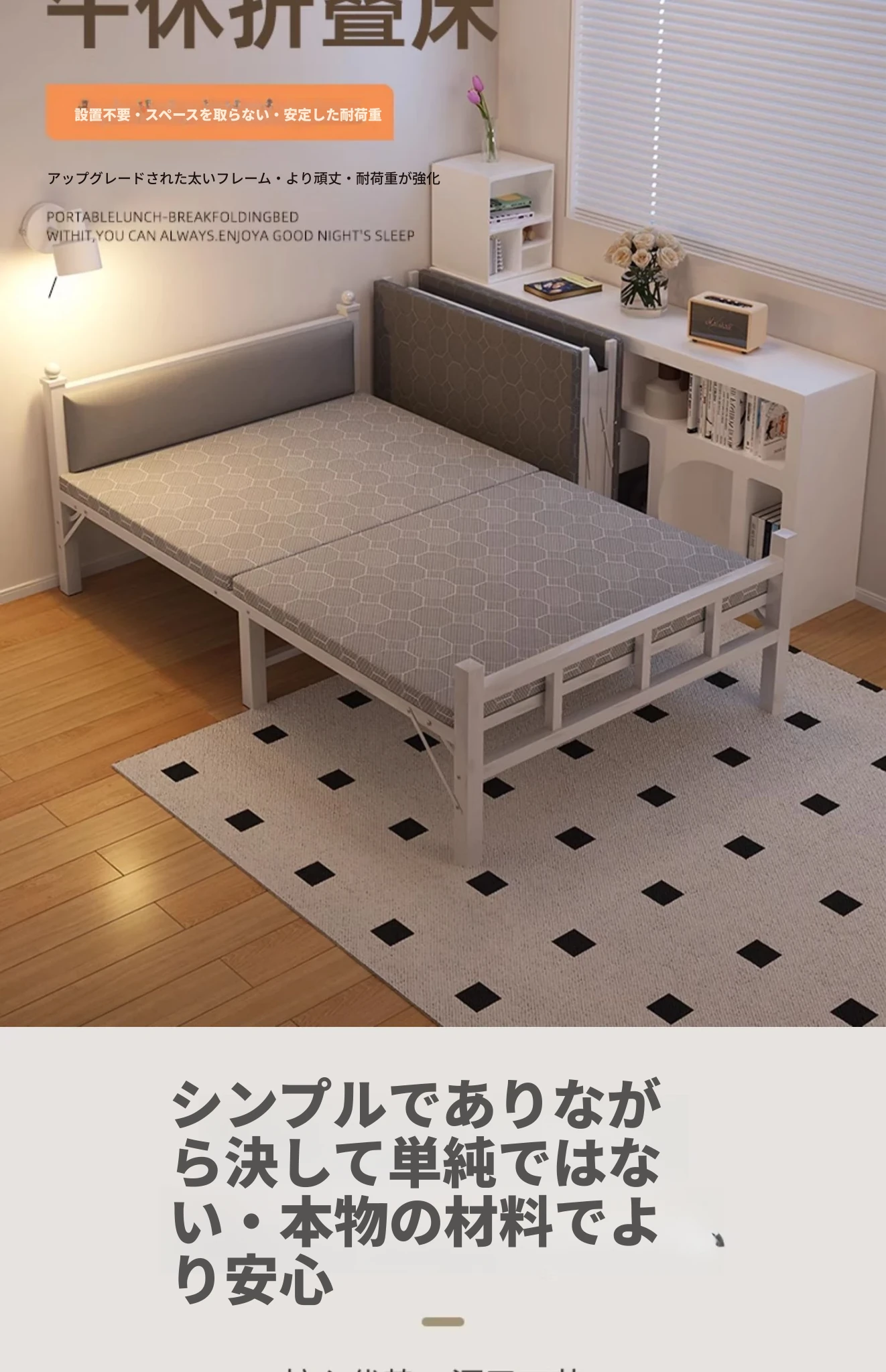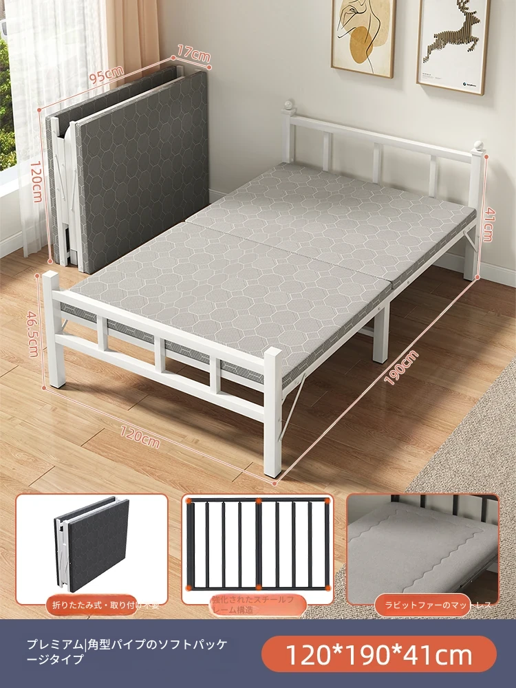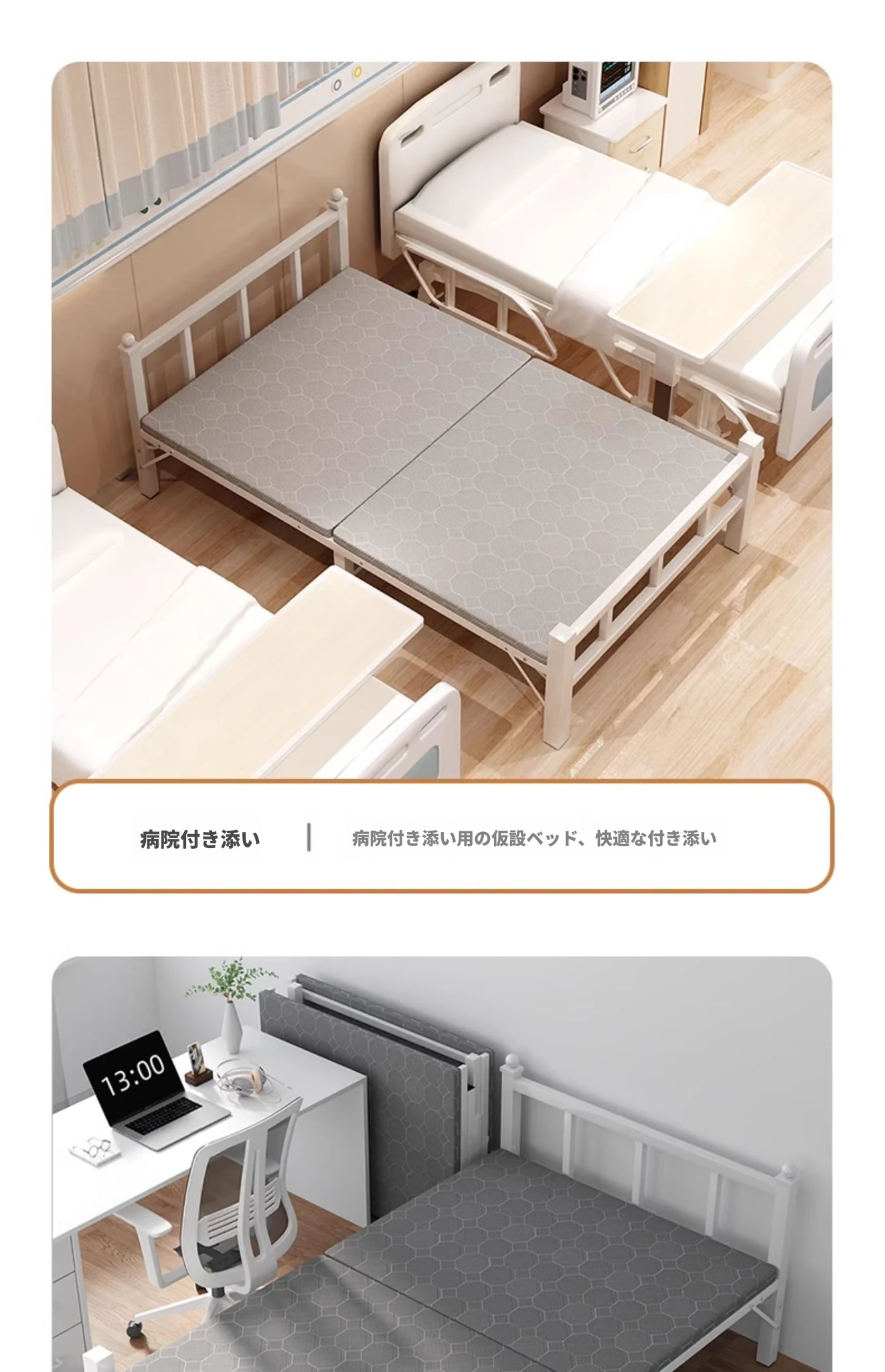 折りたたみシングルベッド 家庭用簡易ベッド 1.2m 加強型お昼寝用小型ベッド 大人向けオフィス用硬めの鉄製ベッドで快適な休息をお楽しみください!