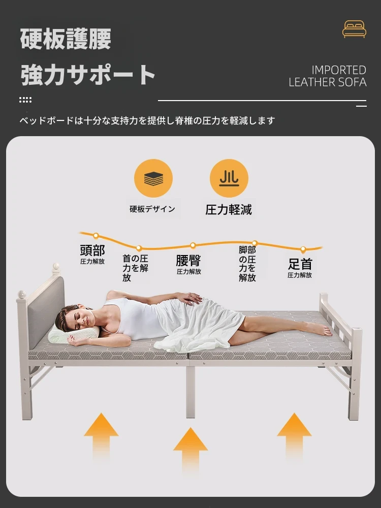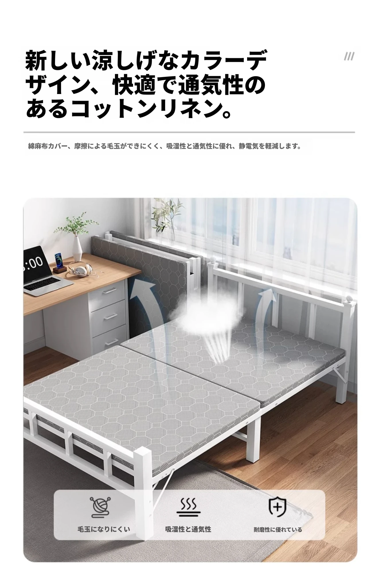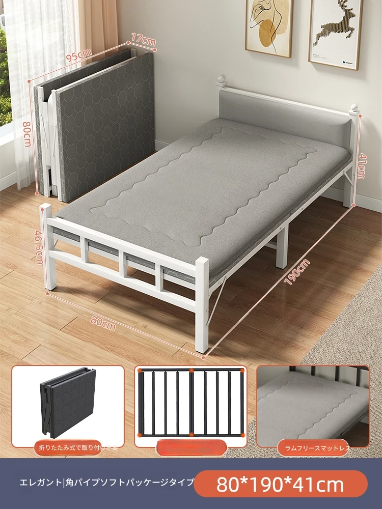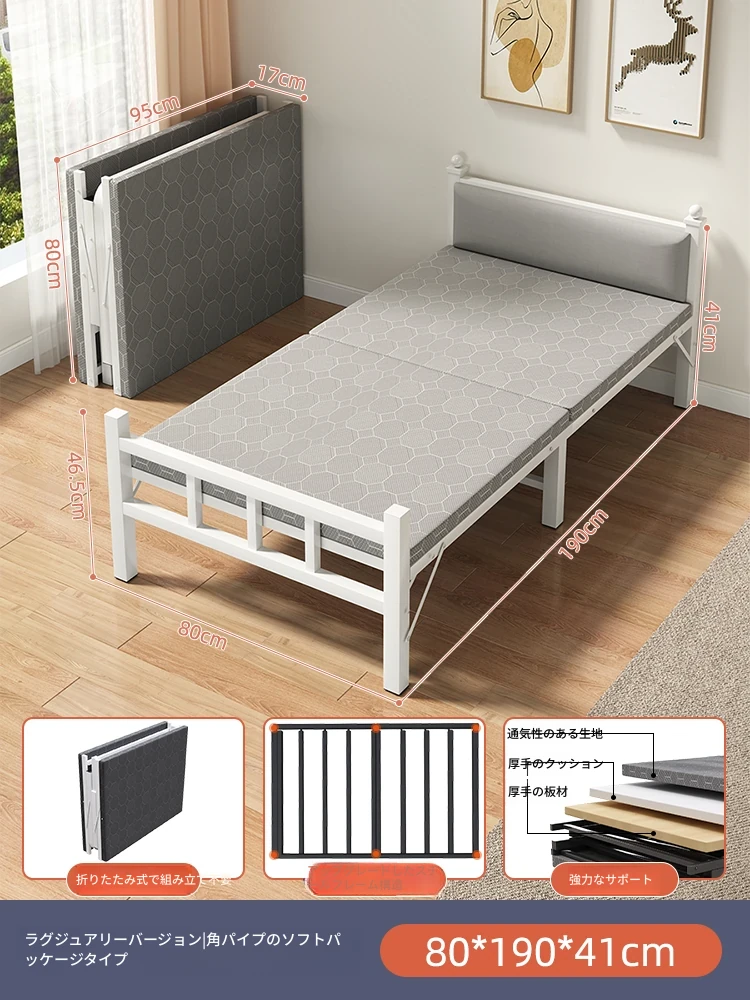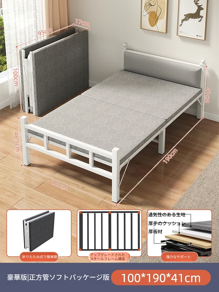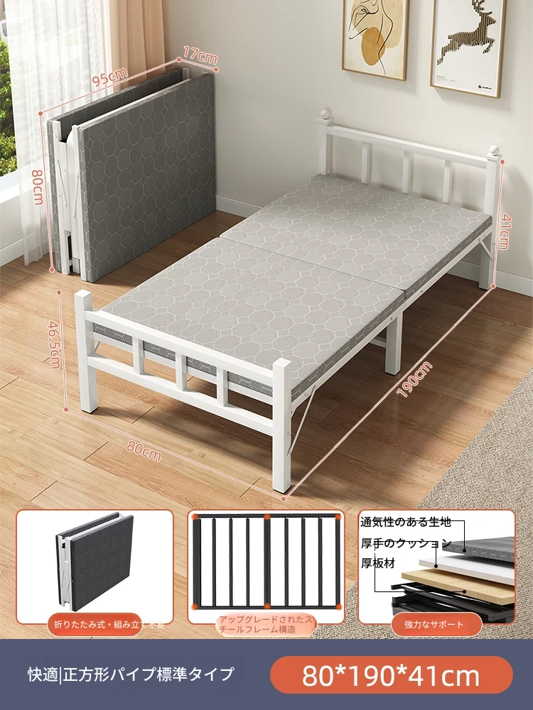 折りたたみシングルベッド 家庭用簡易ベッド 1.2m 加強型お昼寝用小型ベッド 大人向けオフィス用硬めの鉄製ベッドで快適な休息をお楽しみください!
