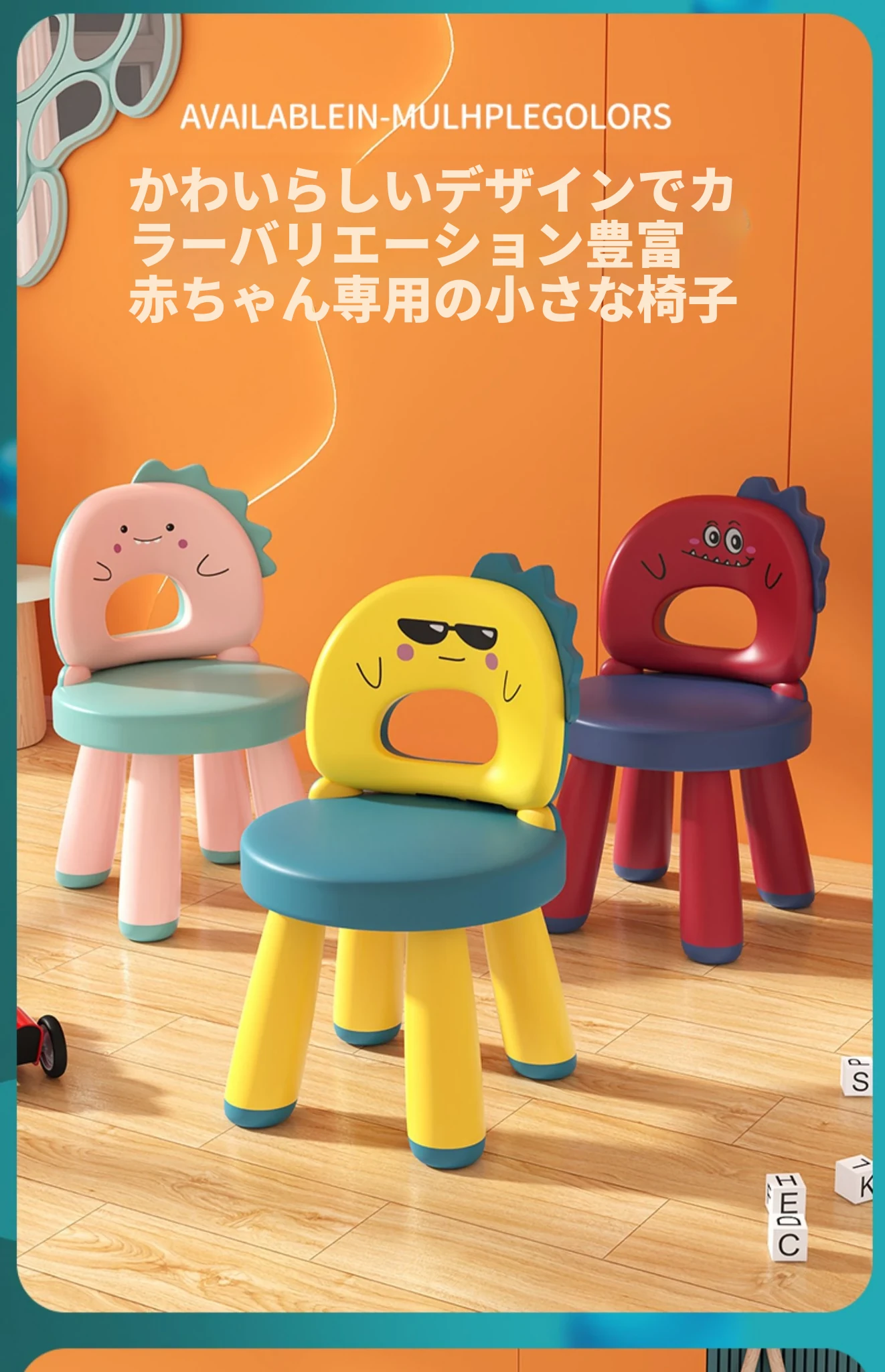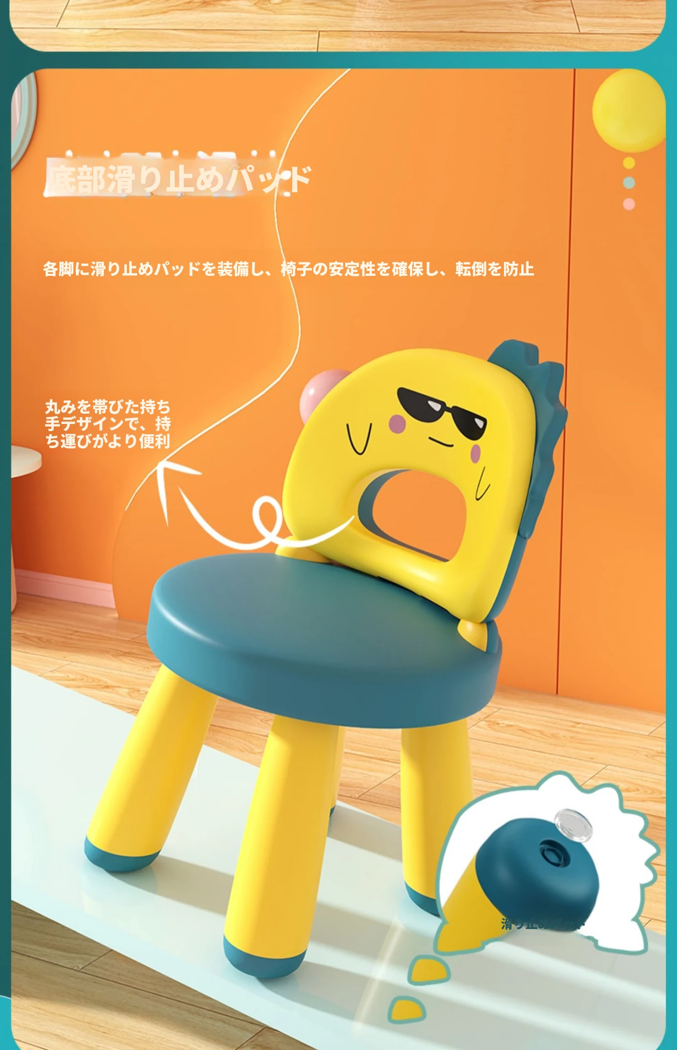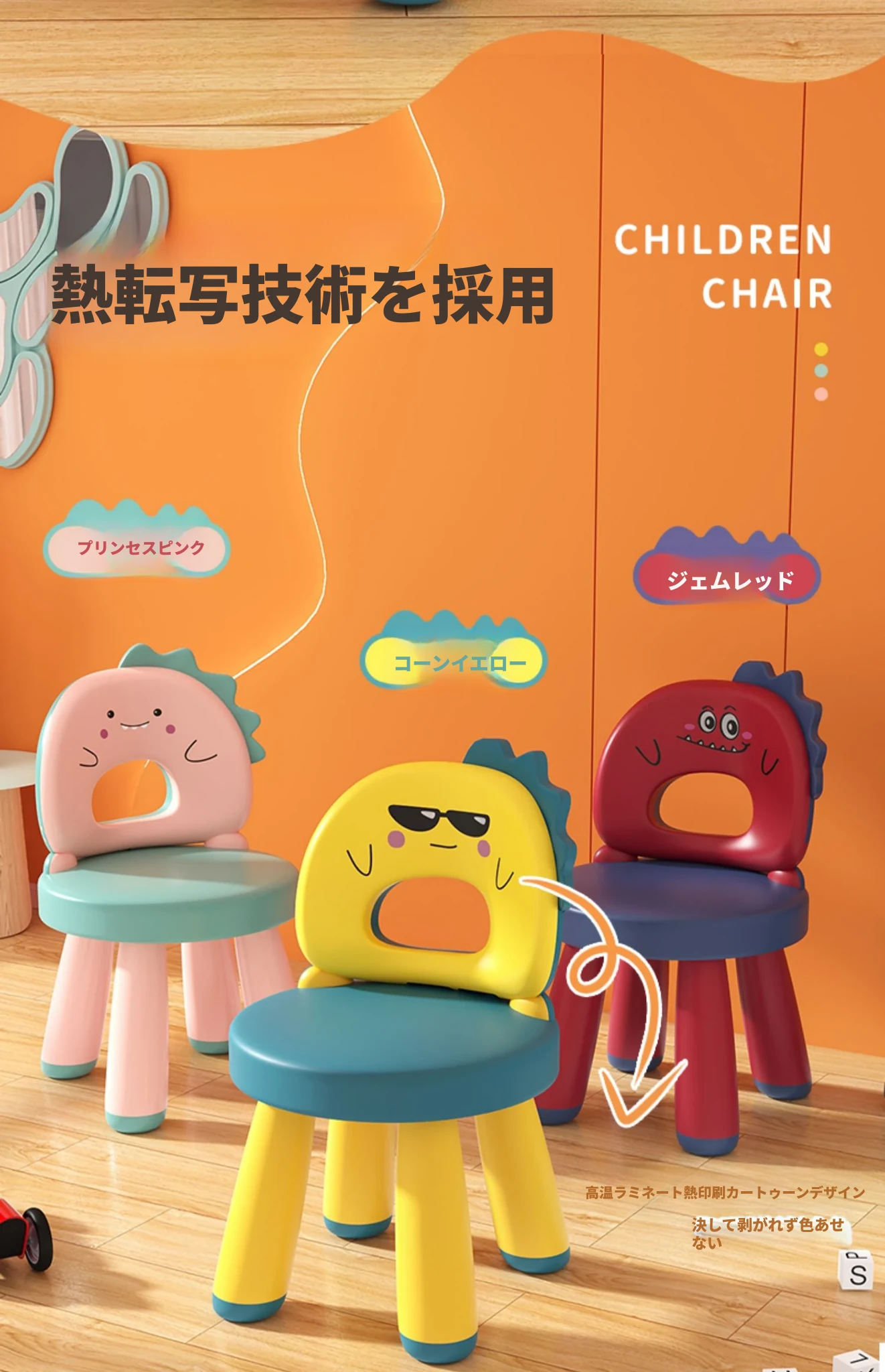 子供用カートゥーンデザインの家庭用椅子、赤ちゃんのための背もたれ付き、滑り止めプラスチック製、厚手の座面、幼稚園や遊び場にも最適なゲームチェア。お子様の楽しい時間をサポートします!