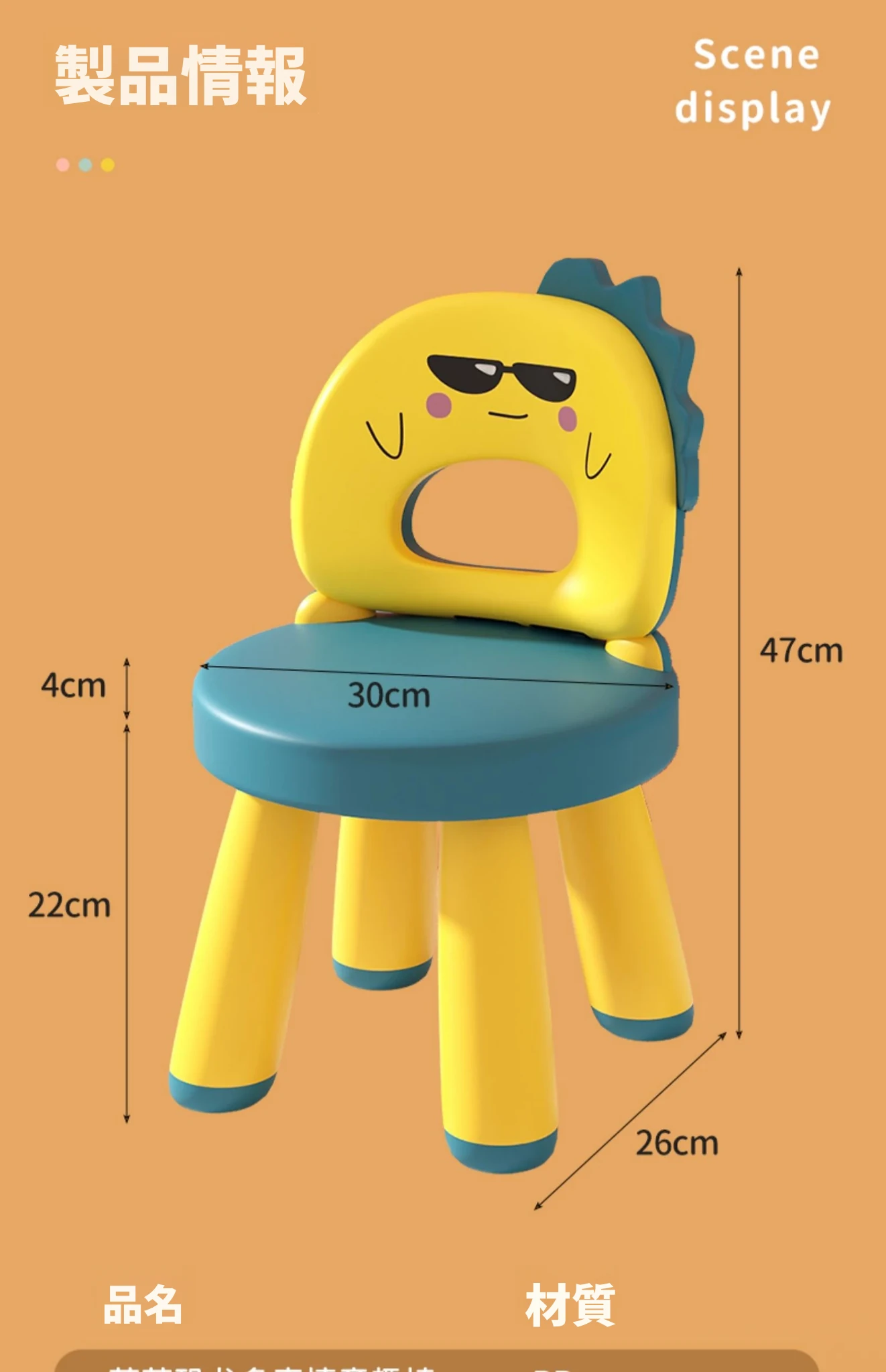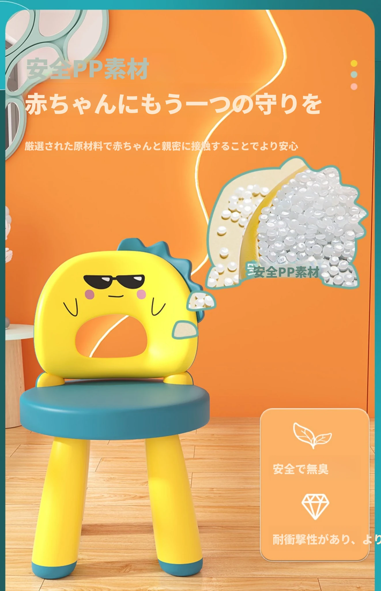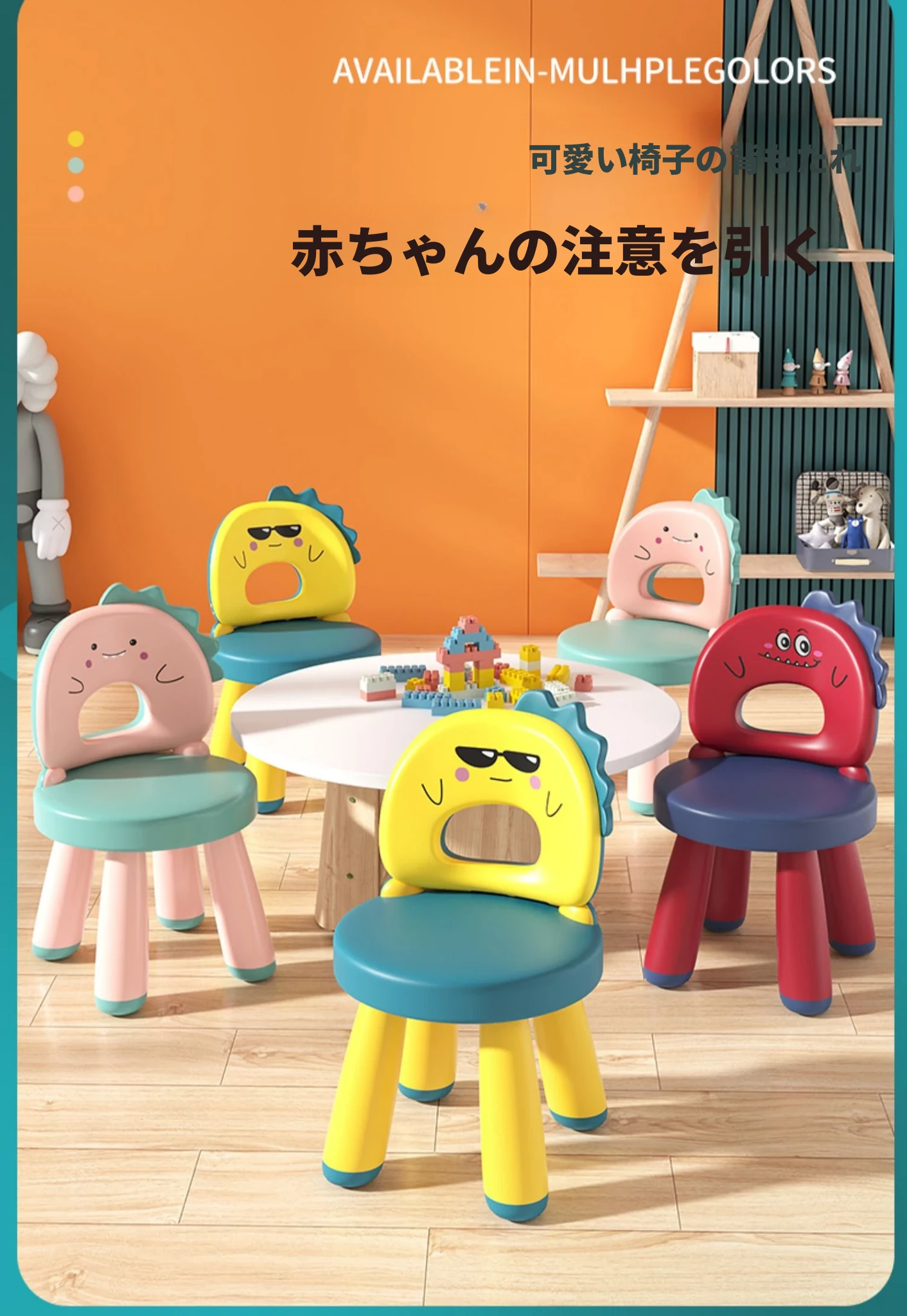 子供用カートゥーンデザインの家庭用椅子、赤ちゃんのための背もたれ付き、滑り止めプラスチック製、厚手の座面、幼稚園や遊び場にも最適なゲームチェア。お子様の楽しい時間をサポートします!