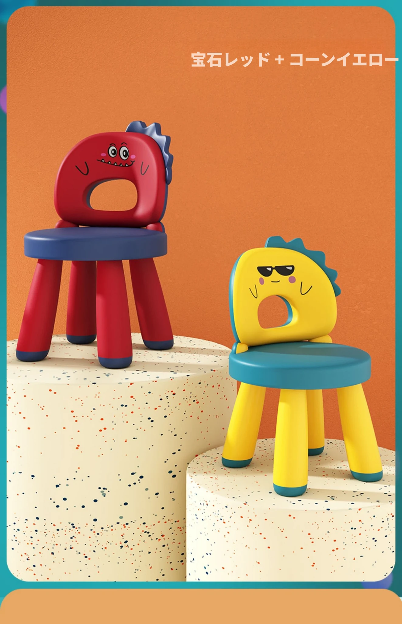 コーンイエローハッピー恐竜⭐️+ジェムレッド可愛い恐竜⭐️