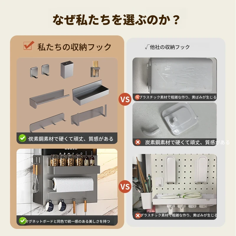 マグネット式キッチン収納ラック!穴あけ不要の調味料壁掛けカバー、スッキリ整理できるナイフホルダー付き!キッチンをおしゃれに、使いやすく!