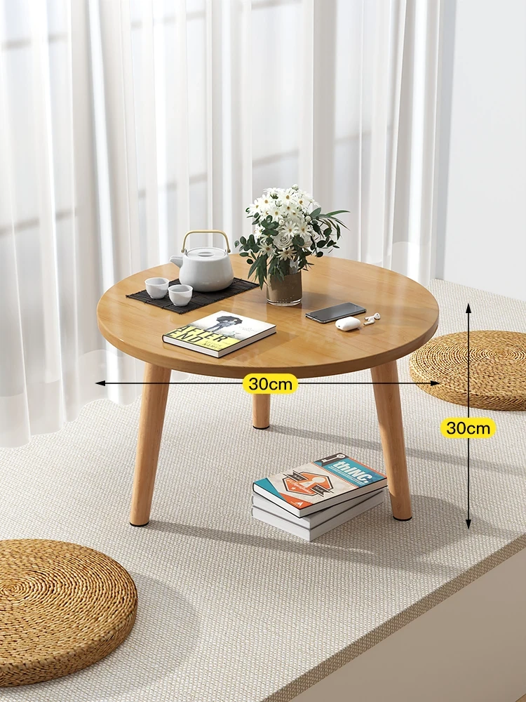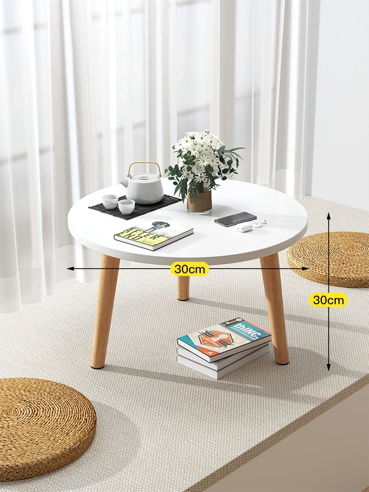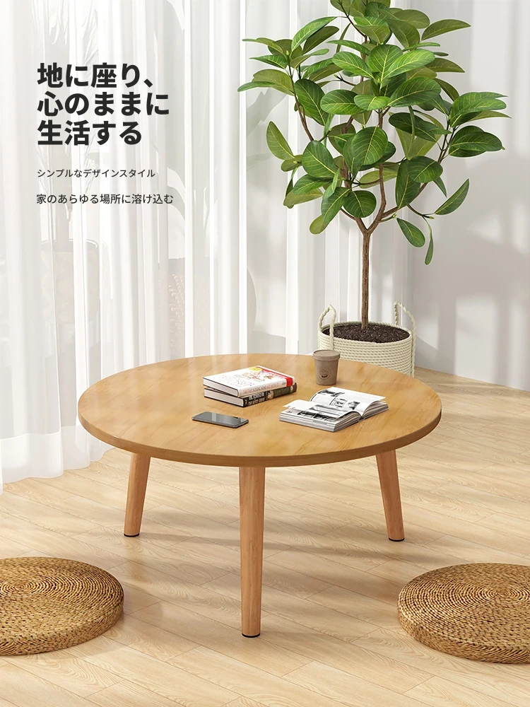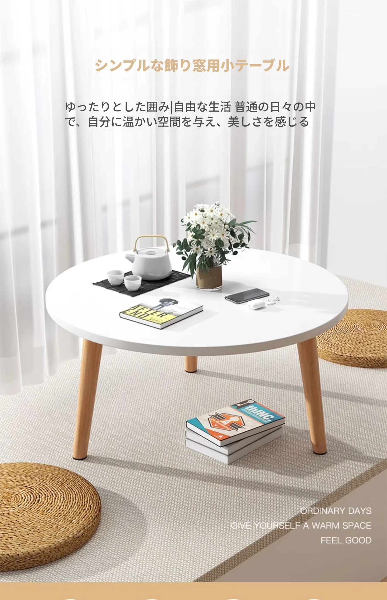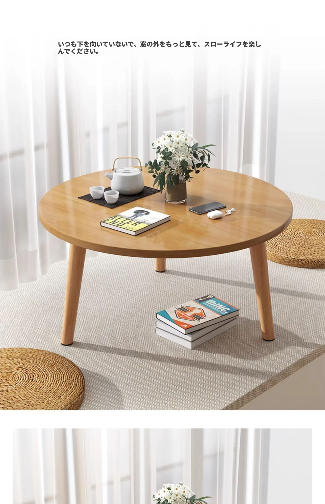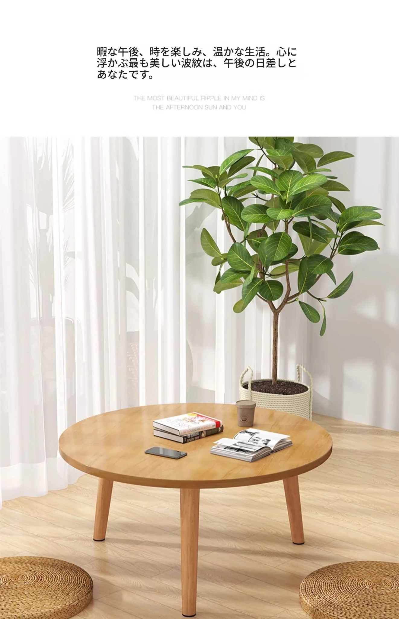 三夢の窓辺ミニテーブル - シンプルでスタイリッシュなデザイン、リビングや寝室にぴったり!座ってリラックスできる低いテーブル。タタミや窓際に最適な小さな円形テーブルで、心地よいひとときを演出します。