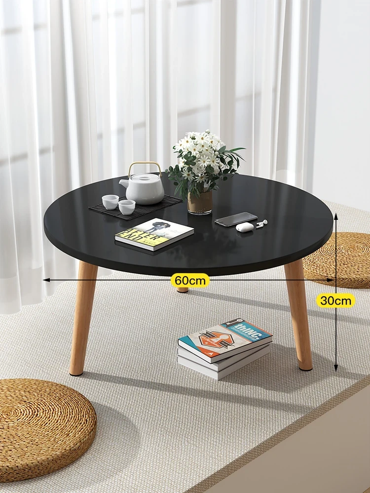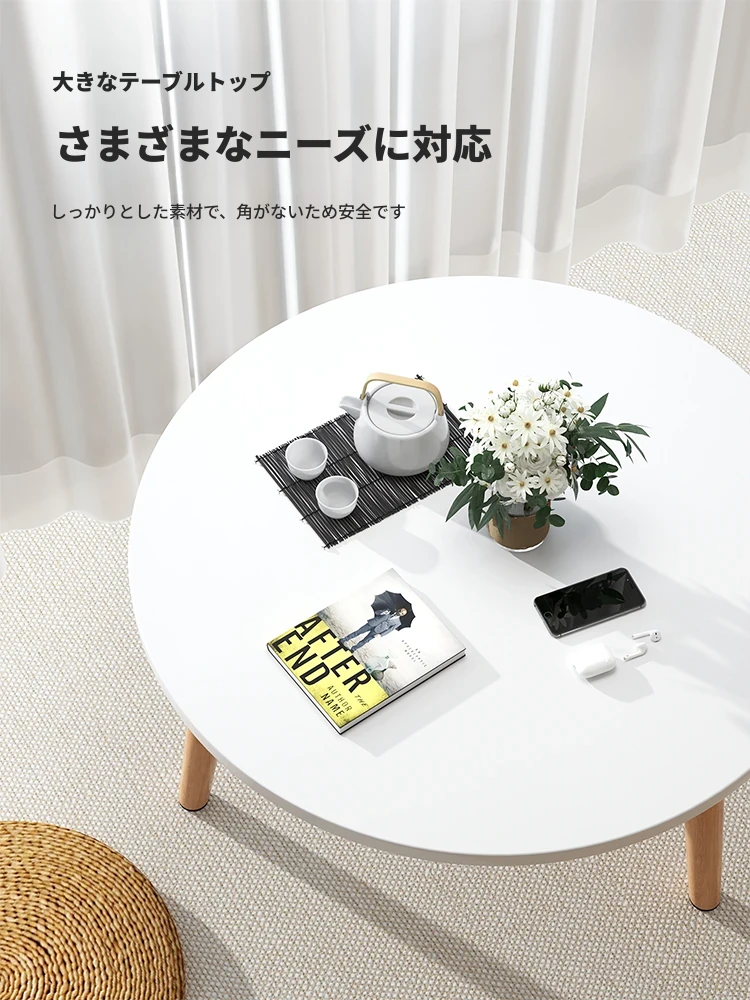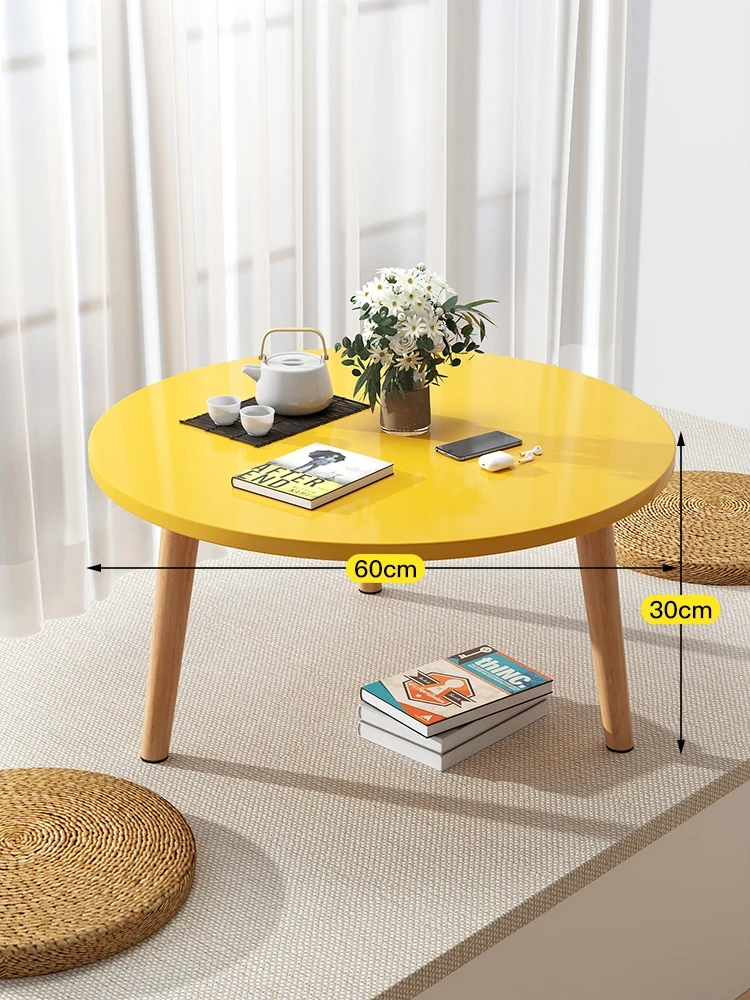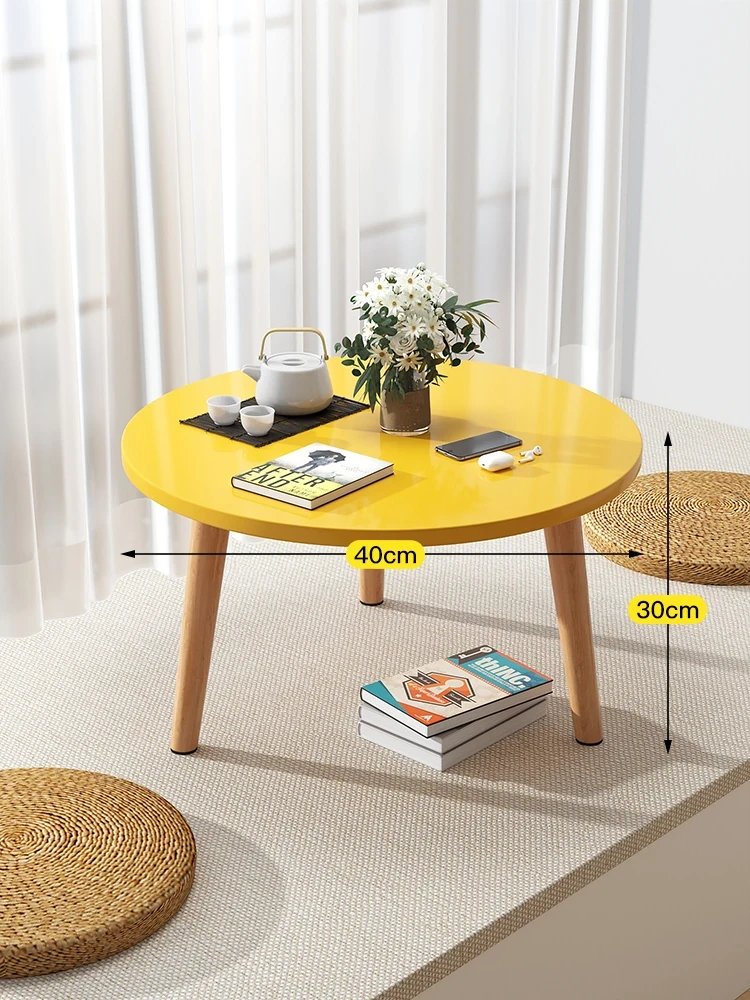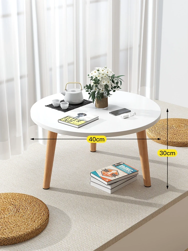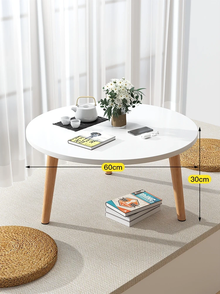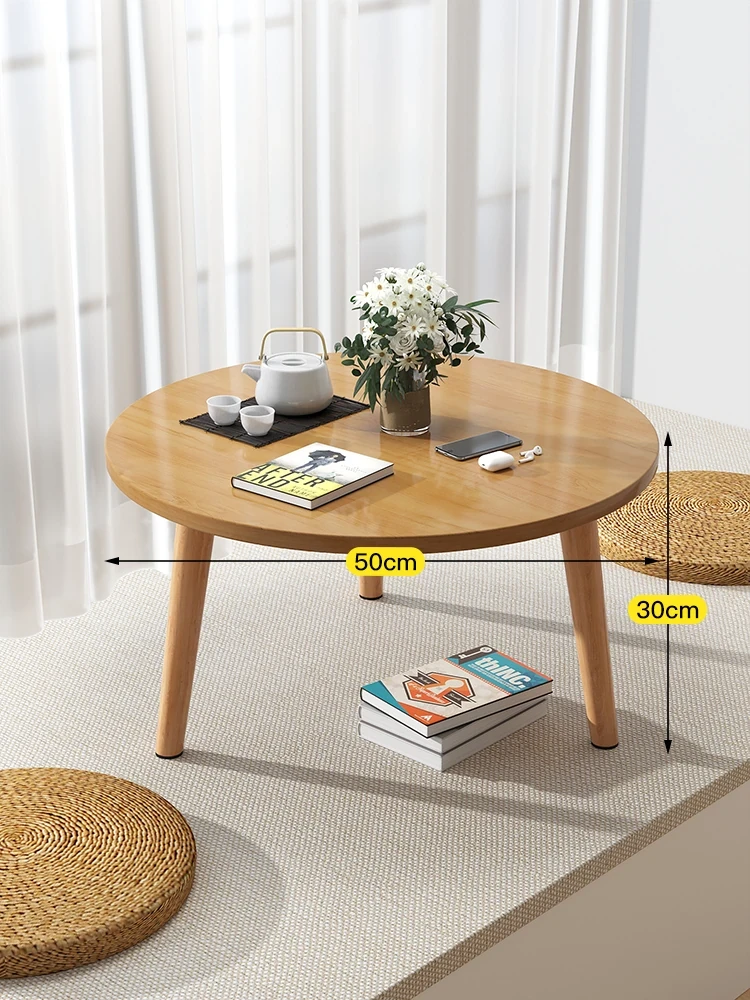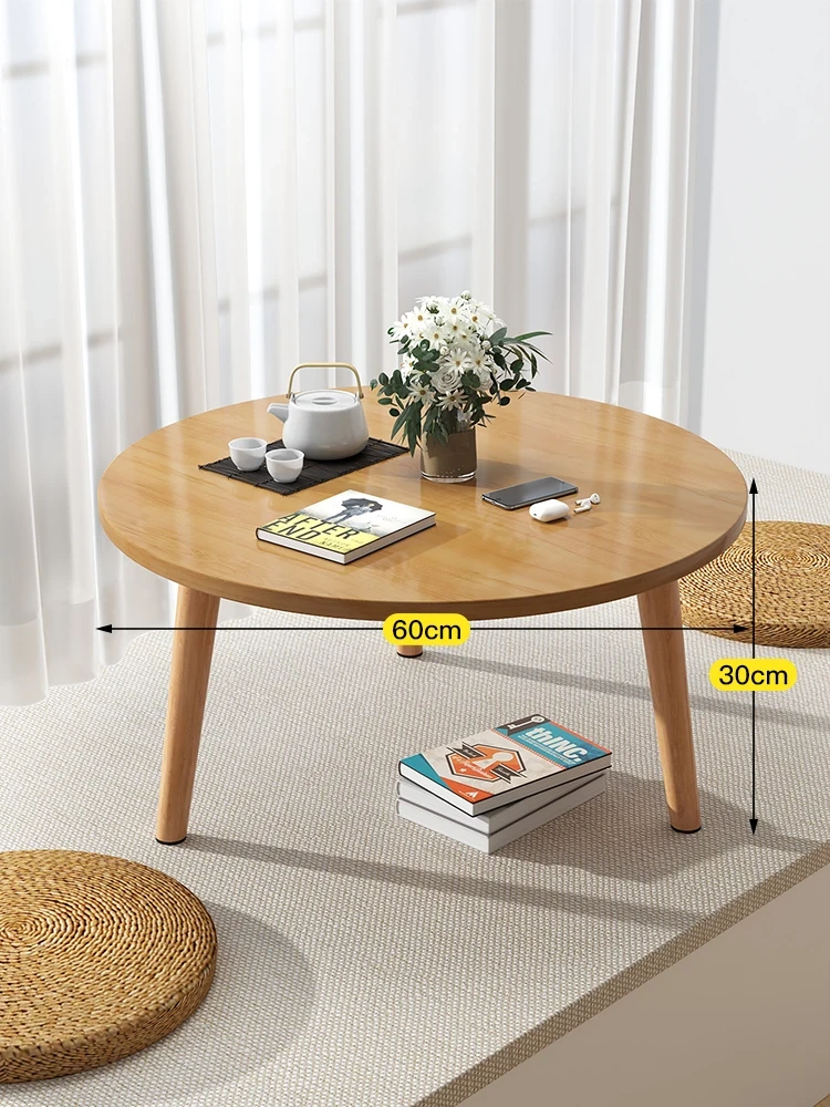 三夢の窓辺ミニテーブル - シンプルでスタイリッシュなデザイン、リビングや寝室にぴったり!座ってリラックスできる低いテーブル。タタミや窓際に最適な小さな円形テーブルで、心地よいひとときを演出します。