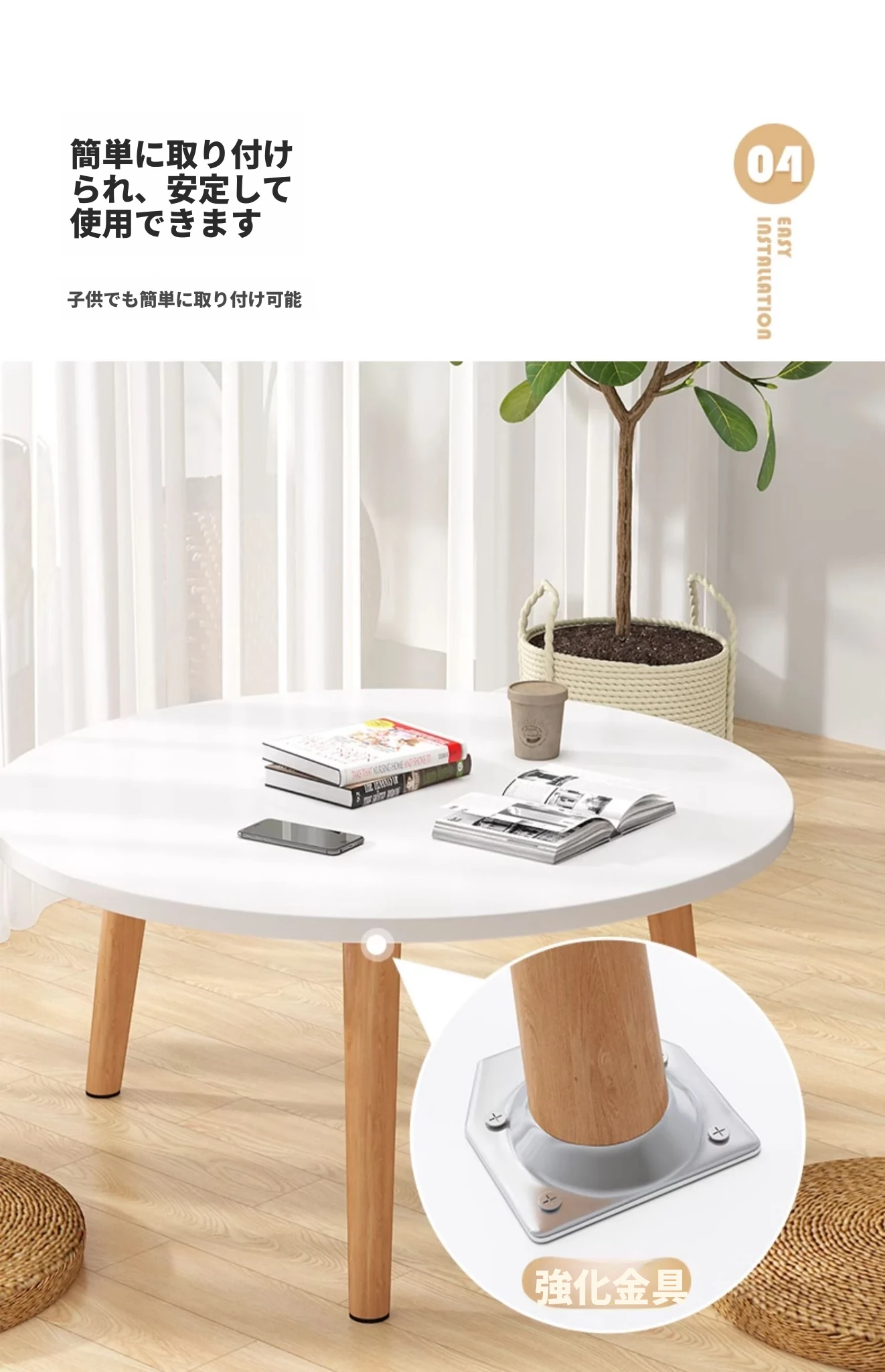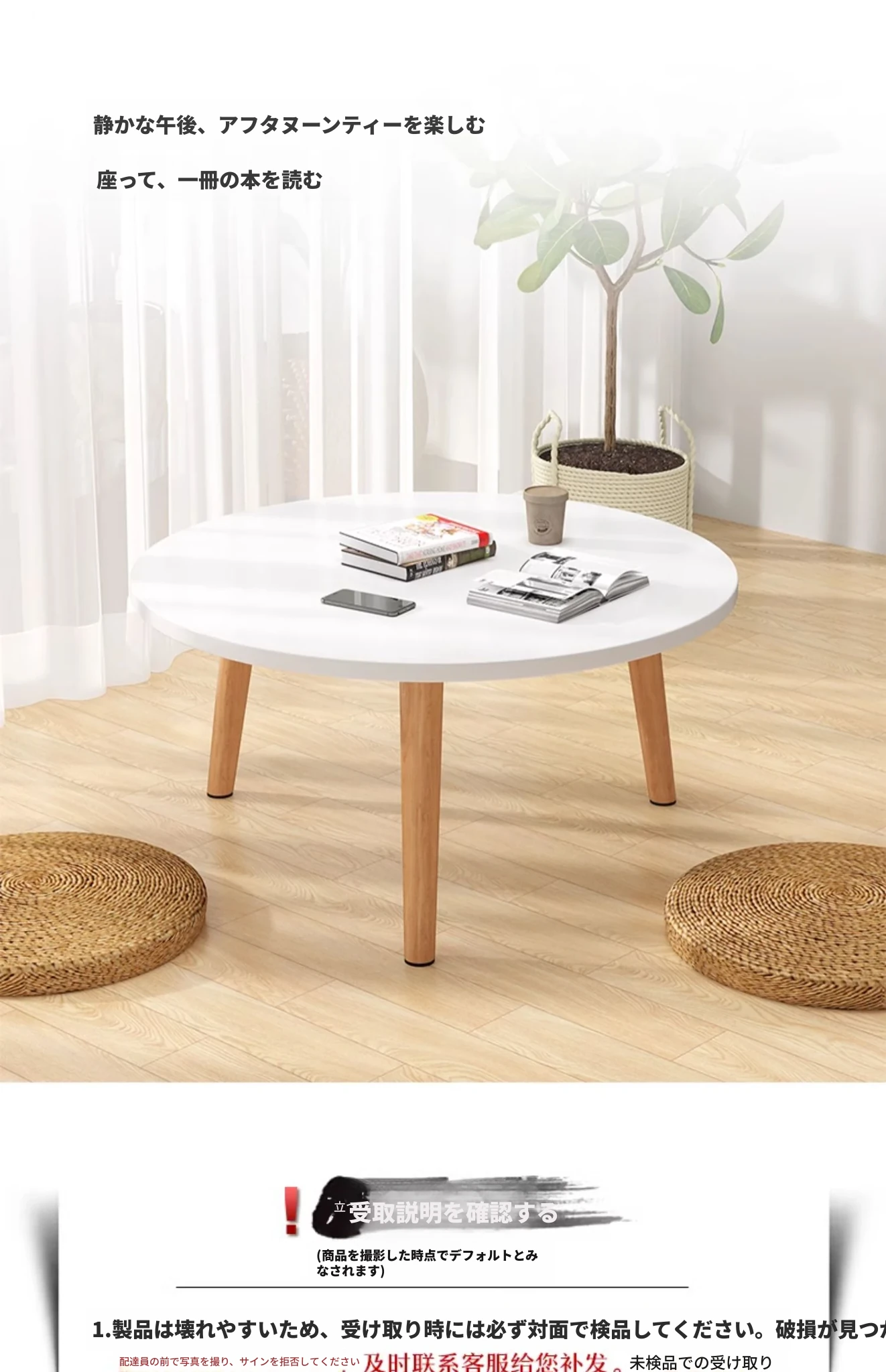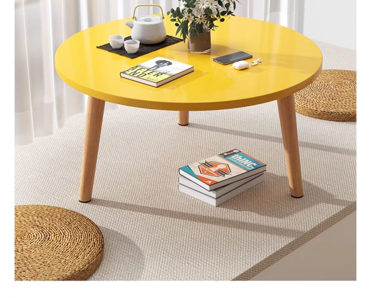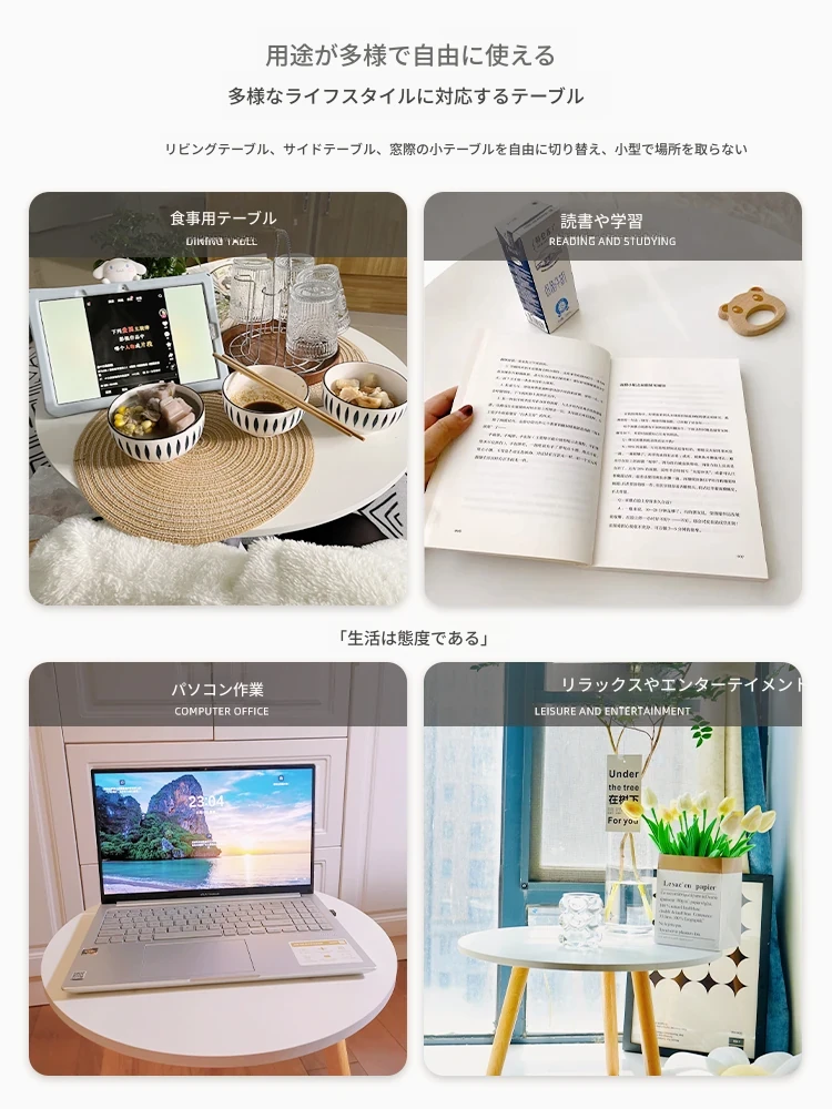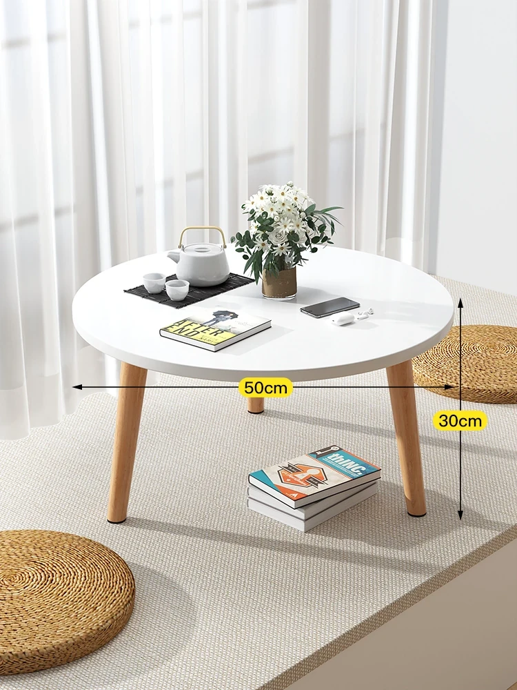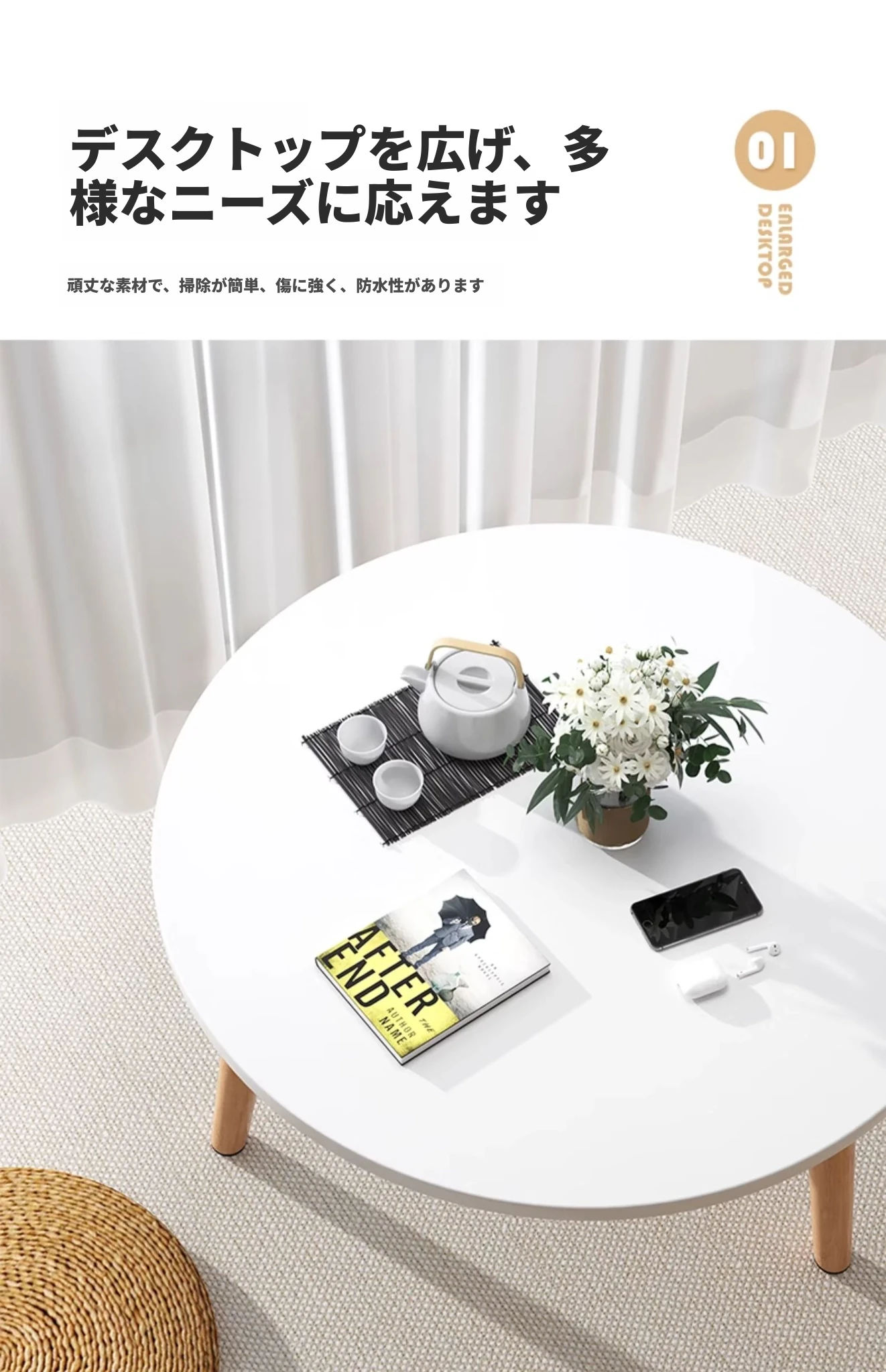 三夢の窓辺ミニテーブル - シンプルでスタイリッシュなデザイン、リビングや寝室にぴったり!座ってリラックスできる低いテーブル。タタミや窓際に最適な小さな円形テーブルで、心地よいひとときを演出します。
