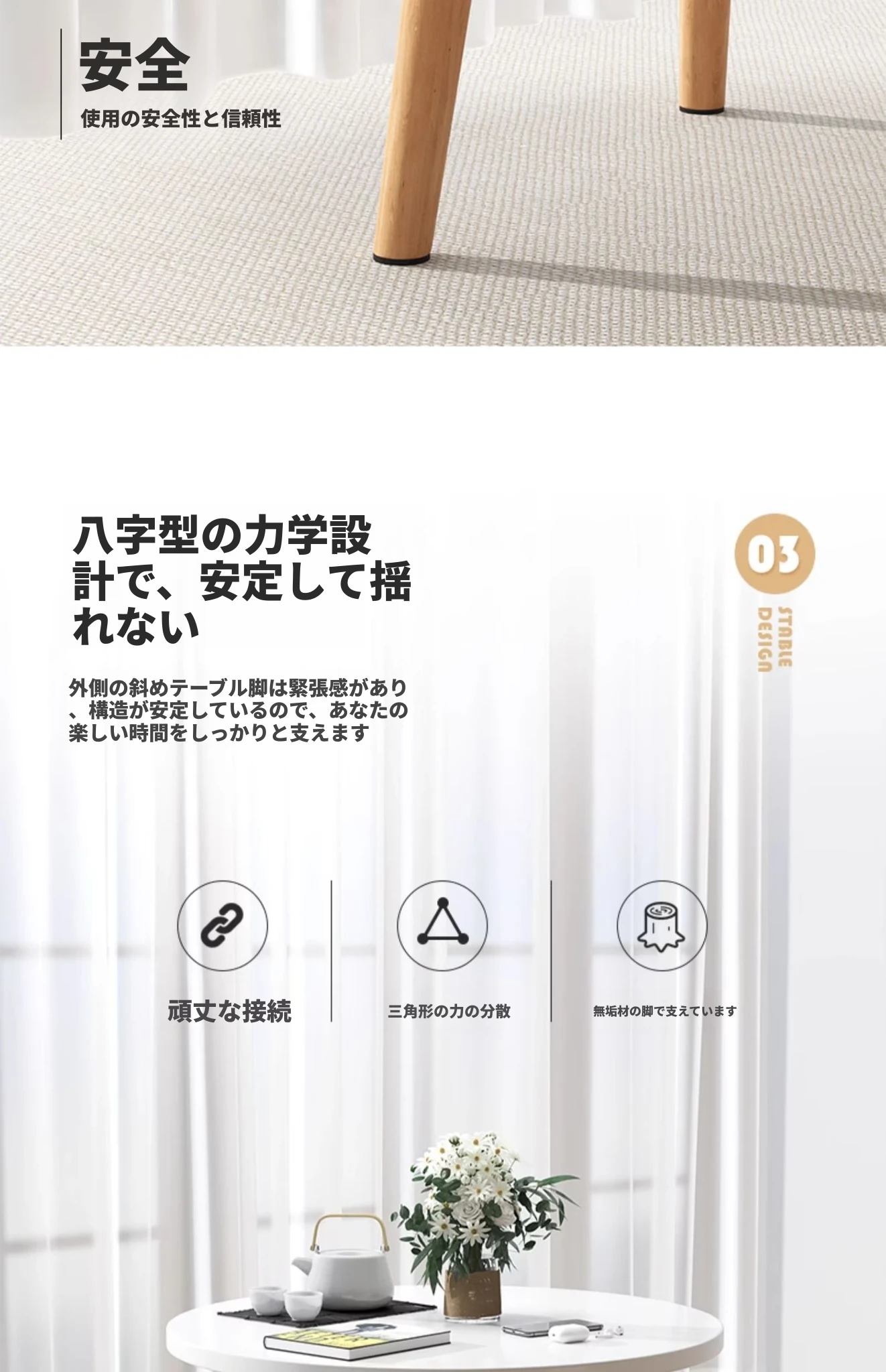 ウォームホワイトの小さな丸テーブル【直径50*30】無垢材の脚