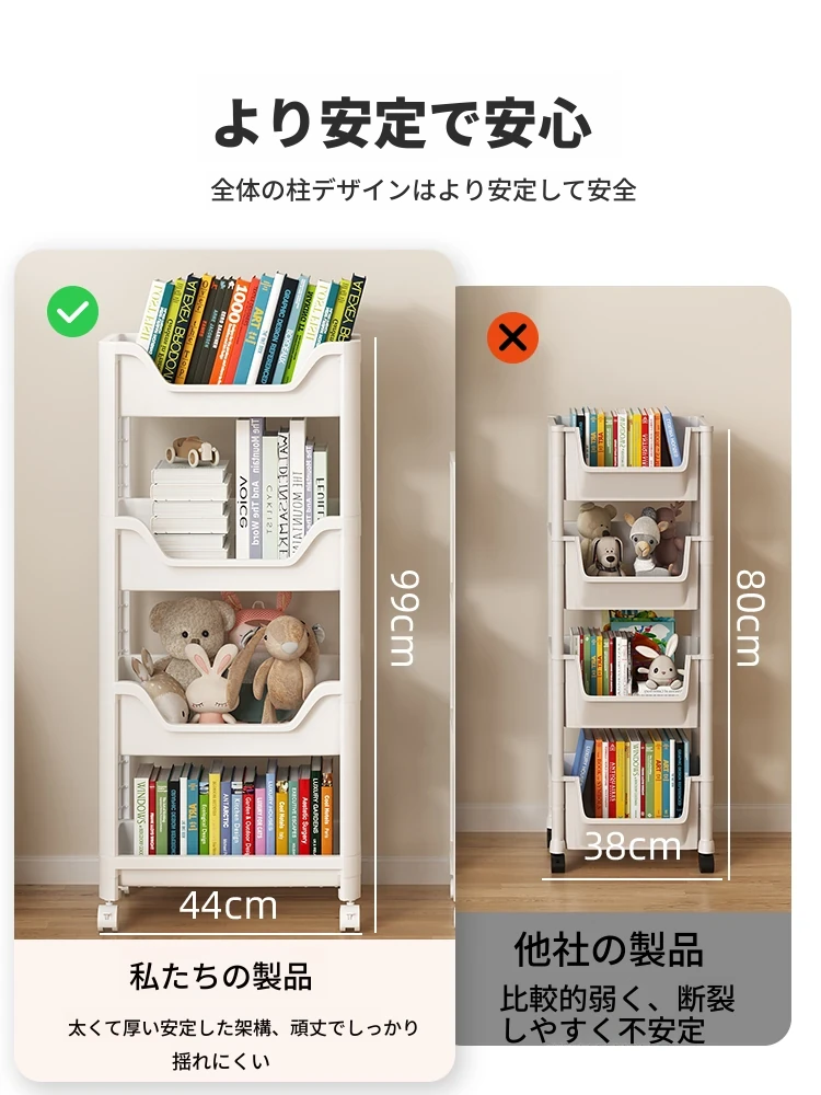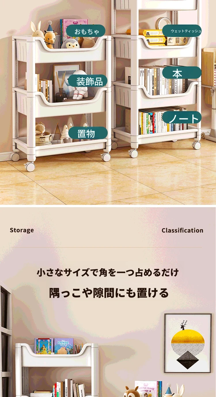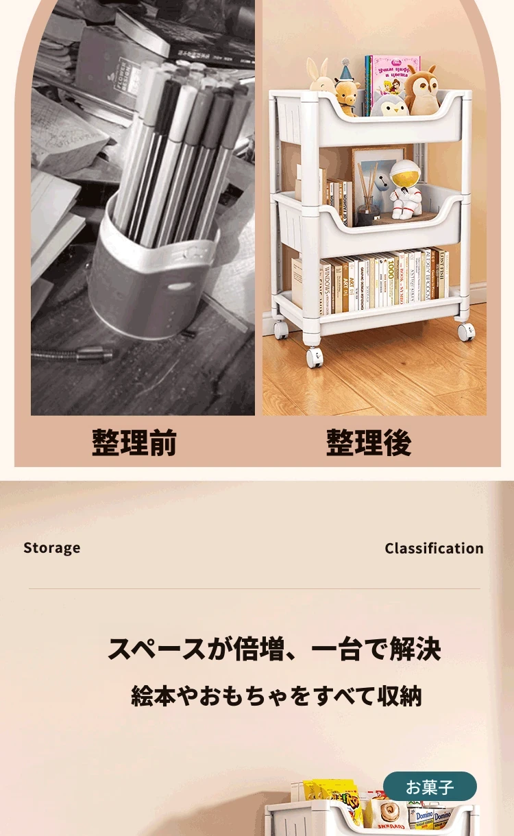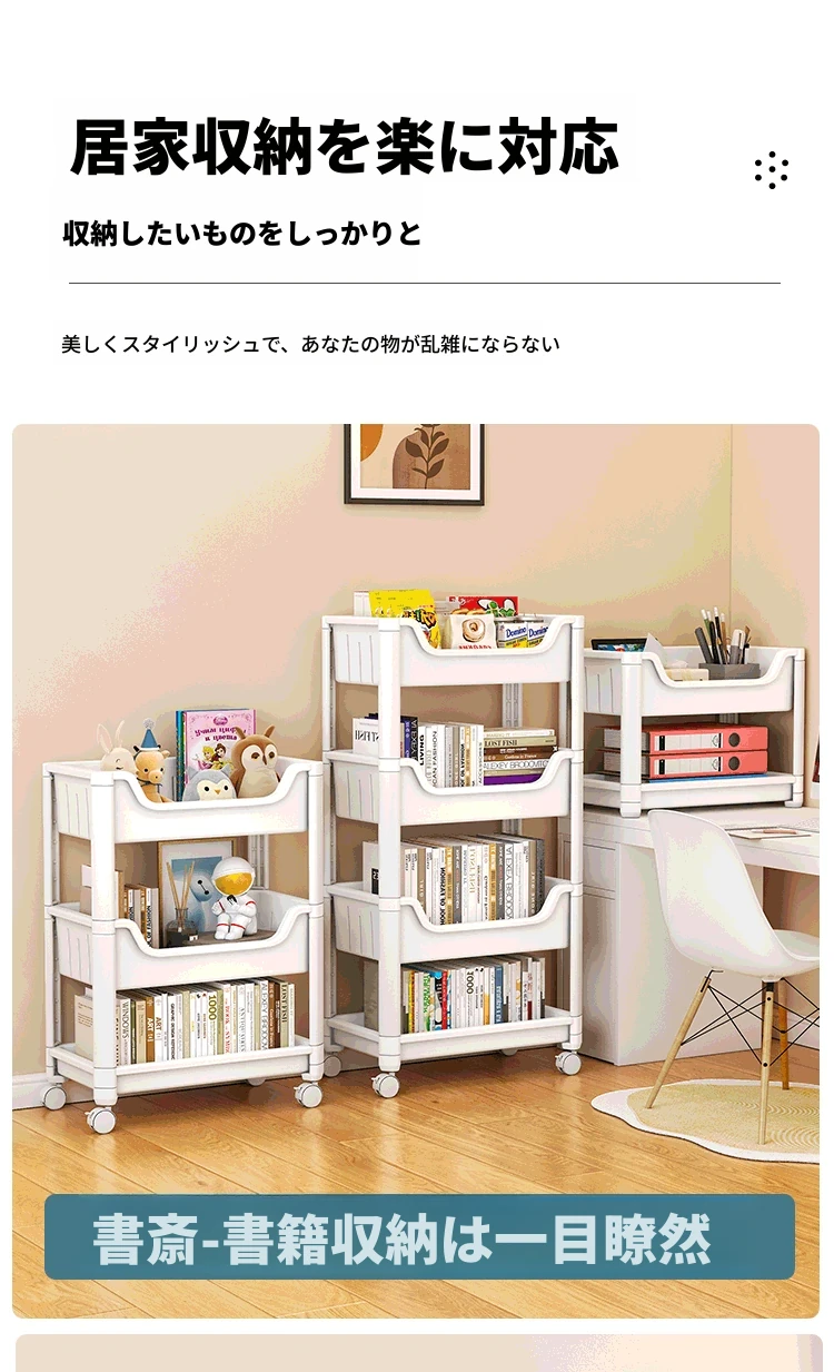移動式子供用お菓子収納ラック!家族みんなが使える便利なフロア本棚。キャスター付きで簡単に移動でき、読書スペースをスッキリ整理。シンプルでおしゃれなデザインで、お部屋をもっと楽しく!