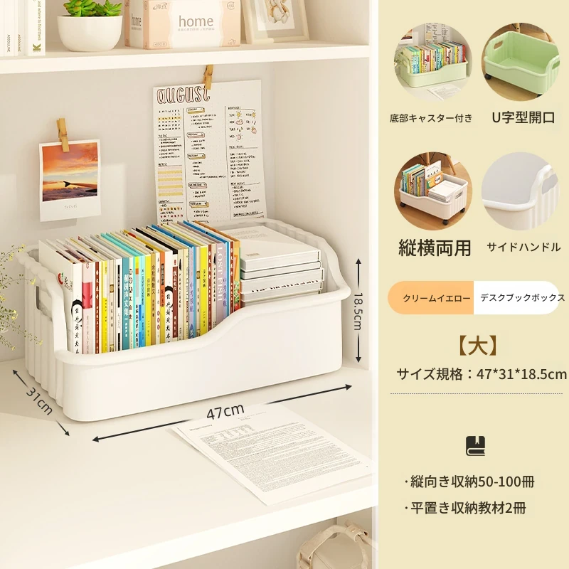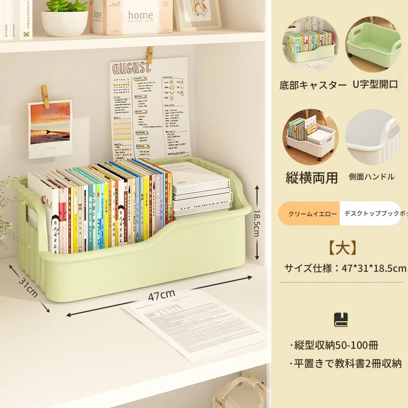 クリームイエロー-大サイズ【デスク収納】厚手素材