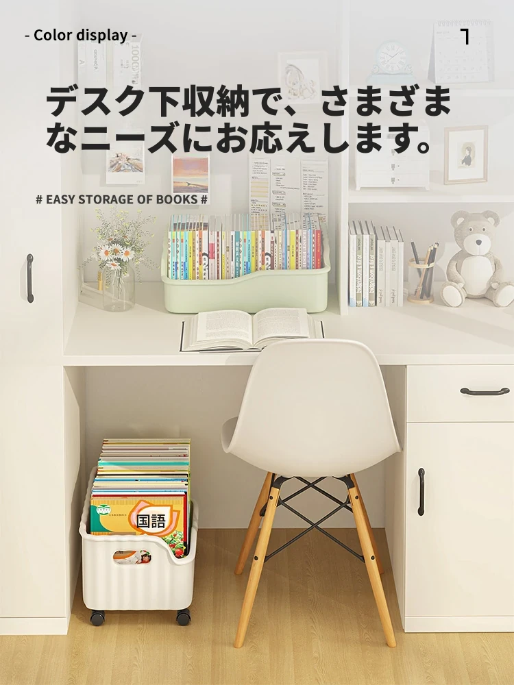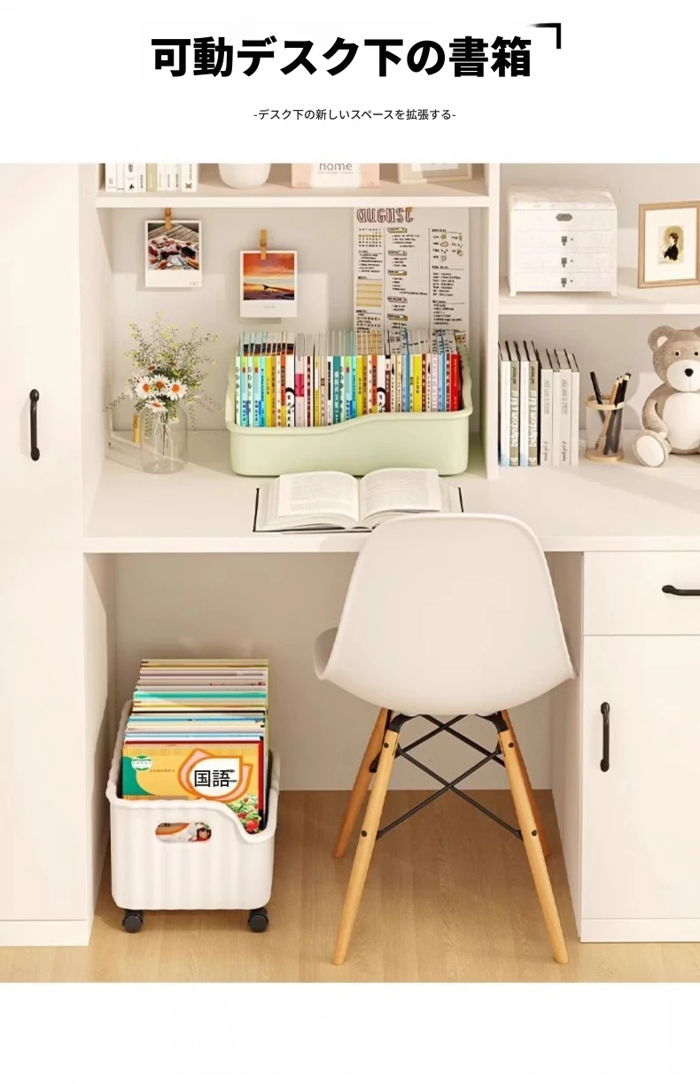 移動式キャスター付き書棚デスク下収納ラック | オフィスやリビングに最適な小物収納 | お菓子や書類をすっきり整理!便利な収納カートで快適空間を実現!