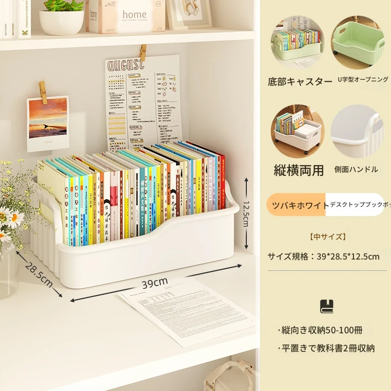 山茶花ホワイト-中サイズ【デスク収納】厚手素材