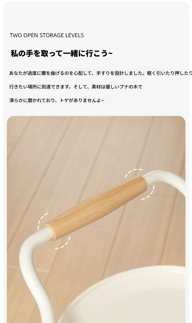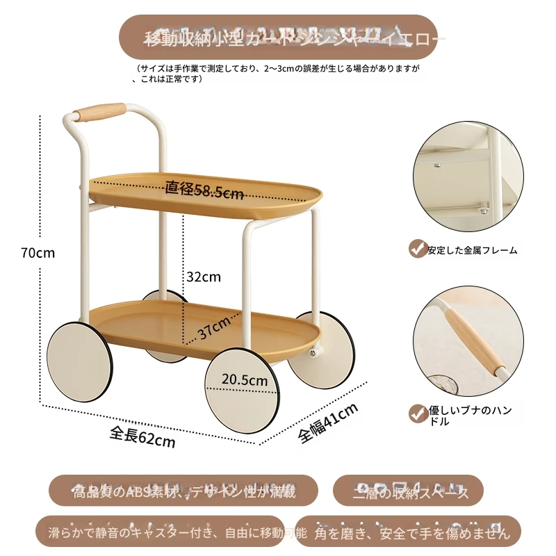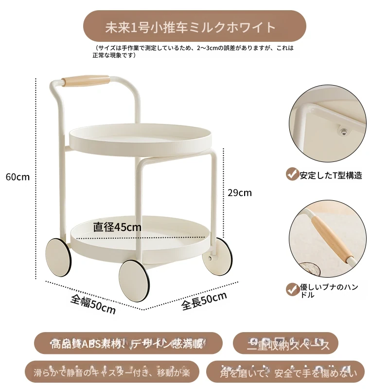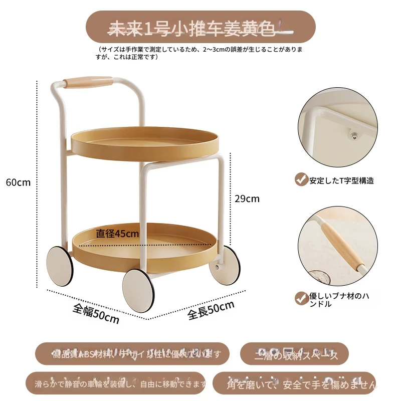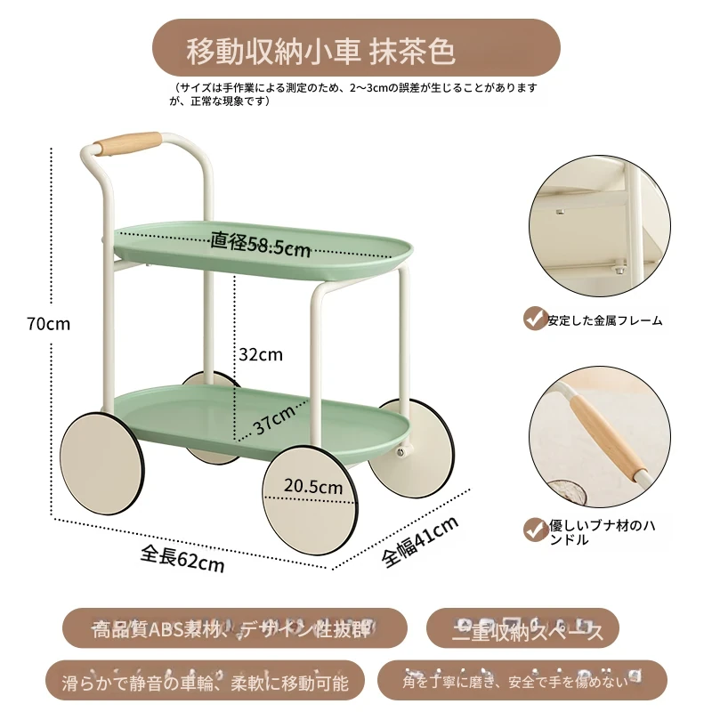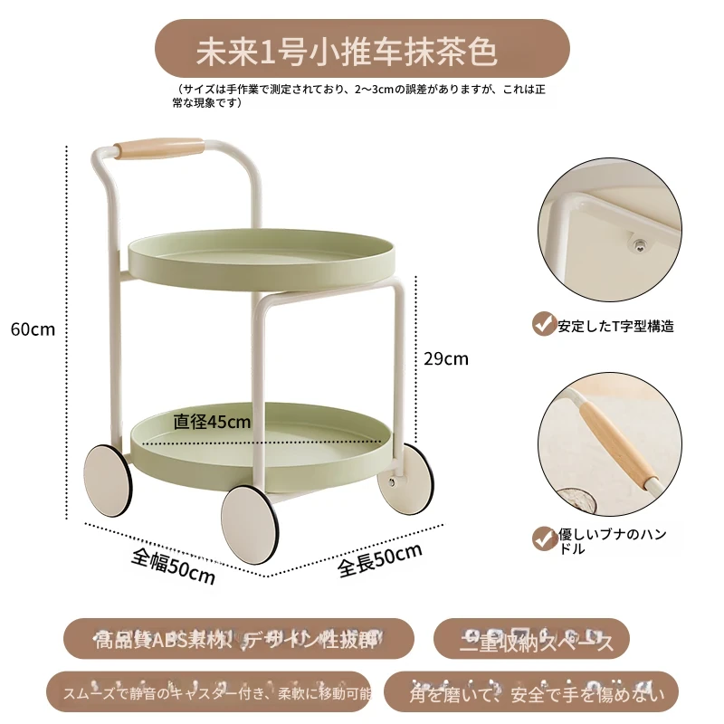 円形小型カート【アイボリー×グリーンフレーム+キャスター】