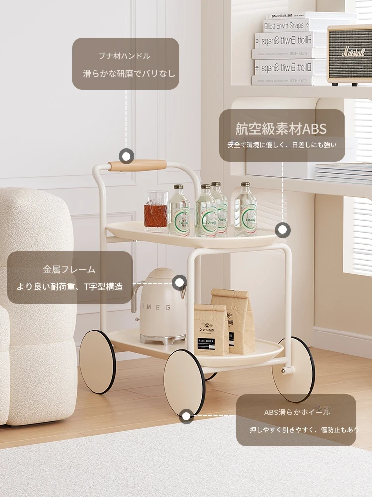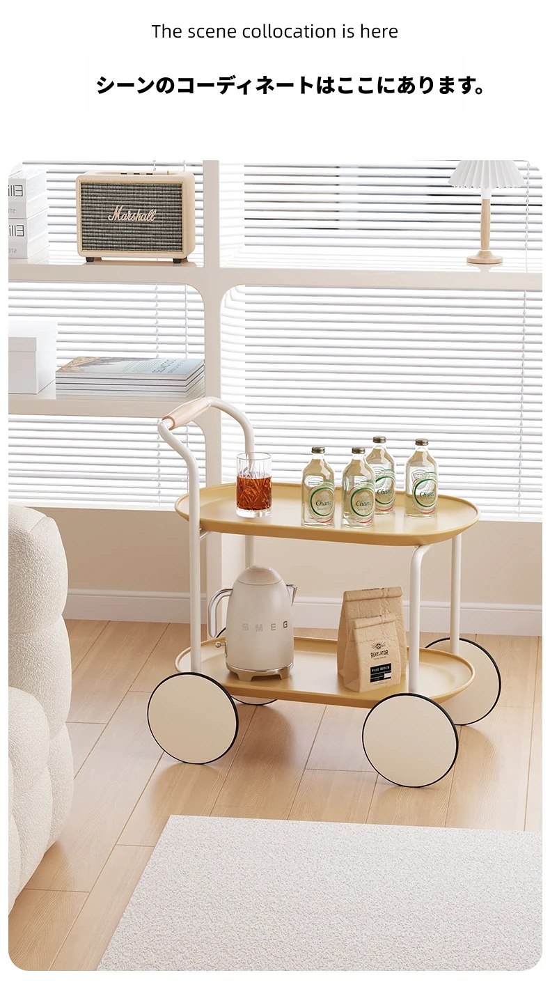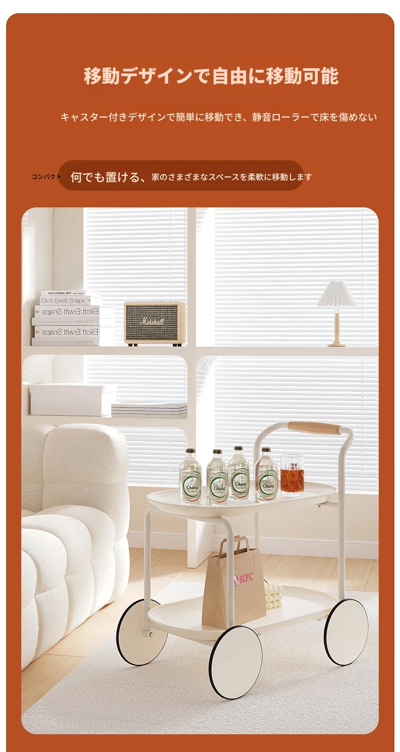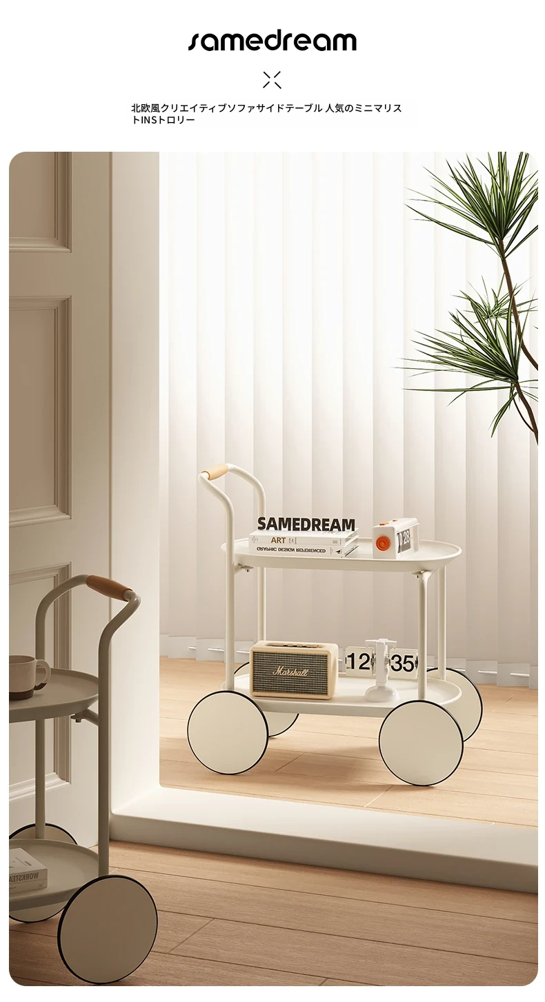 モダンでシンプルな移動式サイドテーブル - おしゃれな小さなコーヒーテーブル、バルコニーやリビングに最適なネット人気の収納キャスター付きラック。