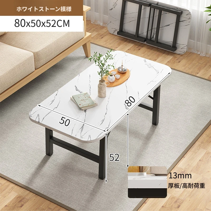 白大理石模様【80*50*52】長方テーブル組み立て不要