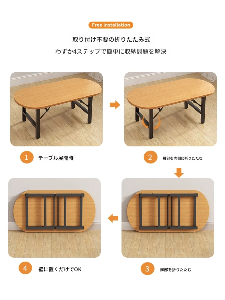 折りたたみ式リビングテーブル|小スペースに最適なシンプルモダンな楕円形ダイニングテーブル|便利な折り畳み式で、家庭や屋台にぴったり!