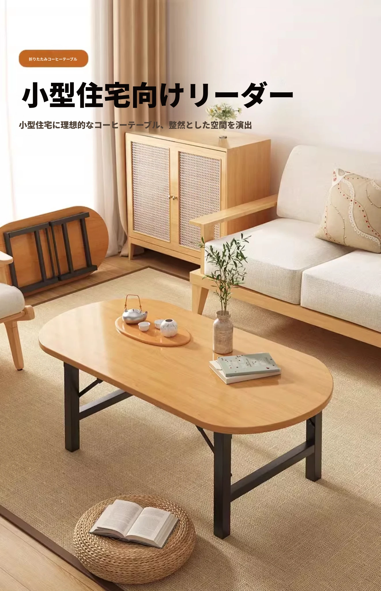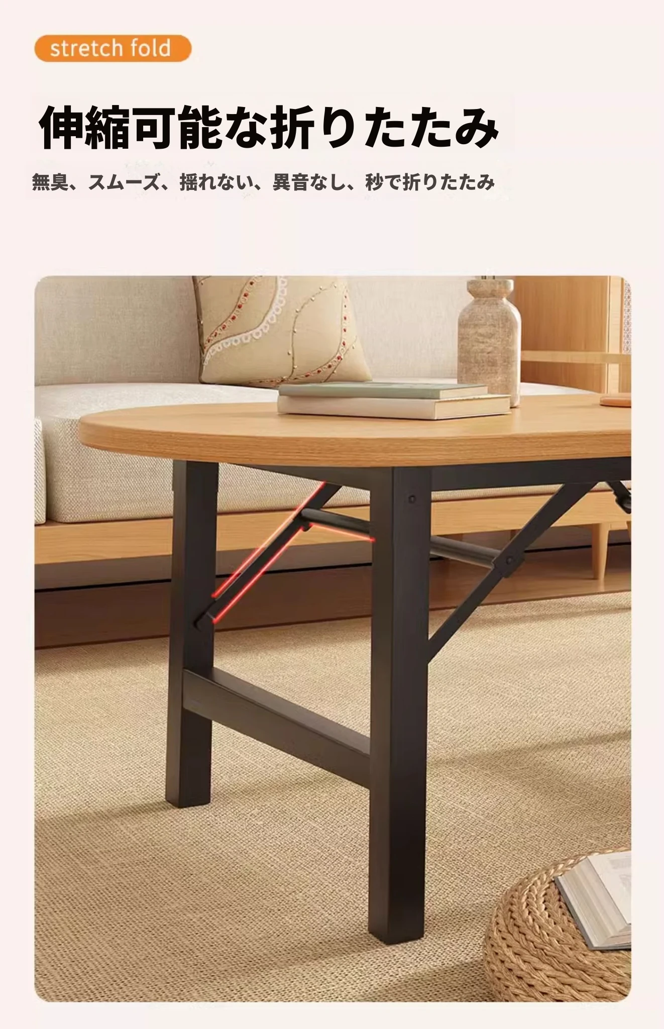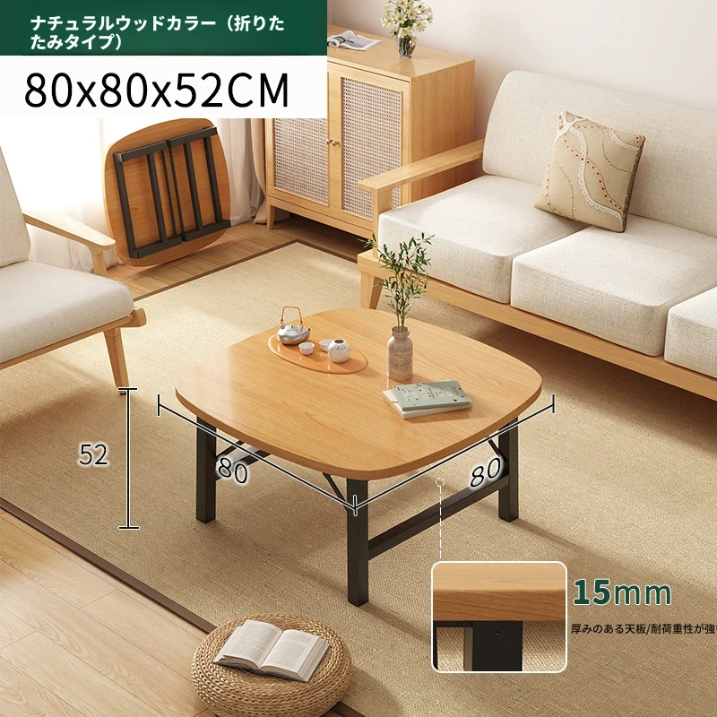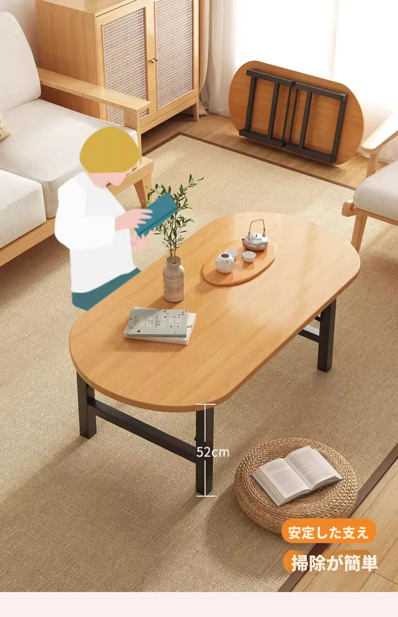 原木色【80*80*52】楕円形正方テーブル組み立て不要