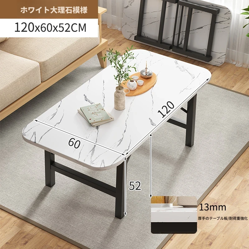 白大理石模様【120*60*52】長方テーブル組み立て不要