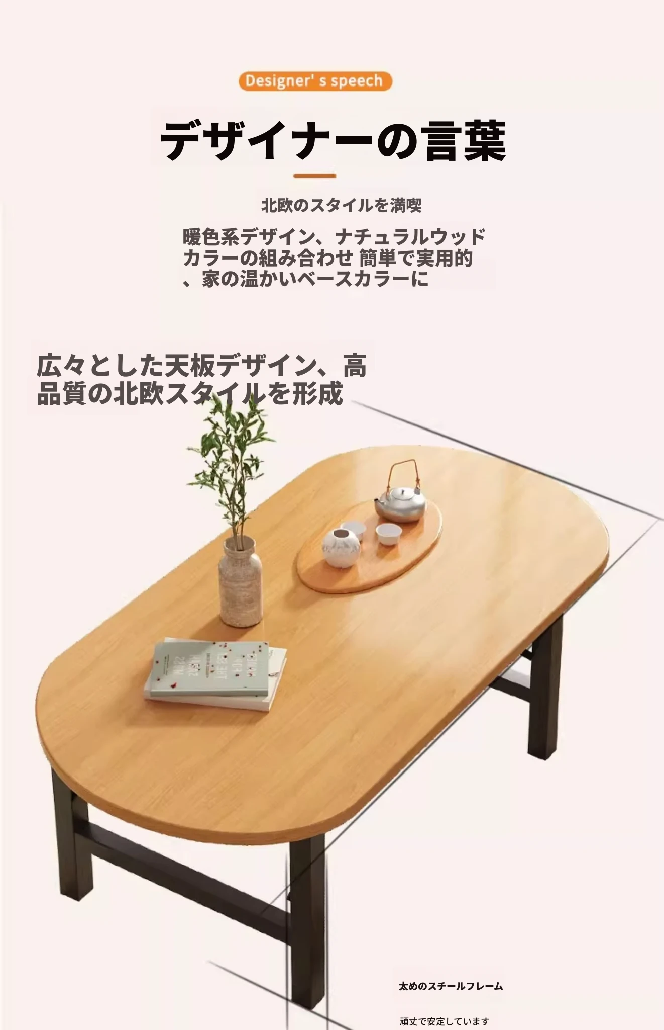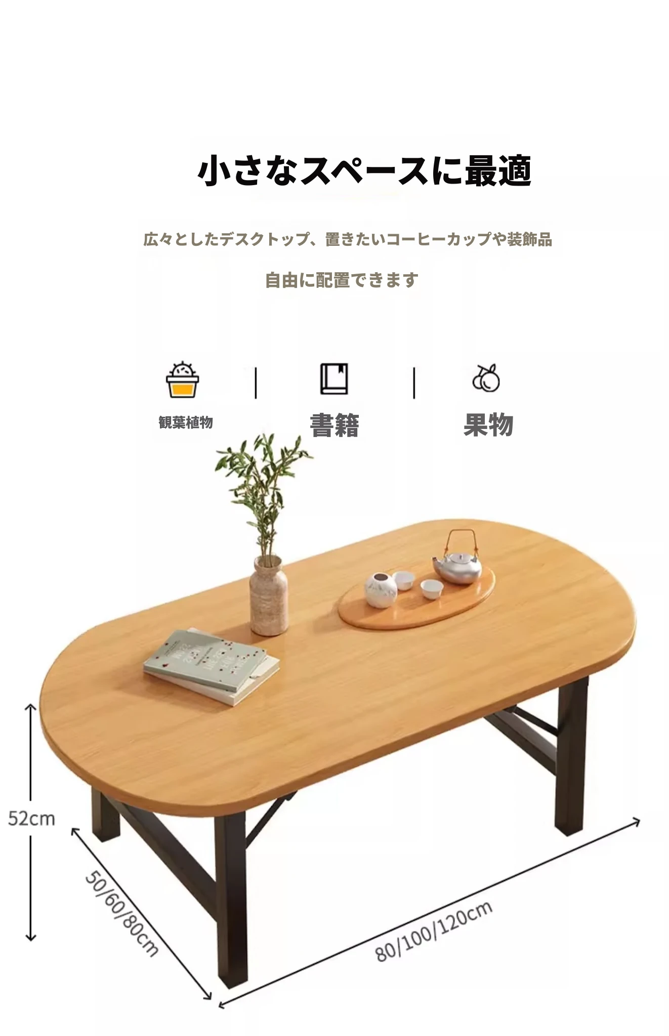 原木色【120*60*52】楕円形長方テーブル組み立て不要