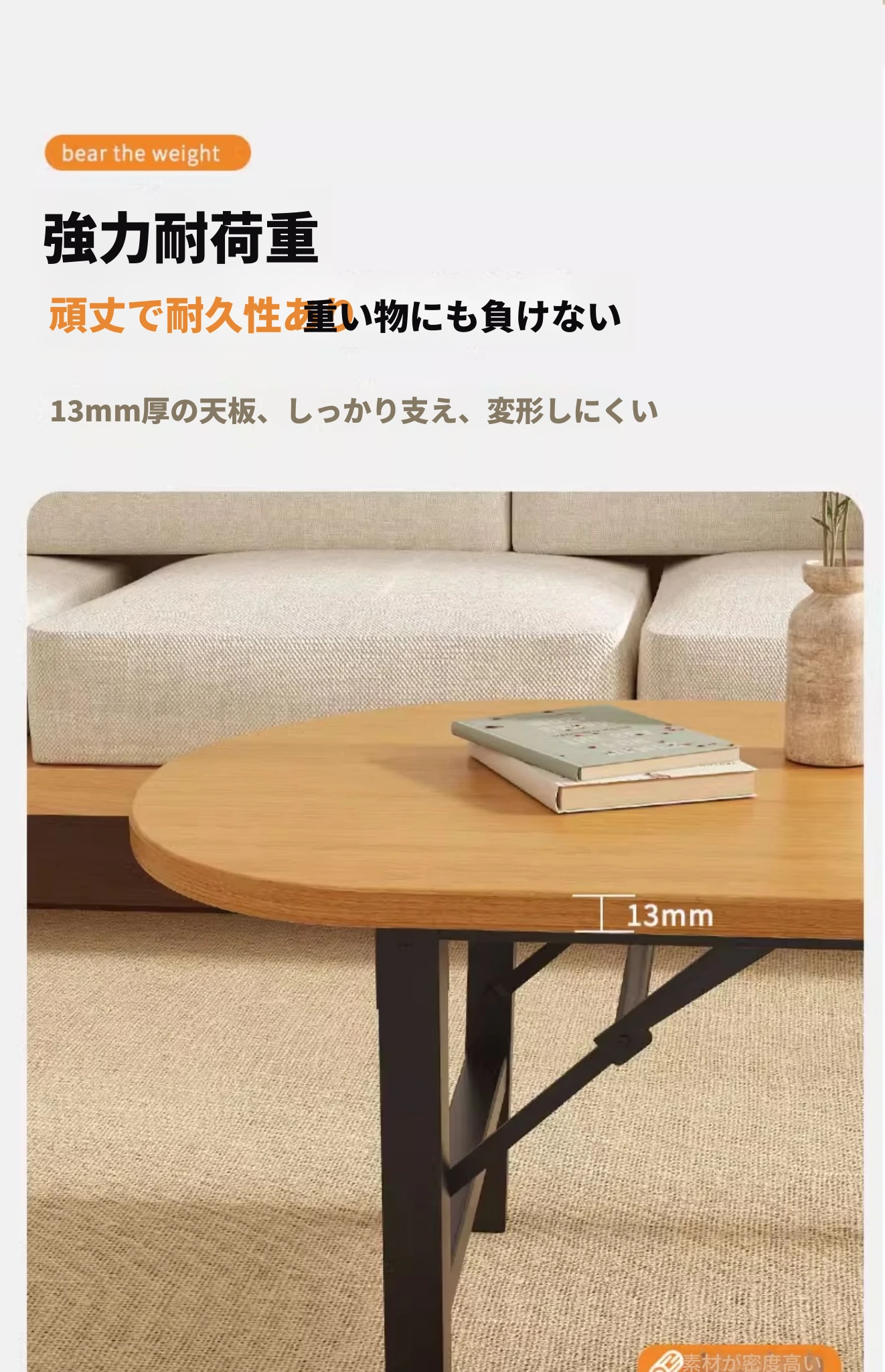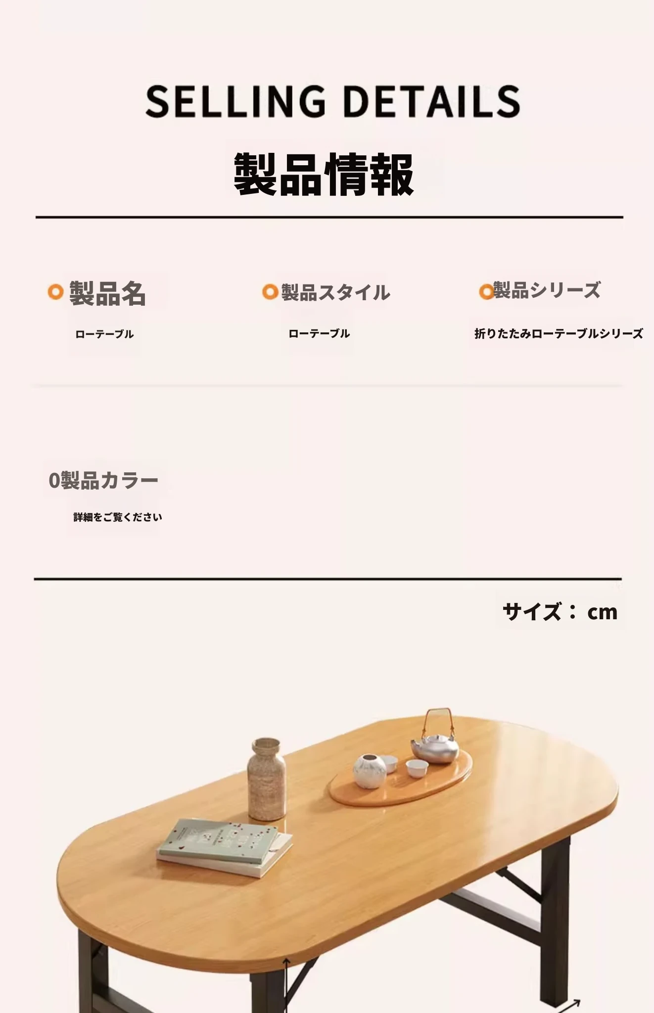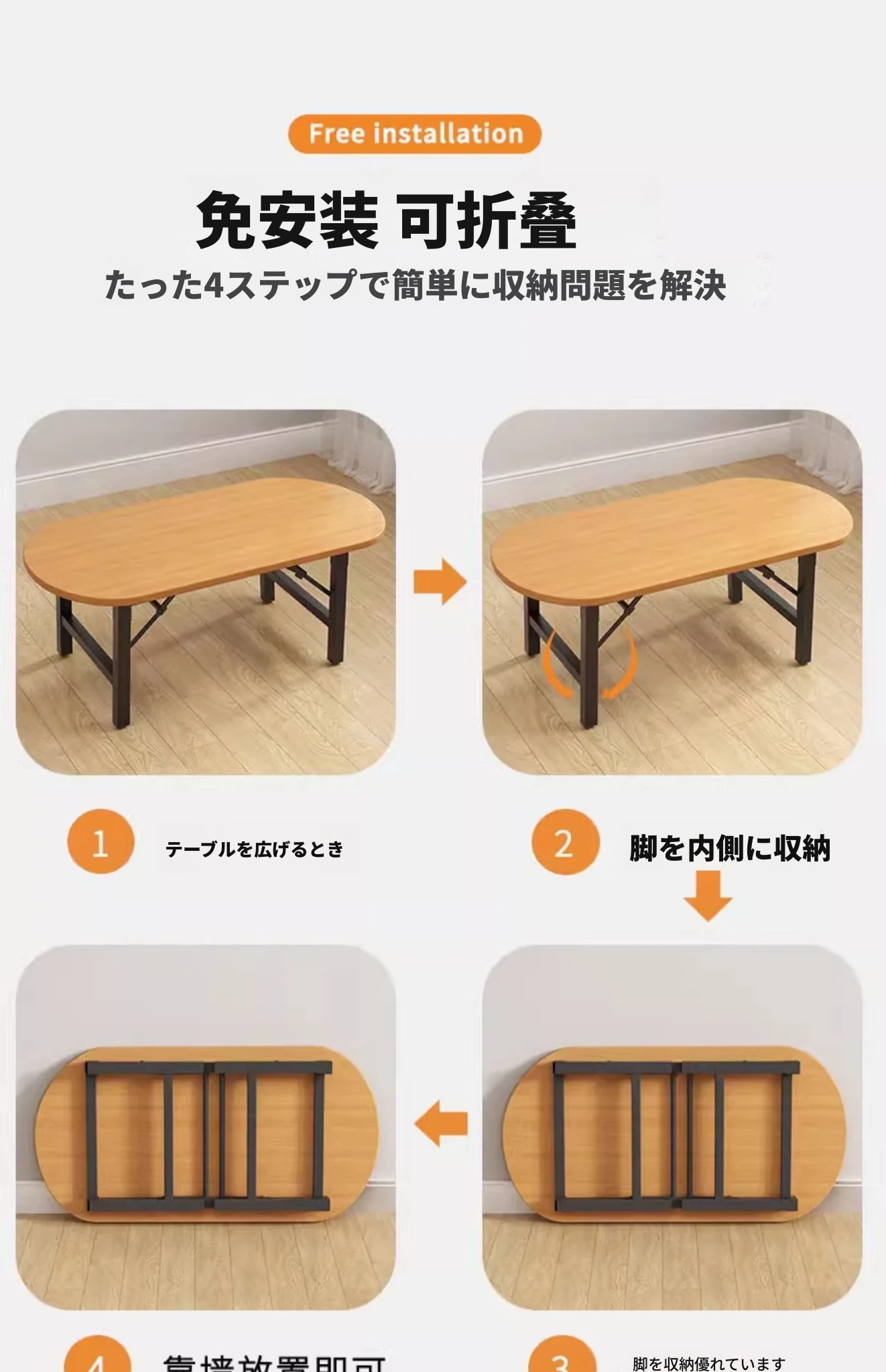 暖白色【80*50*52】長方テーブル組み立て不要