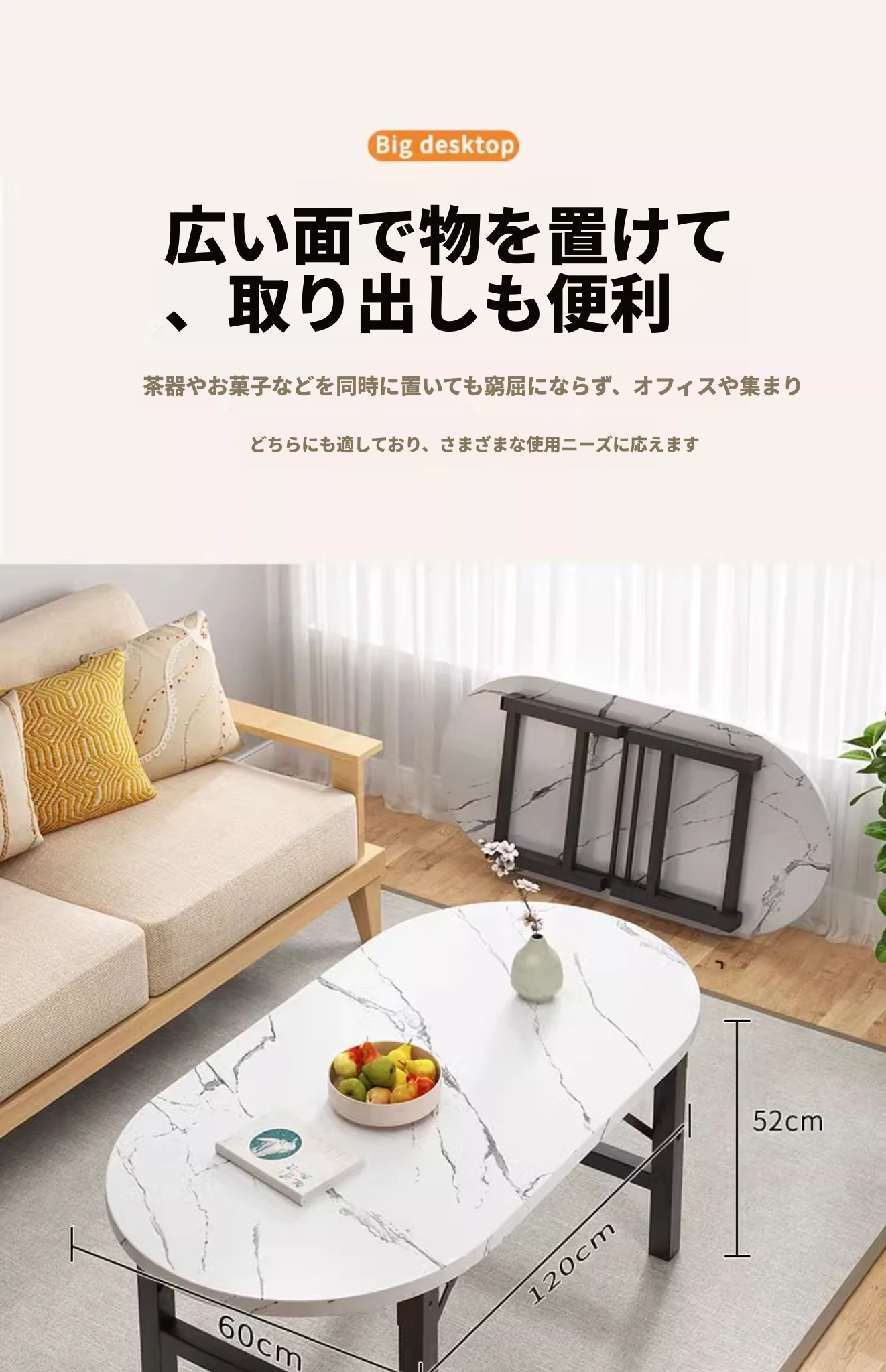 暖白色【120*60*52】長方テーブル組み立て不要