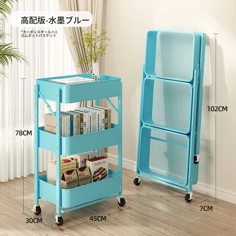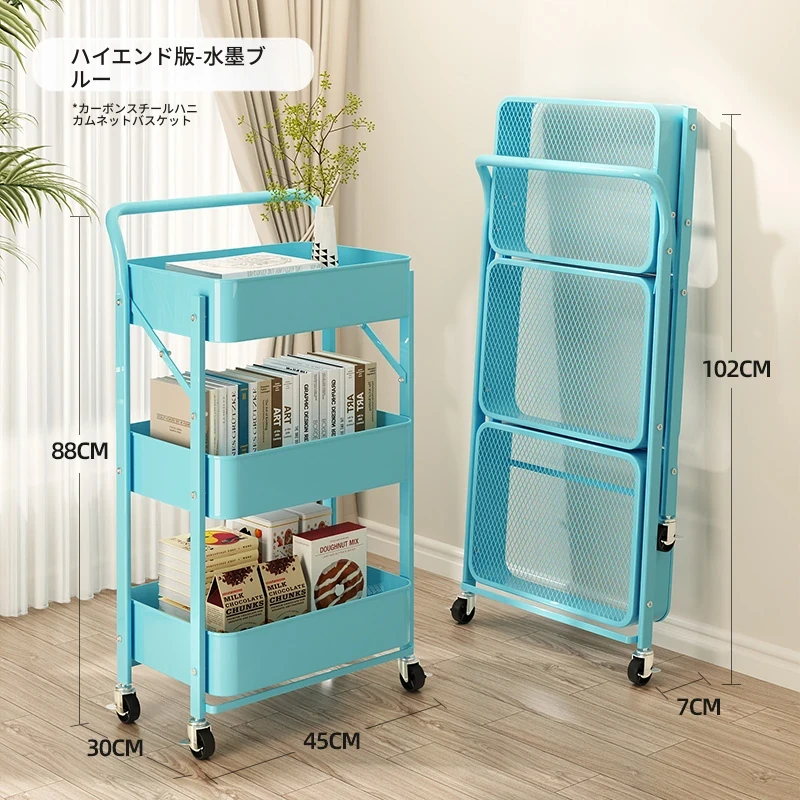 折りたたみ式♥三段ブルー【全炭素鋼】組み立て不要・開けてすぐ使用可
