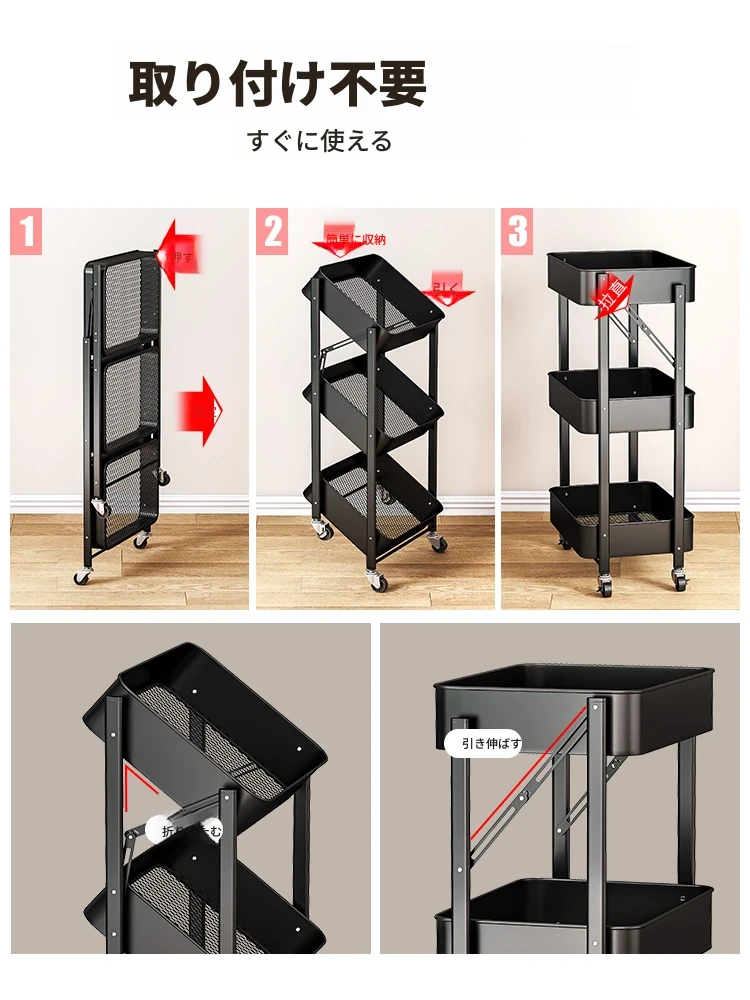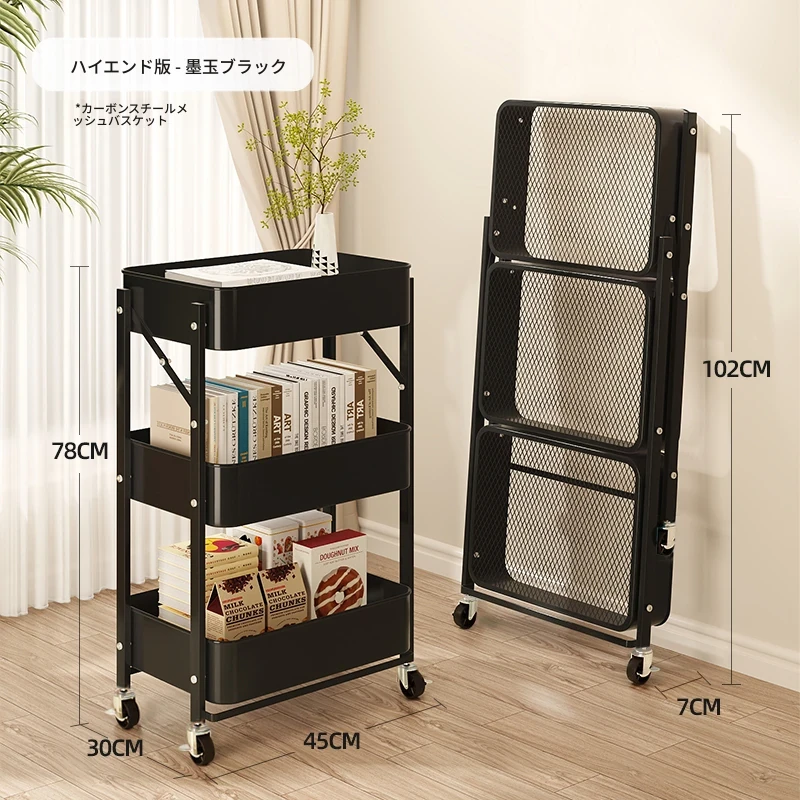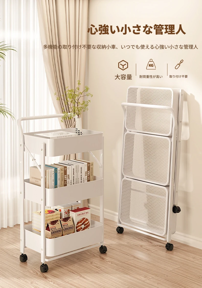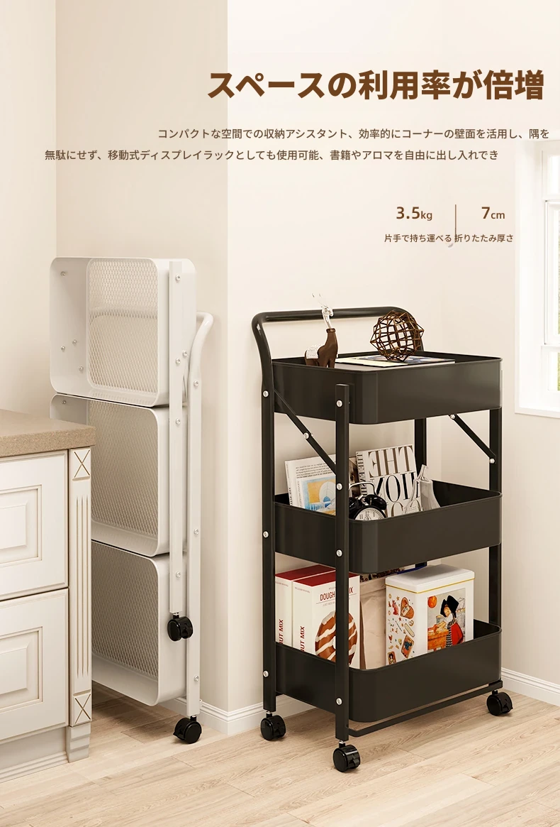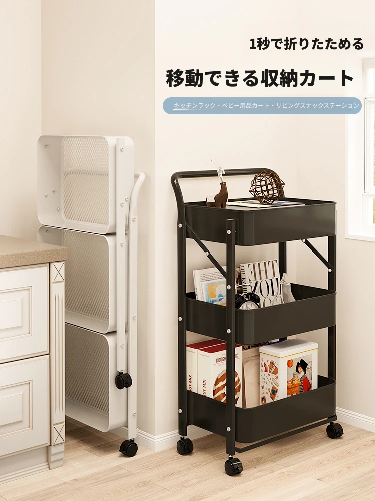 折りたたみ式マルチ収納ラック - 隙間にぴったりフィットする多層家用キャリーカート!お菓子や小物をスッキリ整理でき、移動も簡単。便利でスマートな収納ソリューションを今すぐ手に入れよう!