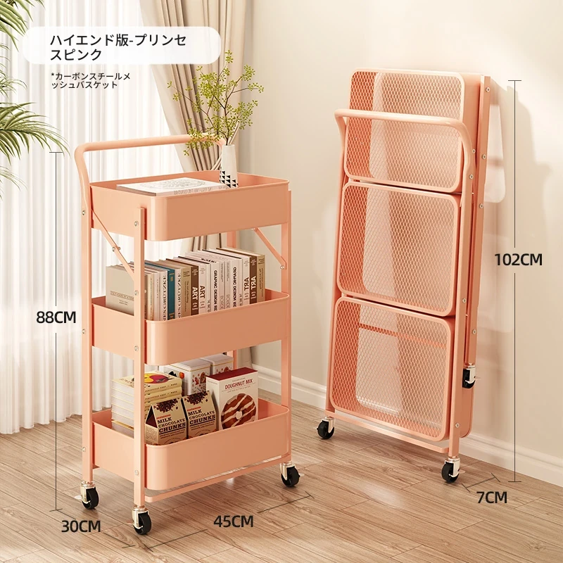 折りたたみ式♥三段ピンク【全炭素鋼】組み立て不要・開けてすぐ使用可