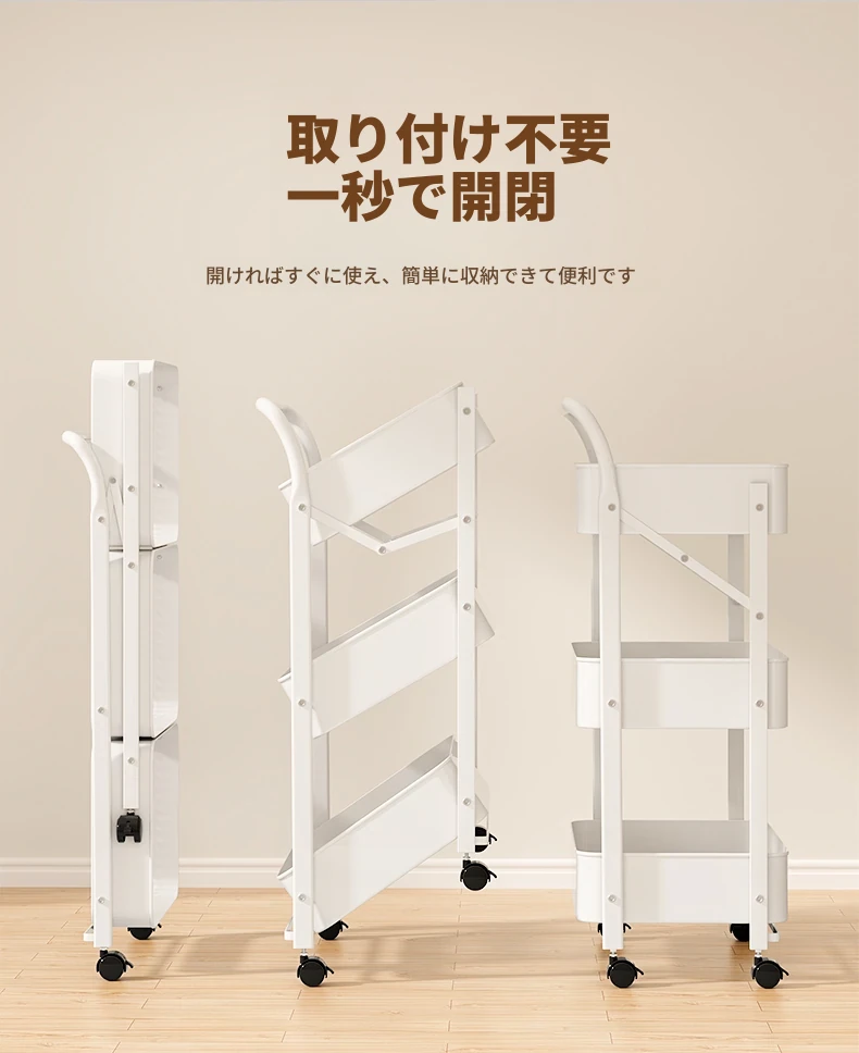 折りたたみ式♥三段ホワイト【全炭素鋼】組み立て不要・開けてすぐ使用可