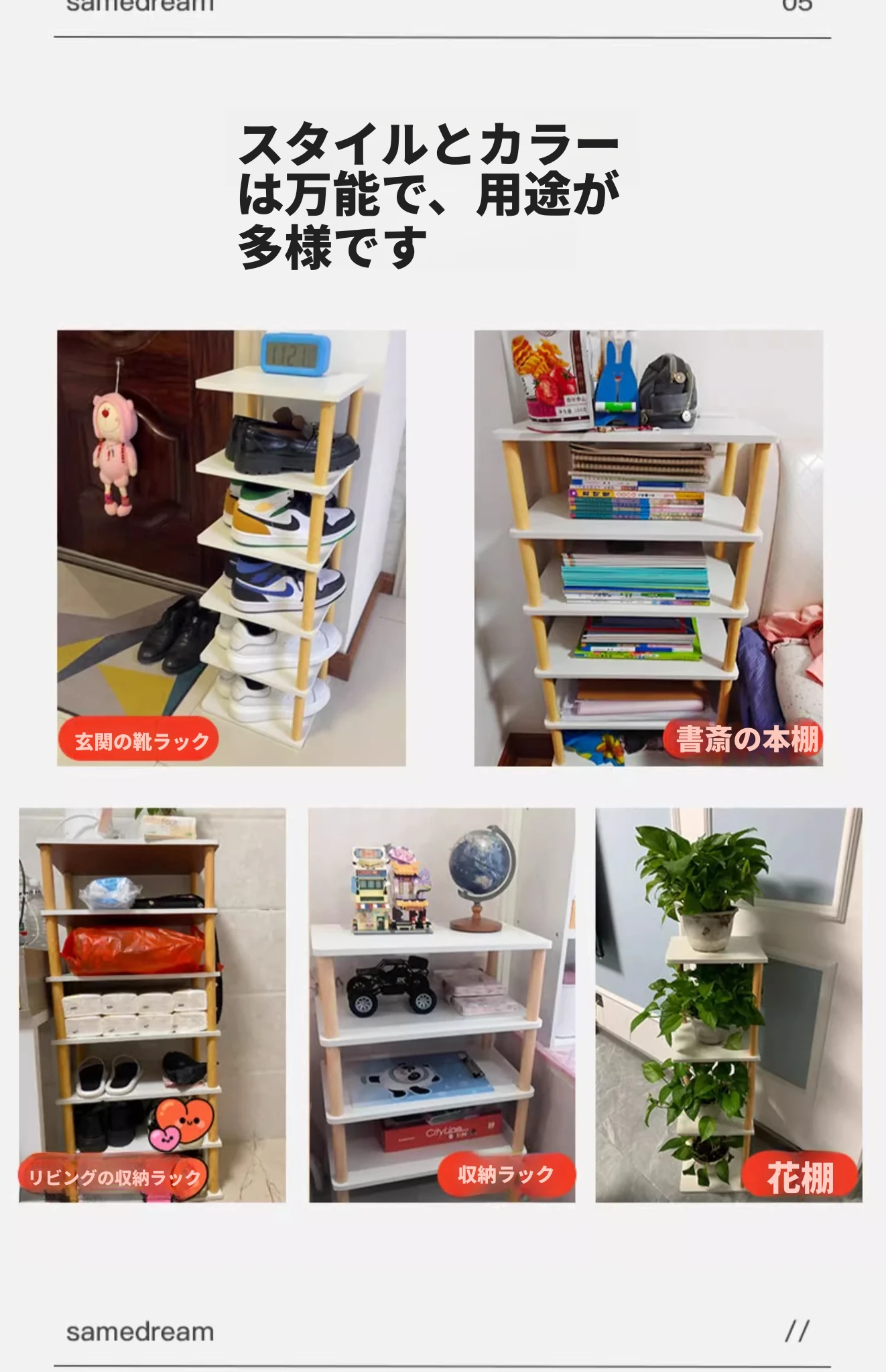 原木色【加長五層タイプ】46*26*68cm