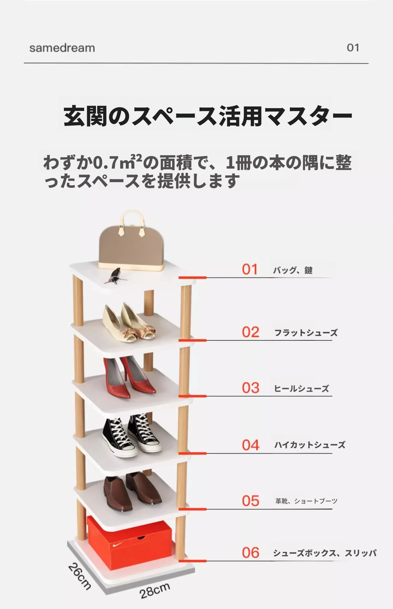 原木色【六層タイプ】28*26*85cm