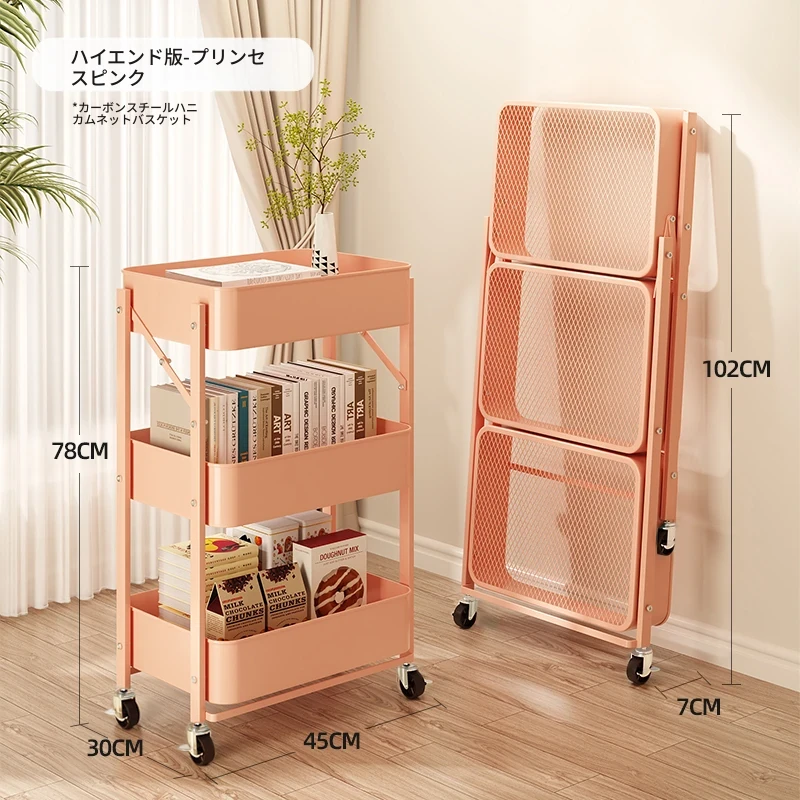 ハンドルなし折りたたみカート-プリンセスピンク【組み立て不要、開くだけで使用可能】