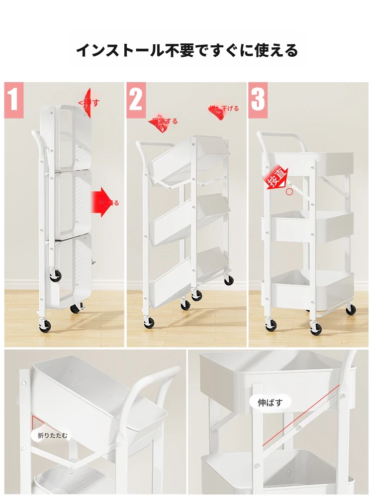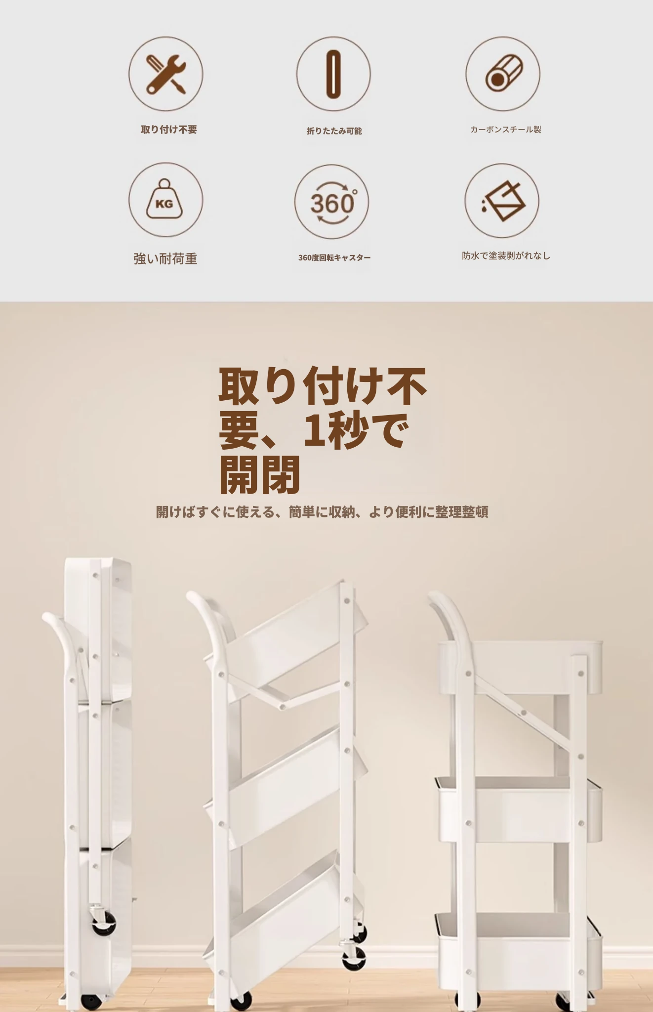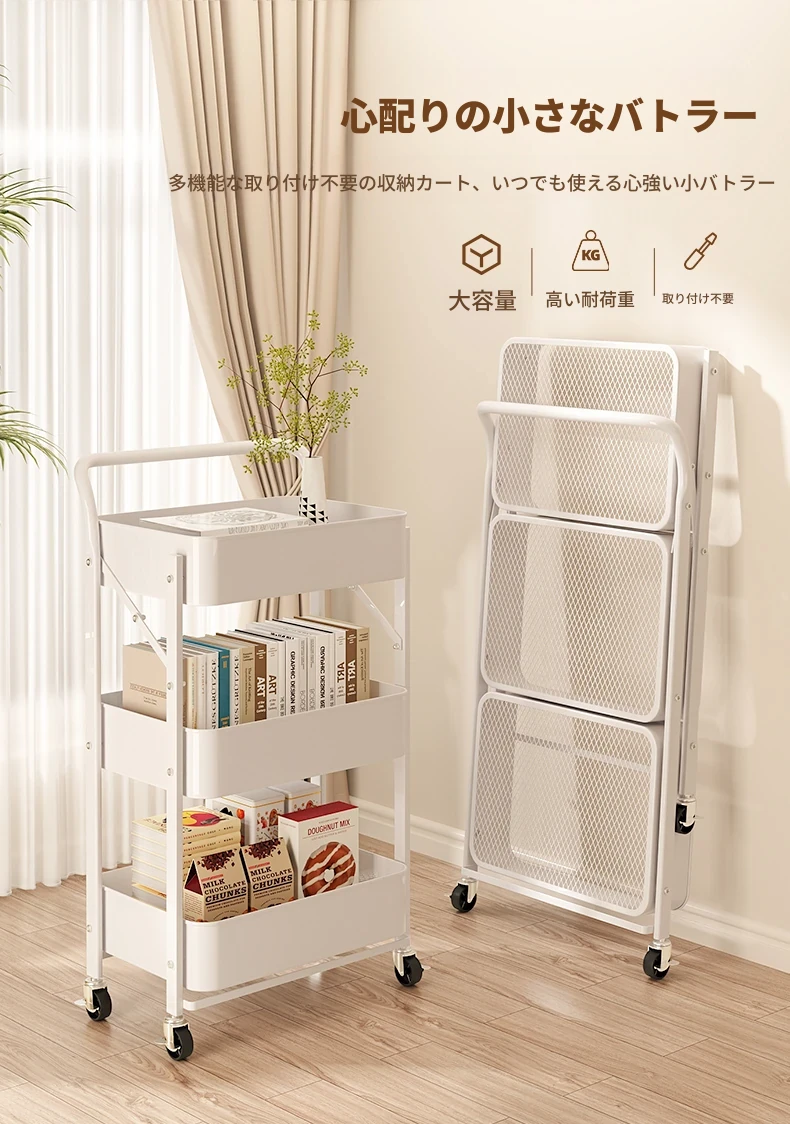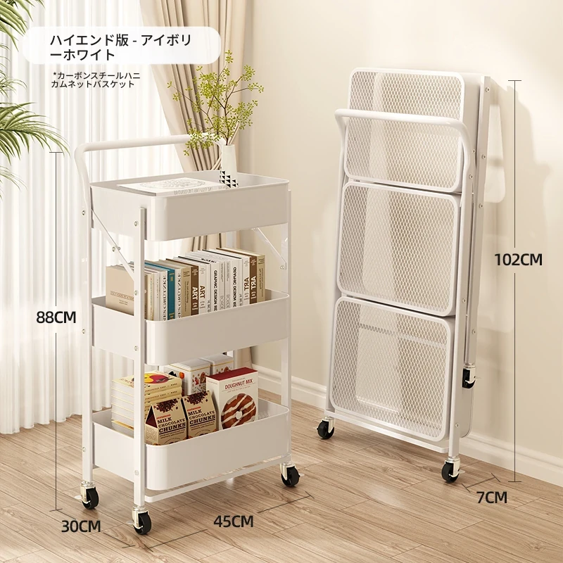ハンドルなし折りたたみカート-象牙白【組み立て不要、開くだけで使用可能】