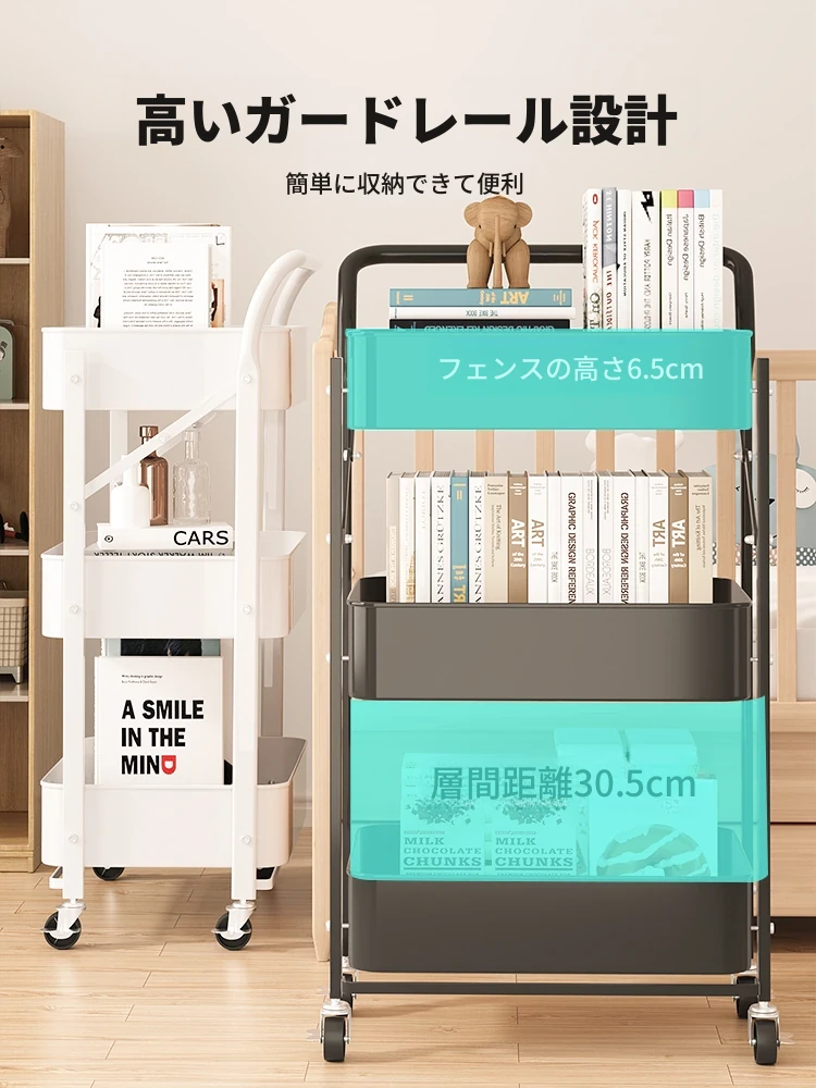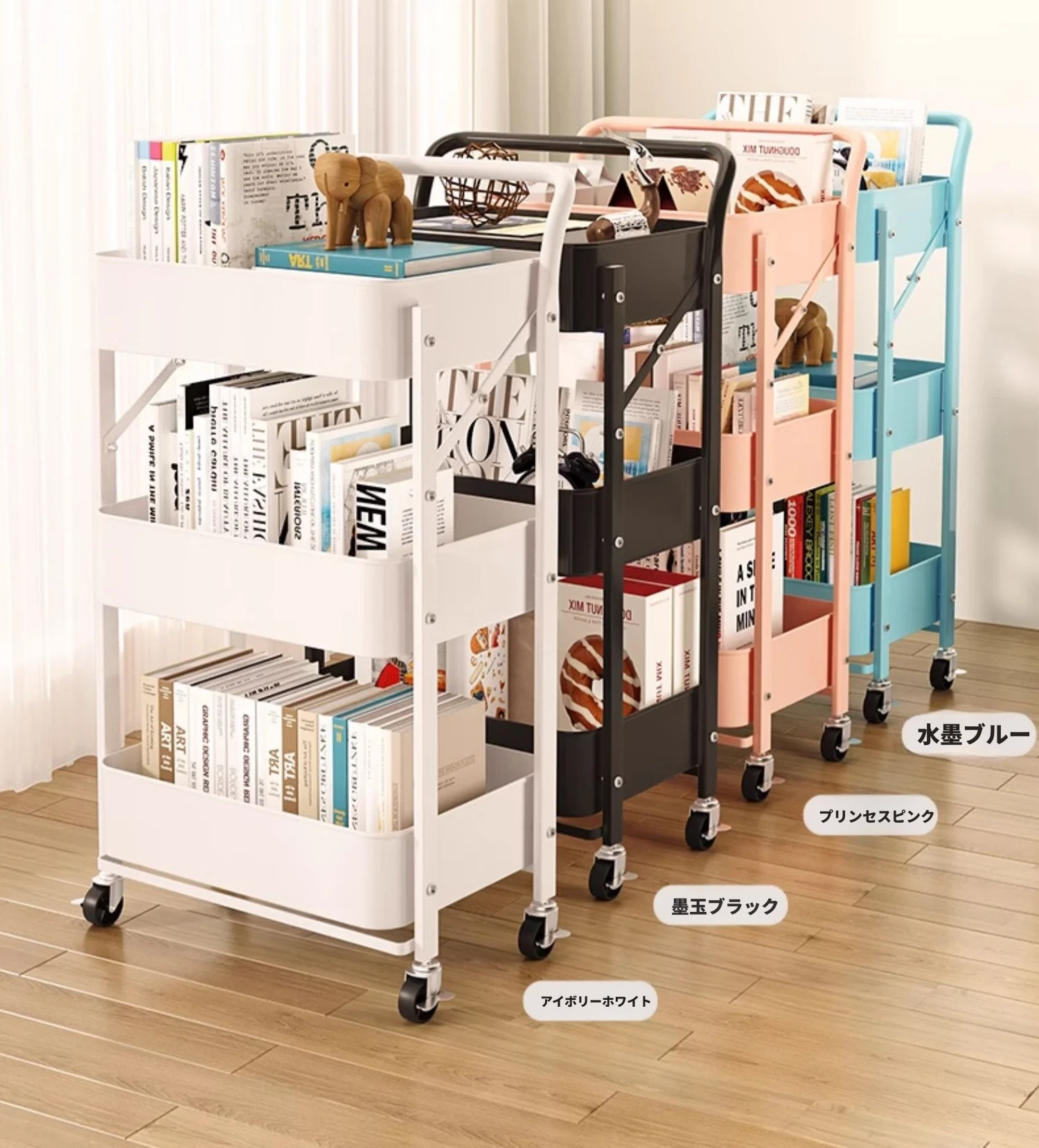 多機能移動式ブックシェルフ - おしゃれなキャスター付き収納ラック!お菓子や小物の整理に最適な多層デザイン。デスクの横にぴったりの読書サポートも兼ね備えています。あなたの生活空間をもっと便利に!