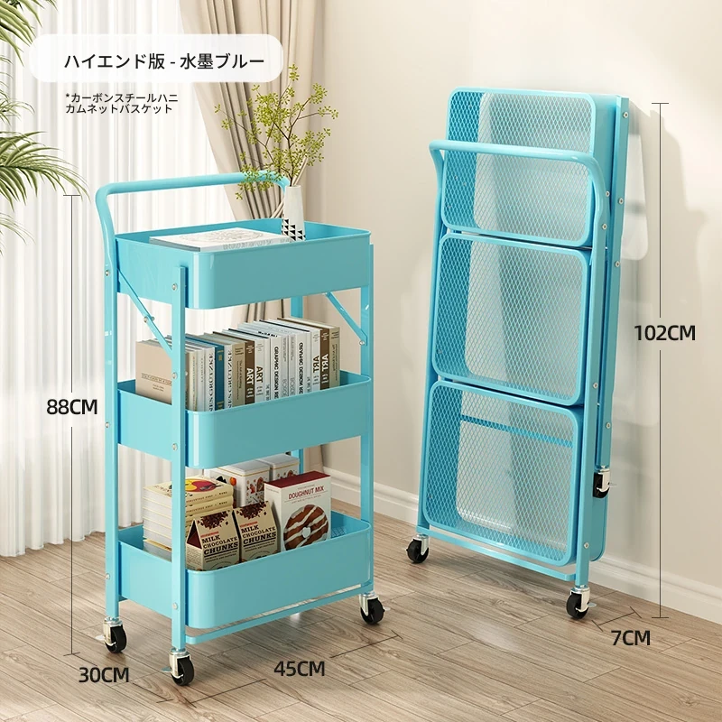 ハンドルなし折りたたみカート-水墨青【組み立て不要、開くだけで使用可能】