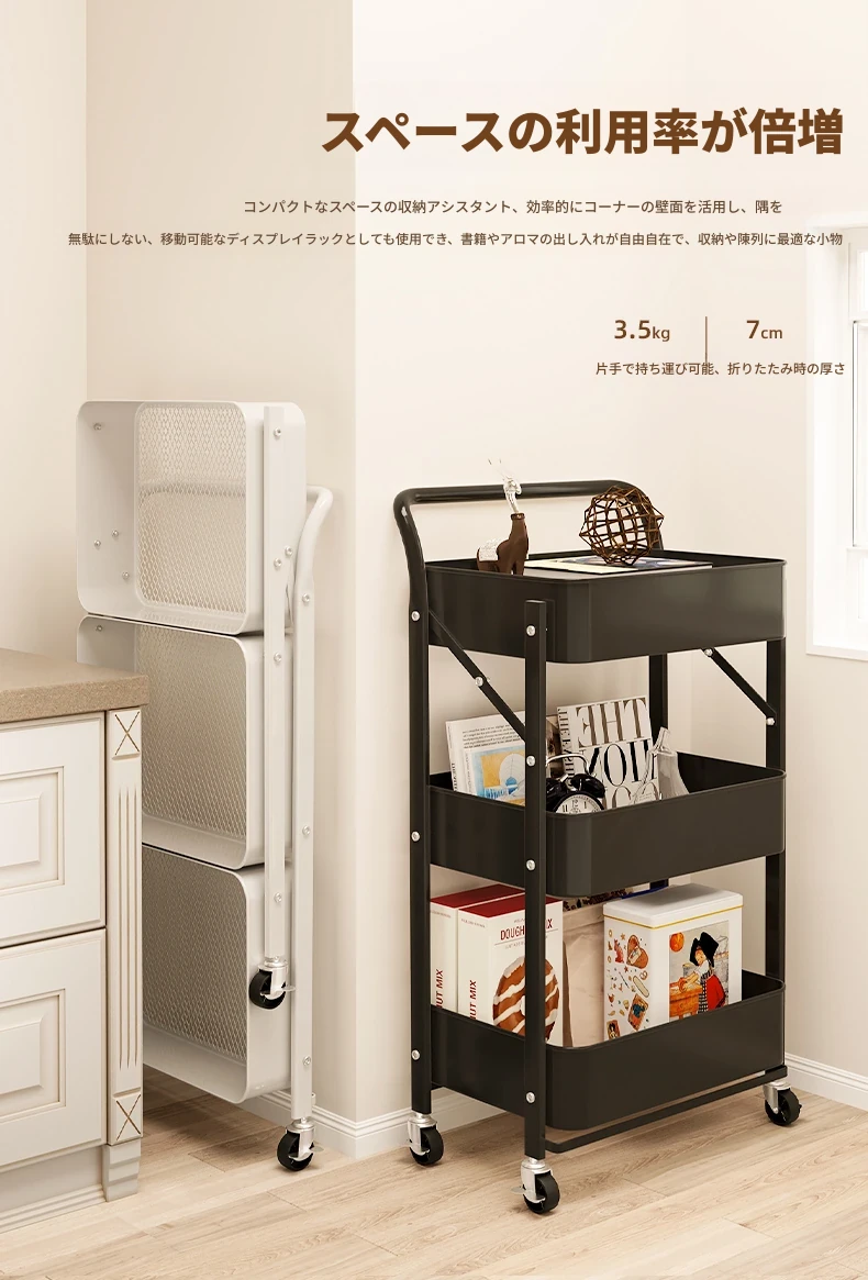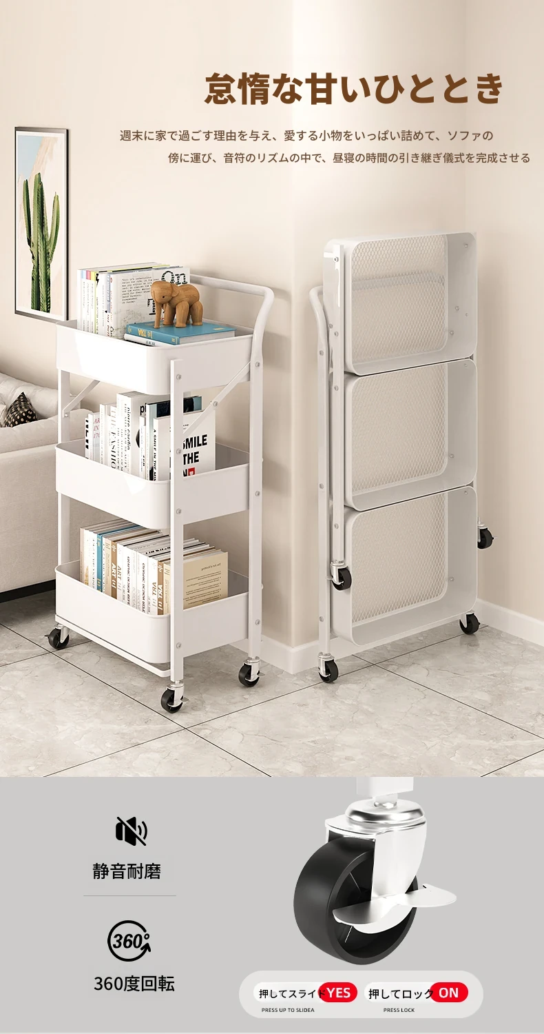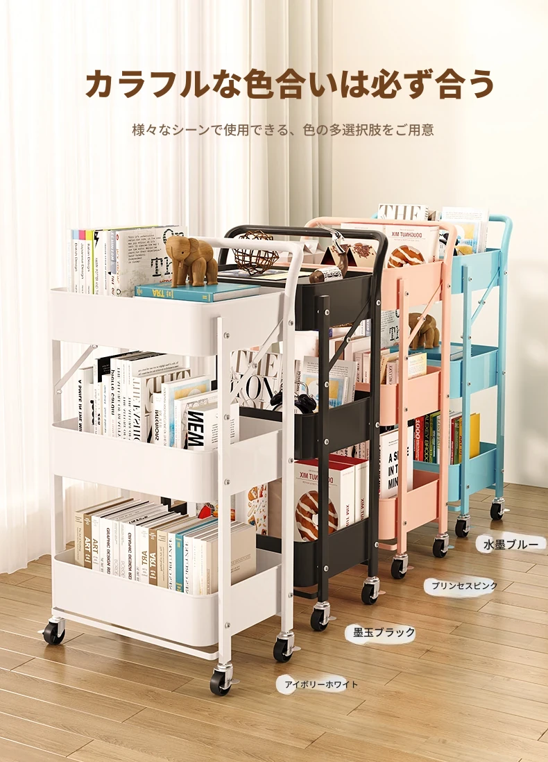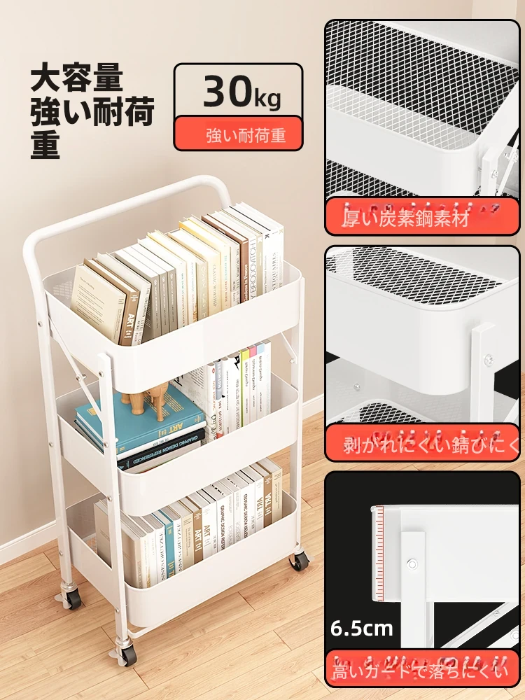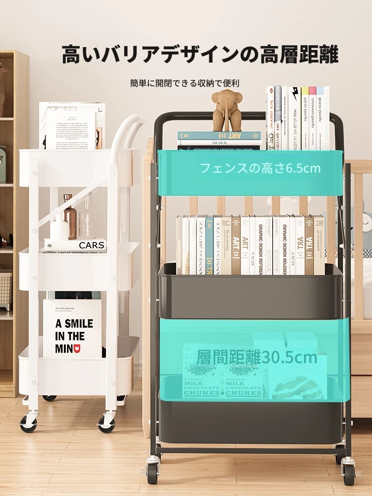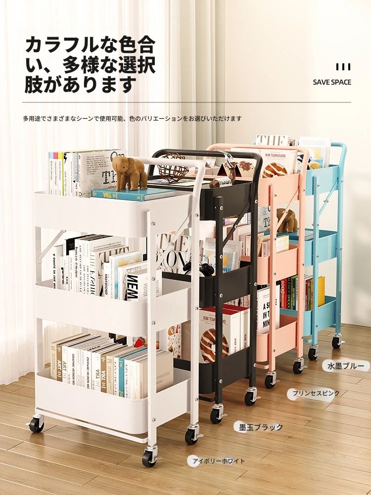 移動式多層書架 - キャスター付きで便利!おしゃれな収納スペース、スナックや雑貨も整理整頓。デスクサイドやリビングに最適な読書用収納キャビネット!